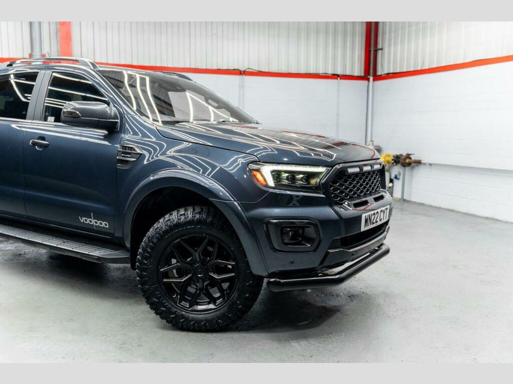 UKCVS are delighted to offer another stunning 2022 Ford Ranger 2.0 Wildtrak Auto with our full Voodoo V+ Styling Pack, The Ford Ranger Wildtrak with our Voodoo V+ styling pack strikes the perfect balance between aggressive styling and the uncompromised practicality of Fords class leading 4x4 commercial vehicle. All modifications are carried out to the highest possible standards in our own workshop, using our own parts to completely transform the look of the Ford Ranger whilst still retaining a factory OEM+ look...this is the ultimate pickup truck that really does stand out from the crowd!, Our Voodoo V+ Styling pack consists of... , , V+ Stealth Grille with Signature DRLs, Voodoo Tri-LED Headlights, Colour Coded Wide Arch Kit , Voodoo Smoked LED Rear Lights, 18 Fuel Covert Wheels , 285/60/18 RT+ Tyres , Smoked LED Indicators , Front Nudge Bar, Voodoo Decals , LED Puddle Lamps , LED Number Plate Lamps, Full Black Pack, This Ranger has been incredibly well looked after by the one previous owner, and is presented in fantastic condition throughout and is supplied with a comprehensive service history and a full 12m MOT, Please Note: Whilst we do our best to ensure the accuracy of all of our vehicle listings, some parts of the specification and vehicle data are auto populated and UKCVS accept no responsibility for any errors in this listing. If there is a particular specification feature that you require, please confirm prior to purchasing with a member of our sales team.