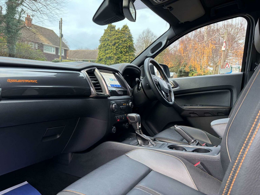 Introducing the Ford Ranger 2.0 Ranger Wildtrak EcoBlue 4x4 Auto 4WD, a powerful and versatile vehicle ready to take on any adventure. With only 64225 miles on the clock. *****Ford service history, serviced at 11k, 23k, 36k, 51k, 64k, just serviced inc new front brake discs and pads, 2 x brand new Michelin tyres and a new Mot**** Just 1 owner from new. This Ford Ranger is in excellent condition and ready to hit the road. Fantastic spec: Lane keeping assist, electric closable roller shutter (controllable via remote and centre console), heated seats, keyless entry + keyless start, Apple CarPlay, electric adjustable seats, Wildtrak styling (exterior, interior), dual climate control, cruise control + speed limiter, traffic sign recognition, front and rear parking sensors + reversing camera, finished in Agate Black and many more!, Finished in sleek Black, this Ford Ranger is sure to turn heads wherever you go. The extras on this model include Agate Black paint and Journey Grain Partial Leather interior in Ebony, adding a touch of luxury to your driving experience. Whether youre tackling tough terrain or cruising through the city streets, the Ford Rangers 4x4 capabilities and automatic transmission make every journey a breeze. Dont miss out on the opportunity to own this impressive vehicle - contact us today to arrange a test drive and experience the Ford Ranger for yourself.