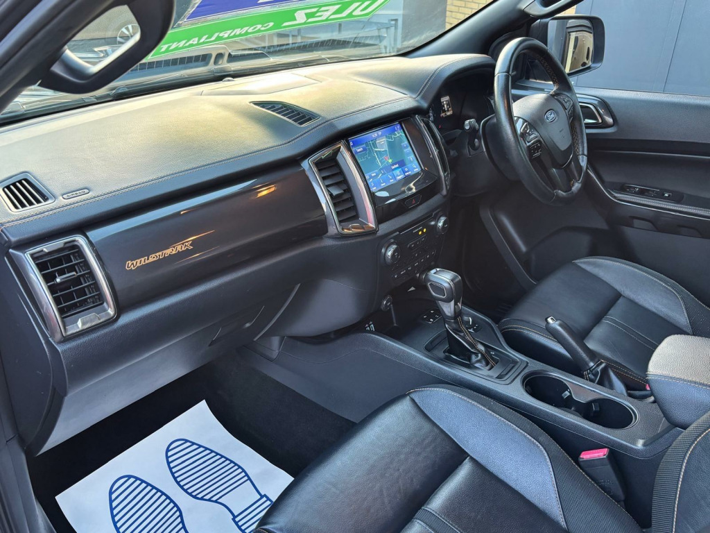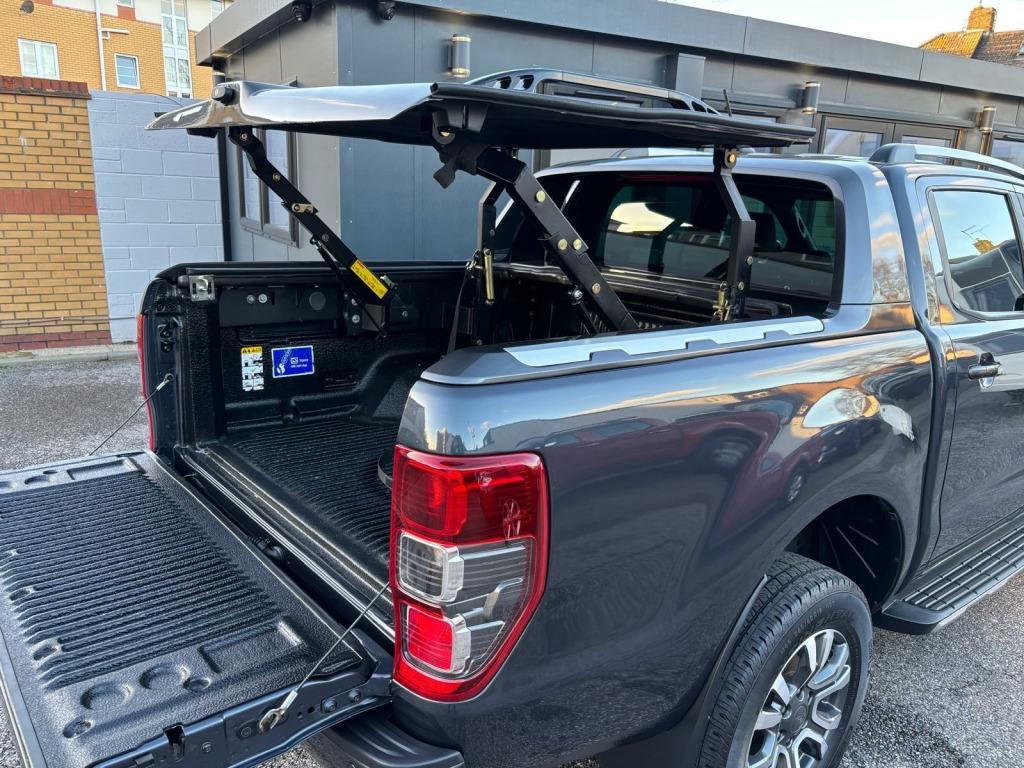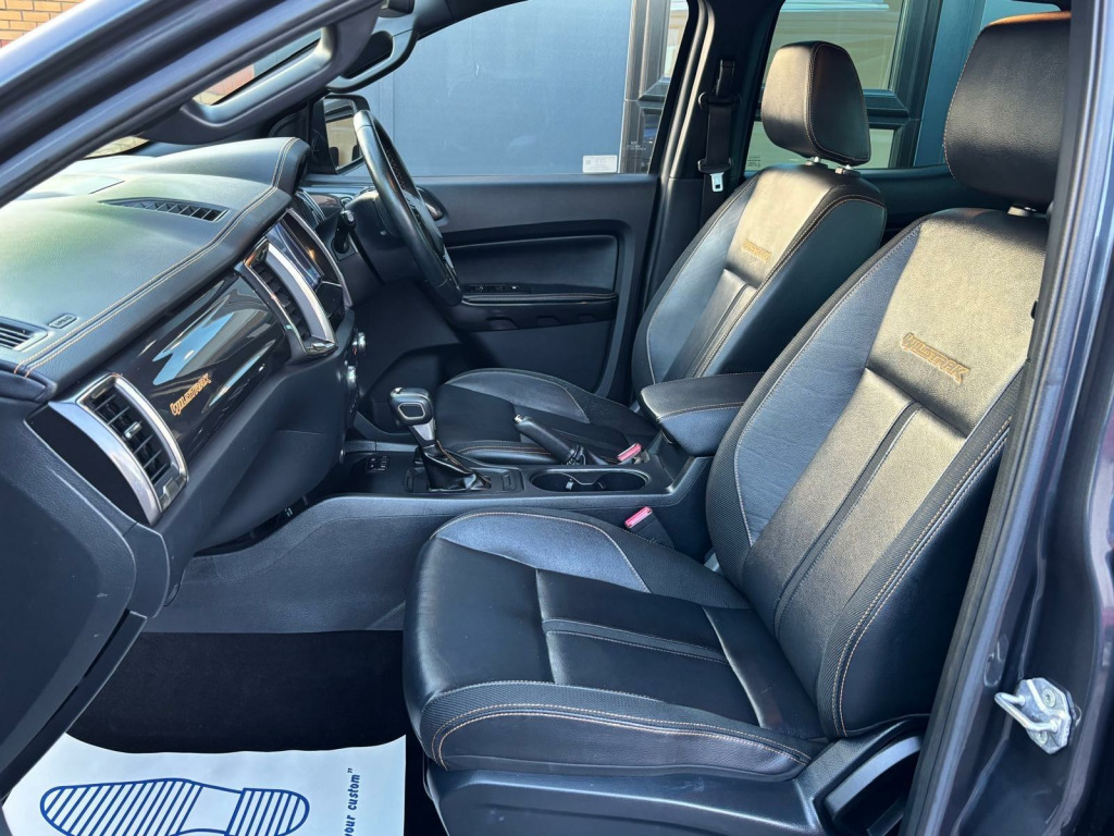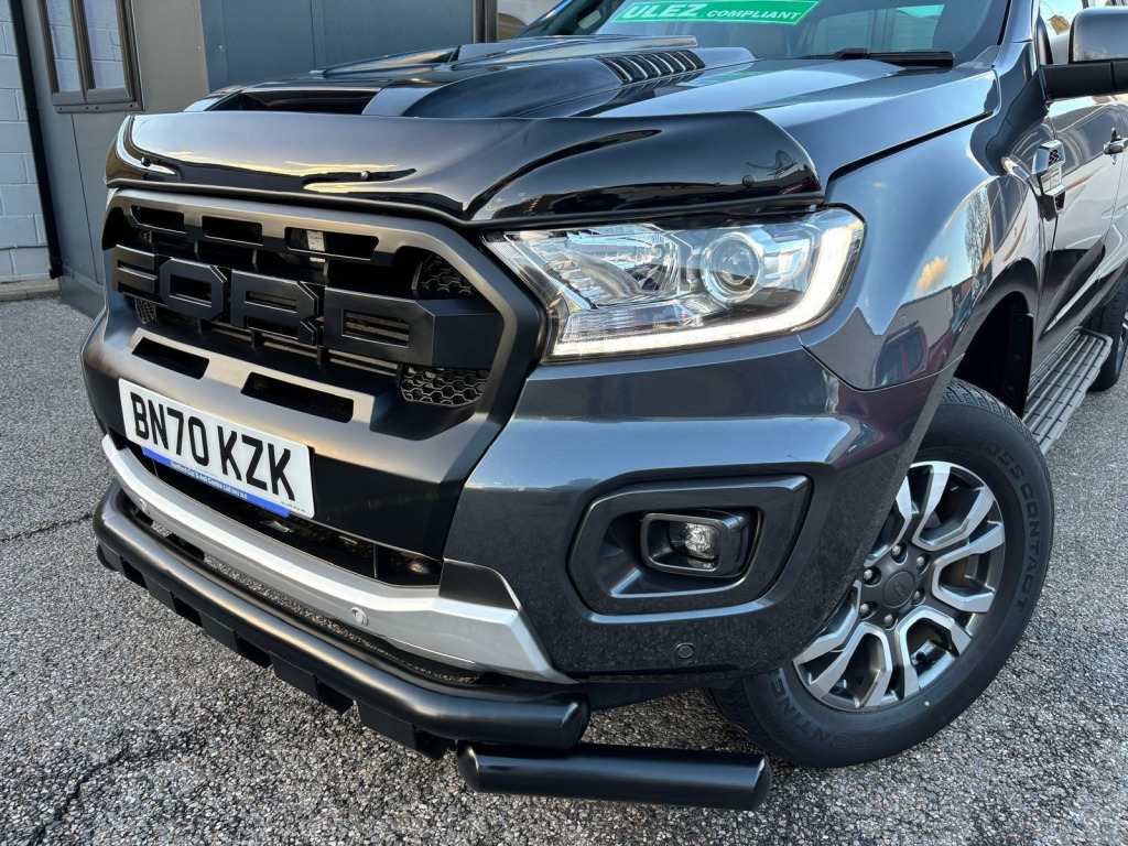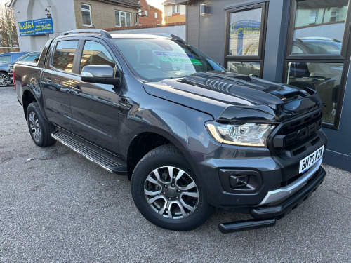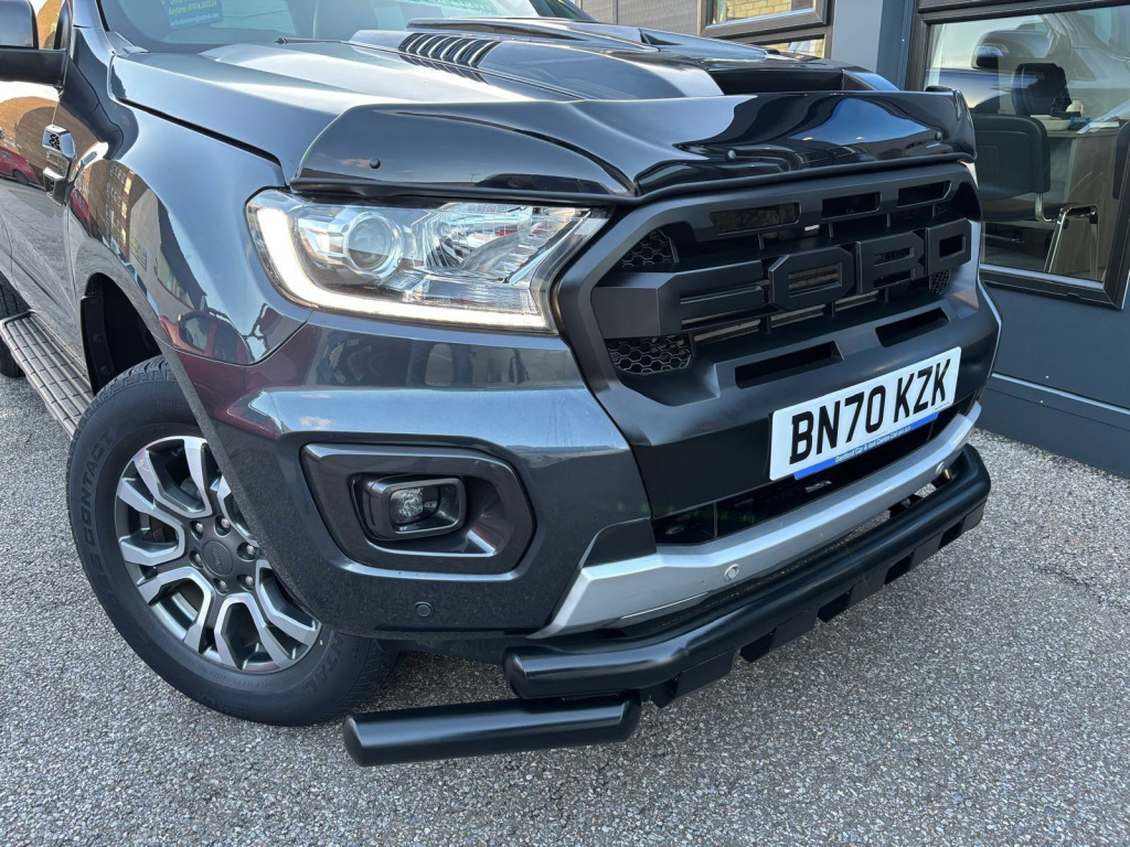 1 OWNER FROM NEW! Boasting exceptionally low mileage for its age, this 2020 Ford Ranger Wildtrak represents a superb ownership proposition. Four wheel drive, 2.0 litre diesel model, registered in 2020. This impressive ULEZ compliant 4x4 pickup is equipped with a powerful 2.0 litre EcoBlue diesel engine delivering 210 bhp, paired with an automatic transmission and a robust four wheel drive system. As a Euro 6 compliant vehicle, it meets current emissions standards. The Wildtrak ensures a premium experience, featuring a leather wrapped steering wheel and dual zone climate control for driver and passenger comfort. For safety and convenience, it includes Bi Xenon headlights, traction control, and electronic stability control. With a substantial towing weight of 3500 kg, this Ranger is ready for demanding tasks.Presented in Metallic Grey. This Isn't Your Average Wildtrak! , Fully Loaded With Body Styling Grill, Front Bonnet Scoop & Front Spoiler Bar, Rear Boot Lid, Plus Lots More! The Wildtrak trim level inside offers Touch Screen Satellite Navigation, Rear Camera, Air Conditioning, Keyless Start ETC! Year's MOT upon purchase. Call NOW to book a test drive or for any further information! Thanks for looking, in alloy wheels - 8in boulder grey-machined, 2 key fobs, abs - esp and roll-over mitigation, air conditioning - manual, airbags - curtain, airbags - driver and front passenger, airbags - drivers knee bolster, airbags - front side, airbags - passenger deactivation, body coloured plastic front bumpers, boulder grey exterior door handle, boulder grey exterior mirror finish, boulder grey radiator grille, boulder grey step design rear bumper, cargo box power point plug, chrome lift -decklid handle, collision mitigation system, cool box in centre console, cruise control with asld -aeb and isa, day-night inside mirror, daytime running lamps, double locking power door lock with flip key, driver seat back mounted map pocket, dual control system - eatc, dual power heated fold back mirrors with puddle lamps and signal, dyno grey sports hoop with side rails, epas - electric power assisted steering, ebony headliner, electrically-operated windows with one-shot drivers window, electrochromic inside mirror, fixed rear view camera, ford sync 3 single cd-dab radio - tmc and active noise cancelling, fordpass connect, front parking aid, front seats - driver and passenger heated seats, front splash guard - mud flaps, gearshift knob - leather, headlights - led, heated windshield and rear window, high mounted stop lamp with cargo light, isofix child safety seat attachments, inside chrome door handles, intelligent speed assistance, interior ambient led lighting, led front fog lamps, lane keeping aid, leather seat trim, load box bedliner, load box bedliner - power point and tie down hooks, load rest, loadbox inside tie down hooks, locking rear axle, locking wheel nuts, moulded in colour tailgate handle, mud flaps - rear, painted front fender grill, passive anti-theft system, passive keyless entry and start, power converter, power tailgate lock, premium front and rear floor mats, privacy glass, rain sensitive windshield wipers, rear bumper chromed steel step, rear parking sensors, rear power point plug, roof rails, roof storage for driver sunglasses, seats - drivers 8-way adjustment, side step with brushed inserts, spare wheel lock, sport leather stitched steering wheel, sports bar with high mounted brake light, sports hoop, tsr - traffic sign recognition, tailgate with easy-lift - lower mechanism, thatcham category 1 security system, tie down rail with rope hooks, tyre pressure sensors, under body protection, under hood engine cover, wildtrak door trim panel insert