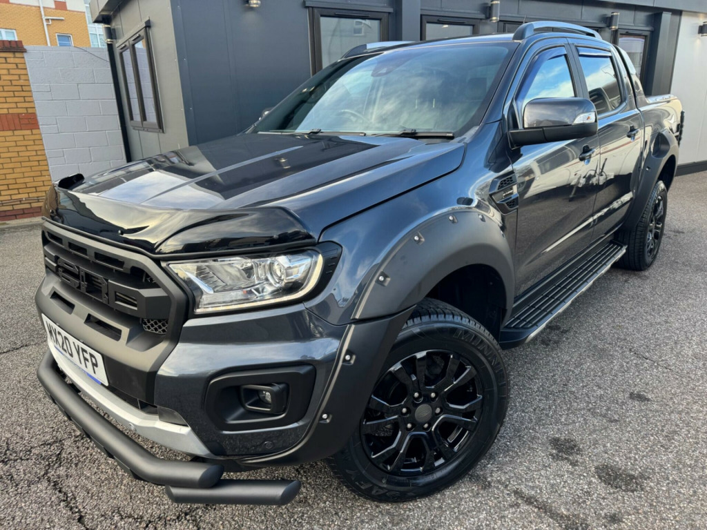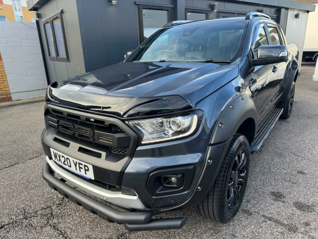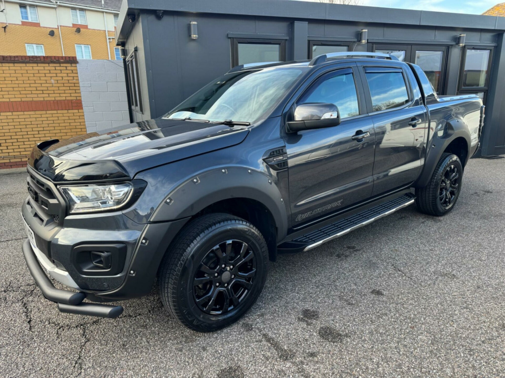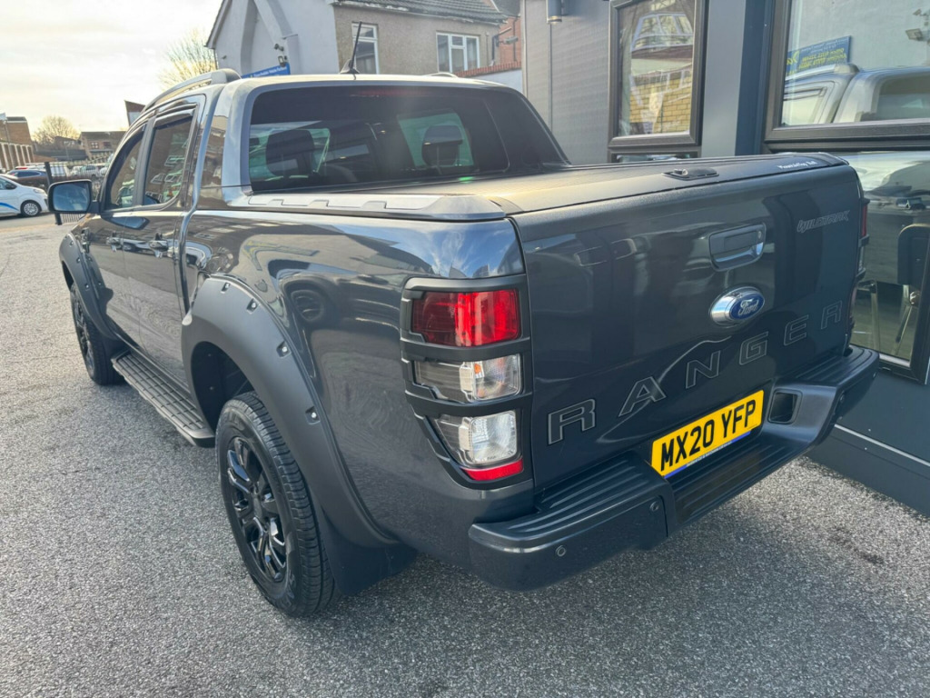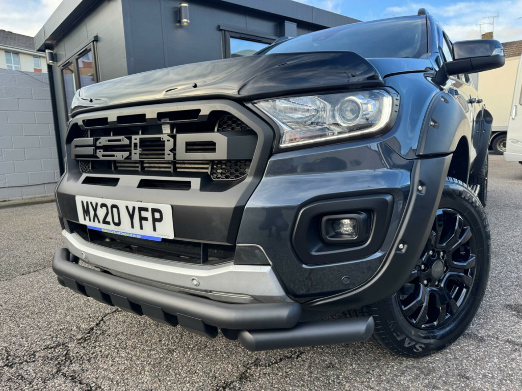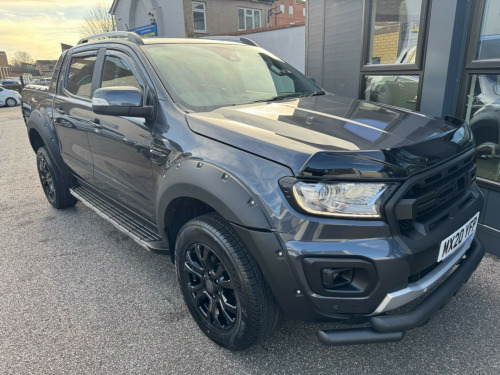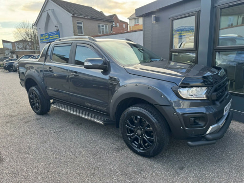 NO VAT! This Ford Ranger Wildtrak 2.0 Litre EcoBlue Diesel Automatic Is In Stunning Condition Inside And Out!! FULL SERVICE HISTORY! WETBELT CHANGED AT POINT OF SALE!! Presented in Metallic Grey. Fully Loaded With Wide Arches And Body Styling - This Isn't Your Average Wildtrak! 18'' Black Alloys, Wide Body Arches, Front Spoiler Bar, Bonnet Enhancement, Rear Roller Shutter Plus Lots More! The Wildtrak trim level inside offers Touch Screen Satellite Navigation, Rear Camera, Air Conditioning, Keyless Start ETC! PART EXCHANGE WELCOME, Finance Available!This Ranger Wildtrak stands out with its advanced LED headlights, providing excellent visibility. For added convenience, it includes passive keyless entry and start, allowing you to access and operate the vehicle without needing to take your keys out of your pocket. These features, combined with the vehicle's strong engine power and four wheel drive capability, demonstrate its superiority over similar vehicles, offering a more refined and practical driving experience for both work and leisure., in alloy wheels - 8in boulder grey-machined, 2 key fobs, abs - esp and roll-over mitigation, air conditioning - manual, airbags - curtain, airbags - driver and front passenger, airbags - drivers knee bolster, airbags - front side, airbags - passenger deactivation, body coloured plastic front bumpers, boulder grey exterior door handle, boulder grey exterior mirror finish, boulder grey radiator grille, boulder grey step design rear bumper, cargo box power point plug, chrome lift -decklid handle, collision mitigation system, cool box in centre console, cruise control with asld -aeb and isa, day-night inside mirror, daytime running lamps, double locking power door lock with flip key, driver seat back mounted map pocket, dual control system - eatc, dual power heated fold back mirrors with puddle lamps and signal, dyno grey sports hoop with side rails, epas - electric power assisted steering, ebony headliner, electrically-operated windows with one-shot drivers window, electrochromic inside mirror, fixed rear view camera, ford sync 3 single cd-dab radio - tmc and active noise cancelling, fordpass connect, front parking aid, front seats - driver and passenger heated seats, front splash guard - mud flaps, gearshift knob - leather, headlights - led, heated windshield and rear window, high mounted stop lamp with cargo light, isofix child safety seat attachments, inside chrome door handles, intelligent speed assistance, interior ambient led lighting, led front fog lamps, lane keeping aid, leather seat trim, load box bedliner, load box bedliner - power point and tie down hooks, load rest, loadbox inside tie down hooks, locking rear axle, locking wheel nuts, moulded in colour tailgate handle, mud flaps - rear, painted front fender grill, passive anti-theft system, passive keyless entry and start, power converter, power tailgate lock, premium front and rear floor mats, privacy glass, rain sensitive windshield wipers, rear bumper chromed steel step, rear parking sensors, rear power point plug, roof rails, roof storage for driver sunglasses, seats - drivers 8-way adjustment, side step with brushed inserts, spare wheel lock, sport leather stitched steering wheel, sports bar with high mounted brake light, sports hoop, tsr - traffic sign recognition, tailgate with easy-lift - lower mechanism, thatcham category 1 security system, tie down rail with rope hooks, tyre pressure sensors, under body protection, under hood engine cover, wildtrak door trim panel insert