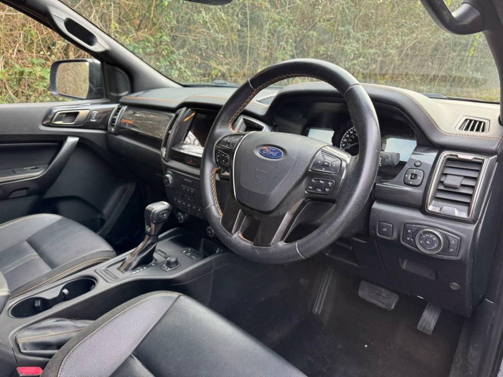 This 2023 Ford Ranger Wildtrak is a robust and capable vehicle, ready for any challenge. Powered by a 2.0 litre EcoBlue diesel engine and featuring a four wheel drive drivetrain, this Euro 6 compliant model offers dependable performance. The Wildtrak derivative comes equipped with a range of notable features designed for comfort and convenience, including heated front seats for both driver and passenger, and a dual control EATC system for personalised climate control. For enhanced visibility and safety, it boasts LED headlights, a fixed rear view camera, and rear parking sensors, making manoeuvring and parking straightforward. With a substantial towing weight of 3500 kg, this Ranger is well suited for heavy duty tasks.The Ford Ranger Wildtrak stands out with its thoughtful combination of power and advanced technology. The inclusion of heated seats and dual zone climate control ensures a comfortable experience in all conditions, while the LED headlights provide superior illumination. The integrated rear camera and parking sensors offer excellent assistance when parking, making this vehicle more practical than many others in its class. This 2023 model represents a well equipped and versatile option for those seeking a reliable and feature rich pick up truck. in alloy wheels - 8in boulder grey-machined, 2 key fobs, abs - esp and roll-over mitigation, airbags - curtain, airbags - driver and front passenger, airbags - drivers knee bolster, airbags - front side, body coloured plastic front bumpers, boulder grey exterior door handle, boulder grey exterior mirror finish, boulder grey radiator grille, boulder grey step design rear bumper, cargo box power point plug, chrome lift -decklid handle, collision mitigation system, cruise control with asld -aeb and isa, day-night inside mirror, daytime running lamps, double locking power door lock with flip key, driver seat back mounted map pocket, dual control system - eatc, dual power heated fold back mirrors with puddle lamps and signal, dyno grey sports hoop with side rails, epas - electric power assisted steering, ebony headliner, electrically-operated windows with one-shot drivers window, electrochromic inside mirror, fixed rear view camera, ford sync 3 single cd-dab radio - tmc and active noise cancelling, fordpass connect, front parking aid, front seats - driver and passenger heated seats, front splash guard - mud flaps, gearshift knob - leather, headlights - led, heated windshield and rear window, high mounted stop lamp with cargo light, isofix child safety seat attachments, inside chrome door handles, intelligent speed assistance, interior ambient led lighting, led front fog lamps, lane keeping aid, leather seat trim, load box bedliner, load box bedliner - power point and tie down hooks, load rest, loadbox inside tie down hooks, locking rear axle, locking wheel nuts, moulded in colour tailgate handle, mud flaps - rear, painted front fender grill, passive anti-theft system, passive keyless entry and start, power converter, power tailgate lock, premium front and rear floor mats, privacy glass, rain sensitive windshield wipers, rear bumper chromed steel step, rear parking sensors, rear power point plug, roof rails, roof storage for driver sunglasses, seats - drivers 8-way adjustment, side step with brushed inserts, spare wheel lock, sport leather stitched steering wheel, sports bar with high mounted brake light, sports hoop, tsr - traffic sign recognition, tailgate with easy-lift - lower mechanism, thatcham category 1 security system, tie down rail with rope hooks, tyre pressure sensors, under body protection, under hood engine cover, wildtrak door trim panel insert, load box hardtop canopy and cargo area management system - deleting sports bar and side rails - park 26, journey grain partial leather - ebony