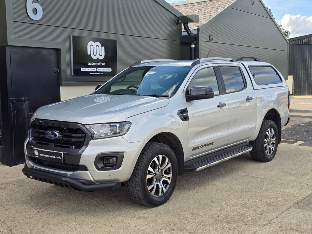 At M&W Automotive we are delighted to be able to offer this fantastic used FORD RANGER WILDTRAK 2.0 DIESEL, 213BHP, 4X4, AUTOMATIC. This super example comes with a FULL FORD SERVICE HISTORY, the last service which was carried out in April 2025 at 54314 miles. The next service is due in April 26 and also comes with two keys! This Ranger is in brilliant condition throughout and drives superbly, it comes with Top Cover and Factory Fitted Tow Bar. In addition to this you also get all of great features found on the Wildtrak mode, these include; Ford's Sync Infotainment System with Navigation, Voice Activation, Bluetooth with Audio Streaming and Hands free calling, DAB Radio, AUX & USB Media Functions, and CD Player. You also get a Multi Function Steering Wheel, Cruise Control with Speed Limiter, Dual Climate Control AC, Heated Front Screen, Electric Windows, Electric Power Folding Door Mirrors, Front & Rear Parking Sensors and much more...! PART EXCHANGE WELCOME & FINANCE AVAILABLE with ZERO DEPOSIT, you can apply directly within minutes via the finance tab on this page, or on our website, we can get a decision within the hour and you can drive away the same day! We offer a three month guarantee as standard with all our used vehicles and we give you the option to upgrade to a fully comprehensive 12-24 warranty plan through our warranty partner Auto Trust, more details of this excellent cover are available on our website manwautomotive.co.uk **WE WANT YO 18in Alloy Wheels - 8in Boulder Grey-Mac, 2 Key Fobs, ABS - ESP and Roll-Over Mitigation, Airbags - Curtain, Airbags - Driver and Front Passenger, Airbags - Drivers Knee Bolster, Airbags - Front Side, Body Coloured Plastic Front Bumpers, Boulder Grey Exterior Door Handle, Boulder Grey Exterior Mirror Finish, Boulder Grey Radiator Grille, Boulder Grey Step Design Rear Bumper, Cargo Box Power Point Plug, Chrome Lift -Decklid Handle, Collision Mitigation System, Cruise Control with ASLD -AEB and ISA, Day-Night Inside Mirror, Daytime Running Lamps, Double Locking Power Door Lock with Flip, Driver Seat Back Mounted Map Pocket, Dual Control System - EATC, Dual Power Heated Fold Back Mirrors with,