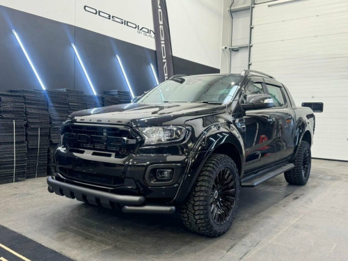 CTC Automotive are delighted to present for sale this extremely rare Bespoke Obsidian Autoworks Ford Ranger finished in Black Metallic, featuring 20" Gloss Black Obsidian Alloy Wheels Paired with All Terrain Radar Tyres. Just one owner from new, this well cared for Ranger carries a full and up to date Ford main dealer service history.Full Obsidian Autoworks body kit consisting of Extreme Wide Arches, Aggressive Lower Spoiler Bar, Exterior Black Pack including Matte Black Side Steps, Roof Rails, Rear Sports Bar Rails, and Front Bumper Panels, LED Front Grille in gloss black, Front and Rear Light Surrounds in Gloss black, Wind Deflectors. Key features include - Ford SYNC 3 with 8" Touchscreen: Includes DAB radio, Bluetooth, and Apple CarPlay/Android Auto FordPass Connect: Enables remote vehicle management Fixed Rear View Camera: Assists with parking and reversing Cargo Box Power Point Plug: For powering tools and devices Journey Grain Partial Leather Upholstery: With Wildtrak logo Heated Front Seats: For added comfort 8-Way Power Adjustable Driver's Seat: Personalized seating position Leather-Wrapped Steering Wheel and Gear Knob: Premium feel Dual-Zone Electronic Automatic Temperature Control (EATC): Maintains cabin comfort Ambient LED Interior Lighting: Creates a pleasant atmosphere Centre Console Coolbox: Keeps drinks cool 18in Alloy Wheels - 8in Boulder Grey-Mac, 2 Key Fobs, ABS - ESP and Roll-Over Mitigation, Air Conditioning - Manual, Airbags - Curtain, Airbags - Driver and Front Passenger, Airbags - Drivers Knee Bolster, Airbags - Front Side, Airbags - Passenger Deactivation, Body Coloured Plastic Front Bumpers, Boulder Grey Exterior Door Handle, Boulder Grey Exterior Mirror Finish, Boulder Grey Radiator Grille, Boulder Grey Step Design Rear Bumper, Cargo Box Power Point Plug, Chrome Lift -Decklid Handle, Collision Mitigation System, Cool Box in Centre Console, Cruise Control with ASLD -AEB and ISA, Day-Night Inside Mirror, Daytime Running Lamps, Double Locking Power Door Lock with Flip, Driver Seat Back M