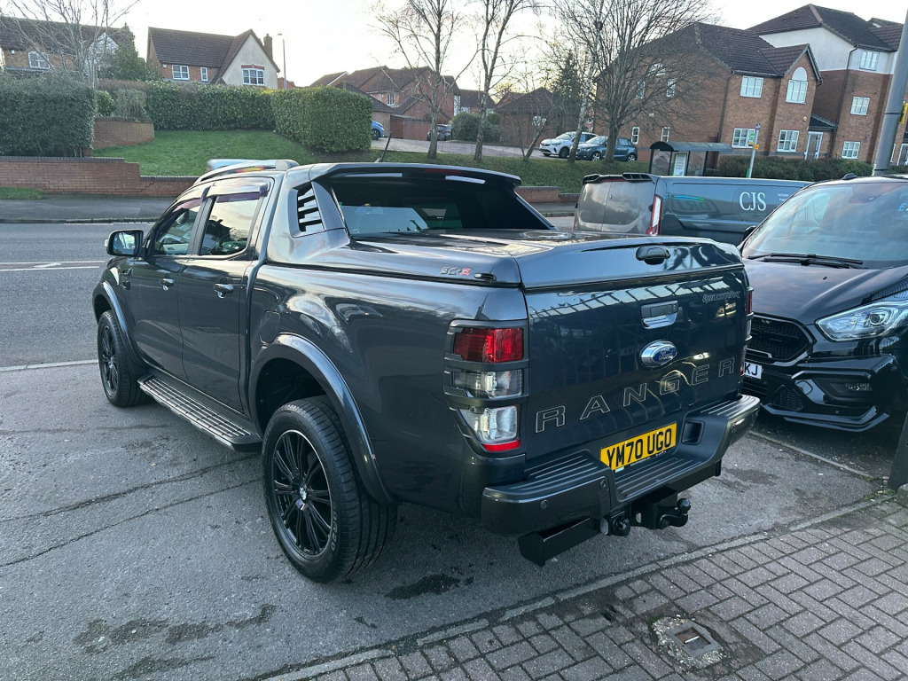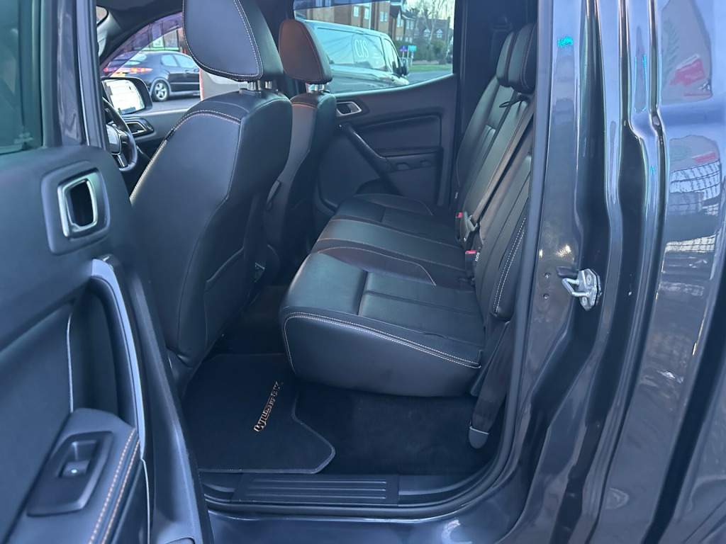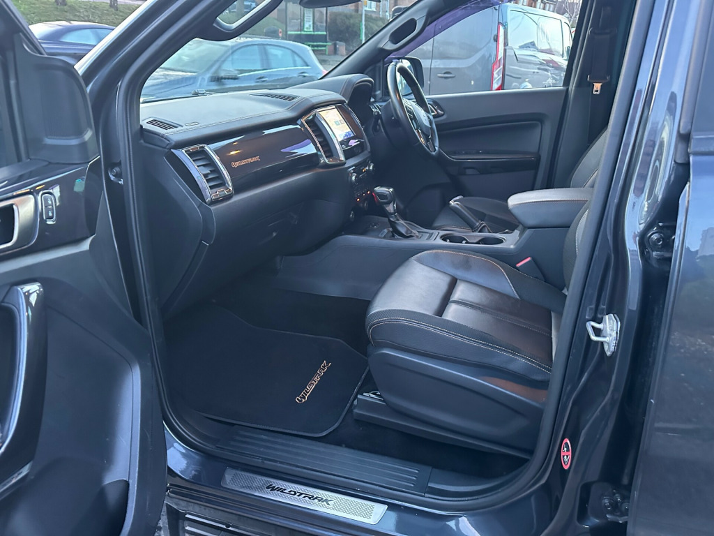 wildtrak + wide arch bodykit 10 speed automatic sea grey metallic wildtrak leather interior sports load covermustang LED headlights raptor grillreverse camera satellite navigation carplay cruise control heated seats heated screen a stunning truck throughout in alloy wheels - 8in boulder grey-machined, body coloured plastic front bumpers, boulder grey exterior door handle, boulder grey exterior mirror finish, boulder grey radiator grille, boulder grey step design rear bumper, chrome lift -decklid handle, dual power heated fold back mirrors with puddle lamps and signal, dyno grey sports hoop with side rails, electrically-operated windows with one-shot drivers window, front splash guard - mud flaps, heated windshield and rear window, inside chrome door handles, locking wheel nuts, moulded in colour tailgate handle, mud flaps - rear, painted front fender grill, privacy glass, rear bumper chromed steel step, roof rails, side step with brushed inserts, sports bar with high mounted brake light, sports hoop, under hood engine cover, 2 key fobs, abs - esp and roll-over mitigation, airbags - curtain, airbags - driver and front passenger, airbags - drivers knee bolster, airbags - front side, collision mitigation system, double locking power door lock with flip key, isofix child safety seat attachments, lane keeping aid, passive anti-theft system, passive keyless entry and start, power tailgate lock, spare wheel lock, thatcham category 1 security system, under body protection, cargo box power point plug, ford sync 3 single cd-dab radio - tmc and active noise cancelling, fordpass connect, power converter, rear power point plug, cruise control with asld -aeb and isa, epas - electric power assisted steering, fixed rear view camera, front parking aid, intelligent speed assistance, locking rear axle, rear parking sensors, tsr - traffic sign recognition, tyre pressure sensors, day-night inside mirror, driver seat back mounted map pocket, dual control system - eatc, ebony headliner, electrochromic inside mirror, front seats - driver and passenger heated seats, gearshift knob - leather, interior ambient led lighting, leather seat trim, load box bedliner, load box bedliner - power point and tie down hooks, load rest, loadbox inside tie down hooks, premium front and rear floor mats, rain sensitive windshield wipers, roof storage for driver sunglasses, seats - drivers 8-way adjustment, sport leather stitched steering wheel, tailgate with easy-lift - lower mechanism, tie down rail with rope hooks, wildtrak door trim panel insert, daytime running lamps, headlights - led, high mounted stop lamp with cargo light, led front fog lamps