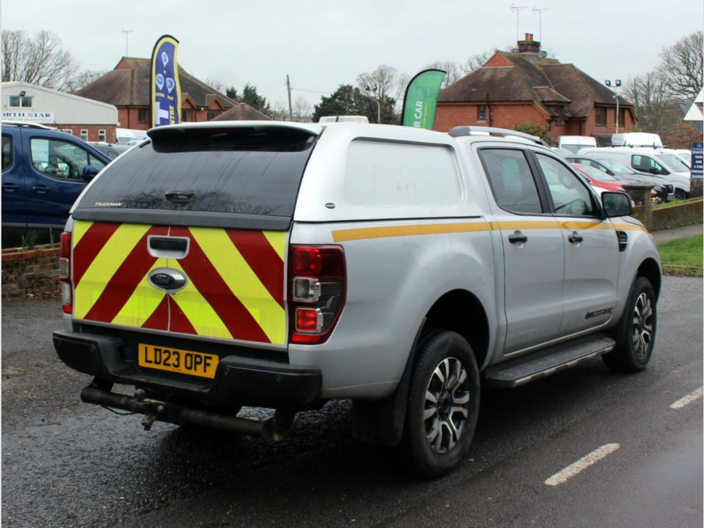 This 2023 Ford Ranger 2.0 EcoBlue Wildtrak Pickup Double Cab 4dr Diesel Auto 4WD Euro 6 (s/s) (213 ps) commercial vehicle is a reliable and powerful option for those in need of a pickup. With only 103900 miles on the clock, this diesel vehicle is ULEZ compliant and comes in a sleek Moondust Silver exterior with Journey Grain Partial Leather - Ebony interior. It offers 5 comfortable seats and 4 doors, making it suitable for both work and personal use. The 18in Alloy Wheels - 8in Boulder Grey-Machined and Body Coloured Plastic Front Bumpers add to its stylish appearance, while the Boulder Grey Exterior Door Handle provides practicality. Don't miss out on this versatile and efficient pickup, perfect for any commercial or personal needs., OPEN 7 DAYS A WEEK - A SELECTION OF UP TO 200 CARS AND VANS AVAILABLE. Click on dealer 'VISIT WEBSITE' link for many more large photographs of this car. We are a West Sussex Trading Standards Approved 'Buy with Confidence Dealership'. in alloy wheels - 8in boulder grey-machined, body coloured plastic front bumpers, boulder grey exterior door handle, boulder grey exterior mirror finish, boulder grey radiator grille, boulder grey step design rear bumper, chrome lift -decklid handle, dual power heated fold back mirrors with puddle lamps and signal, dyno grey sports hoop with side rails, electrically-operated windows with one-shot drivers window, front splash guard - mud flaps, heated windshield and rear window, inside chrome door handles, locking wheel nuts, moulded in colour tailgate handle, mud flaps - rear, painted front fender grill, privacy glass, rear bumper chromed steel step, roof rails, side step with brushed inserts, sports bar with high mounted brake light, sports hoop, under hood engine cover, 2 key fobs, abs - esp and roll-over mitigation, airbags - curtain, airbags - driver and front passenger, airbags - drivers knee bolster, airbags - front side, collision mitigation system, double locking power door lock with flip key, isofix child safety seat attachments, lane keeping aid, passive anti-theft system, passive keyless entry and start, power tailgate lock, spare wheel lock, thatcham category 1 security system, under body protection, cargo box power point plug, ford sync 3 single cd-dab radio - tmc and active noise cancelling, fordpass connect, power converter, rear power point plug, cruise control with asld -aeb and isa, epas - electric power assisted steering, fixed rear view camera, front parking aid, intelligent speed assistance, locking rear axle, rear parking sensors, tsr - traffic sign recognition, tyre pressure sensors, day-night inside mirror, driver seat back mounted map pocket, dual control system - eatc, ebony headliner, electrochromic inside mirror, front seats - driver and passenger heated seats, gearshift knob - leather, interior ambient led lighting, leather seat trim, load box bedliner, load box bedliner - power point and tie down hooks, load rest, loadbox inside tie down hooks, premium front and rear floor mats, rain sensitive windshield wipers, roof storage for driver sunglasses, seats - drivers 8-way adjustment, sport leather stitched steering wheel, tailgate with easy-lift - lower mechanism, tie down rail with rope hooks, wildtrak door trim panel insert, daytime running lamps, headlights - led, high mounted stop lamp with cargo light, led front fog lamps