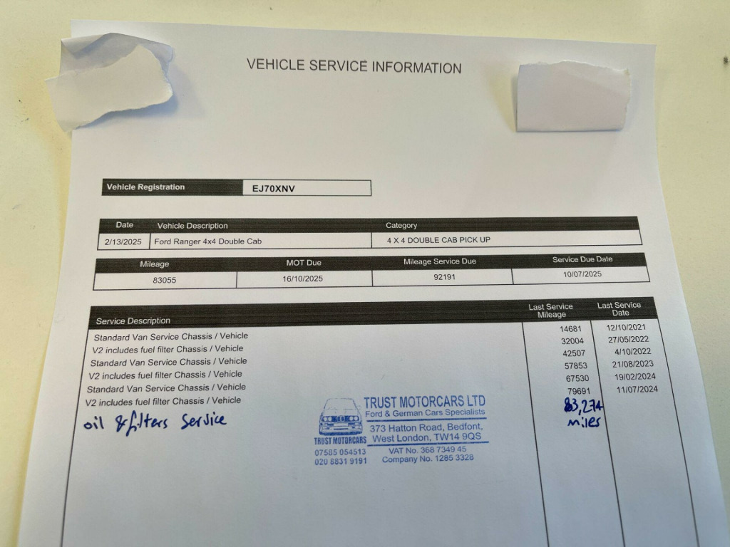 +VAT. We are delighted to be presenting to you this wonderful 2021 (70 plate) Ford Ranger XLT in lovely condition with some upgrades such as A/C Air Conditioning, Mobile Phone Connectivity, tow-bar, canopy,..., amongst many other upgrades. This example has only had ONE OWNER FROM BRAND NEW which have been large organisations that have regularly maintained the truck, visible from its internal and external condition. This lovely truck has FULL SERVICE HISTORY (SEVEN service/maintenance Records/Prints present), it comes with TWO SETS OF KEYS, it will be given to you with a long MOT and it has just been serviced fully:-Engine Oil Removed and Replaced-Engine Oil Filter Removed and Replaced-Air Filter Removed and ReplacedInternal and external condition of the car are good for the age and mileage; you can judge for yourself just by looking at the images and the video (more, larger images available on our website TRUSTMOTORCARS CO UK) or hopefully if you visit us very soon. Please do get in touch with us should you wish to arrange a viewing or if you would like to have it delivered to your door. More images of this car and many more are on our website so please feel free to visit us there; thank you. Part Exchange Welcome.-GUARANTEED MOT: WE WILL HAVE A NEW MOT DONE FOR YOU IF THE MOT RUNS OUT SOON-AFFORDABLE FINANCE OPTIONS AVAILABLE - PLEASE GET IN TOUCH WITH US FOR MORE DETAILS-THREE MONTHS WARRANTY-OPTIONAL EXTENDED AA WARRANTY COVER-MORE PHOTOS AND VIDEOS OF THIS VEHICLE AND MANY OTHERS ON OUR WEBSITE: TRUSTMOTORCARS CO UK-PART EXCHANGE WELCOME.-WE ARE BASED NEXT TO HEATHROW AIRPORT, MINUTES TO M25 J14, M4, M40, M3 and A312-NATIONWIDE DELIVERY AVAILABLE. in alloy wheels - 7in silver, abs - esp and roll-over mitigation, air conditioning - manual, airbags - curtain, airbags - driver and front passenger, airbags - drivers knee bolster, airbags - front side, airbags - passenger deactivation, body coloured plastic front bumpers, cargo box power point plug, chrome exterior door handles, chrome exterior mirror finish, chrome grille, chrome lift -decklid handle, collision mitigation system, cruise control with asld -aeb and isa, day-night inside mirror, daytime running lamps, double locking power door lock with flip key, driver seat back mounted map pocket, dual power heated fold back mirrors, epas - electric power assisted steering, electrically-operated windows with one-shot drivers window, electrochromic inside mirror, ford sync 2.5 with 8in touchscreen, fordpass connect, front fog lights, front throw in carpet floor mats, gearshift knob - leather, heated windshield and rear window, high mounted stop lamp with cargo light, isofix child safety seat attachments, inside chrome door handles, intelligent speed assistance, lane keeping aid, load box bedliner, load box bedliner - power point and tie down hooks, load rest, load rest - deletes chrome sports bar from limitied - pack 7, loadbox inside tie down hooks, locking wheel nuts, manual 4-way driver seat adjuster, mud flaps - rear, open style rear axle, passive anti-theft system, power tailgate lock, projector beam headlights, rain sensitive windshield wipers, rear bumper chrome underrun, rear power point plug, roof storage for driver sunglasses, side step with bright finish inserts, steering wheel - leather wrapped, tsr - traffic sign recognition, tailgate handle - self colour, thatcham category 1 security system, tie down rail with rope hooks, tyre pressure sensors, under hood engine cover, trailer tow pack, penta fabric - ebony