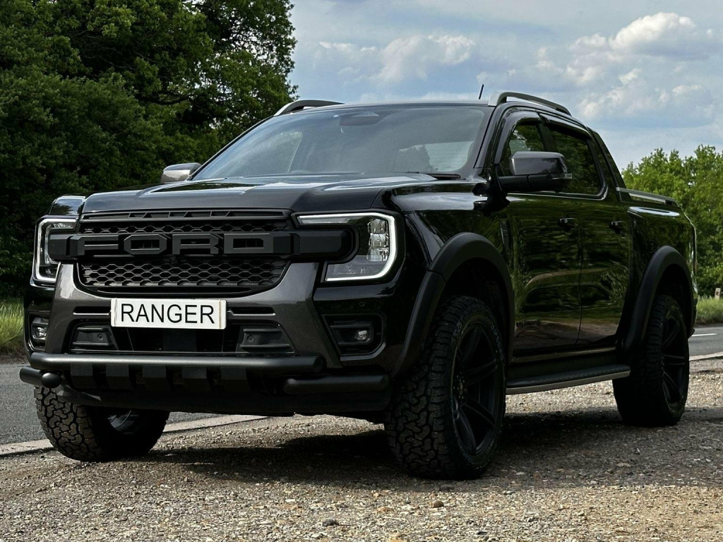 We specialise in bespoke Ford Rangers and this Ranger Wildtrak has a brand new raptor pack added as well as 20 alloys and brand new all terrain tyres. The factory spec incudes Tech Pack 68 (360 camera, Blind Spot Warning), power roller shutter and tow bar. If we dont have exactly what you want then feel free to call Jack and discuss your requirements, we can also put you touch with a number of finance providers. The brand new bespoke raptor upgrades include front raptor grill, 20 Alloys with brand new all terrain load rated tyres, wide wheel arch kit, lower front nudge bar, front light styling & tinted wind deflectors. The Ranger Wildtrak also has a great spec as standard and this includes Wildtrak embossed interior, large touch screen Sat Nav, Rear Camera, Front & Rear Parking Sensors. Adaptive Cruise Control, Heated Seats, Heated Steering Wheel. Electric adjustment on drivers seat. Media with DAB, Apple Car Play, Android Auto, Bluetooth streaming. Safety features include Lane keeping system, pre collision assist, cross traffic alert, reverse brake assist. This vehicle is equipped with the Ford Pass Connect, this allows you to track, start and monitor your Ranger from your phone. We specialise in Ford Ranger Custom Designs, please get in touch if you want to know what is coming into stock or want to be added to our email distribution list. The Balance of the three year Ford Manufactures Warranty remains.