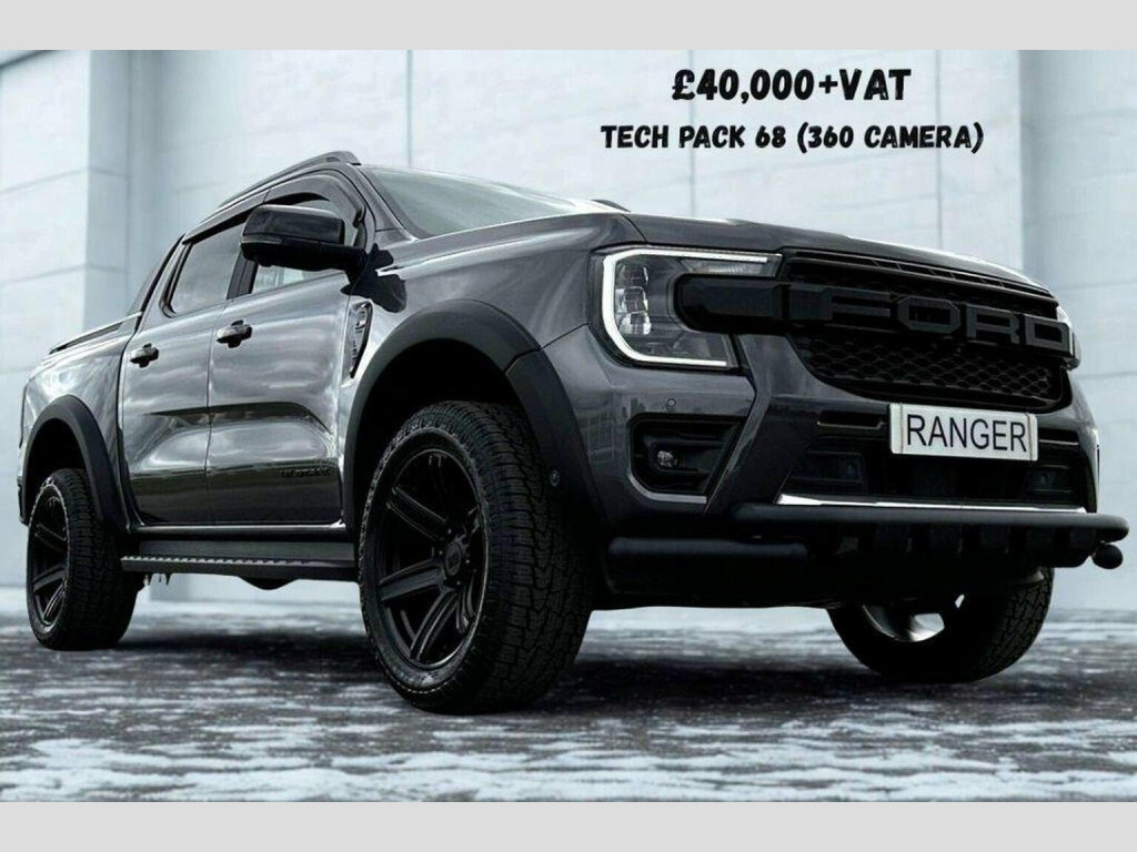 Tech Pack 68, Power Roller Shutter & Tow Bar. We specialise in bespoke Ford Rangers and this Ranger Wildtrak has a brand new raptor pack added as well as 20 alloys and brand new all terrain tyres. The factory spec incudes Tech Pack 68 (360 camera, Blind Spot Warning), power roller shutter and detachable tow bar. If we dont have exactly what you want then feel free to call and discuss your requirements, we can also put you touch with a number of finance providers. The brand new bespoke raptor upgrades include front raptor grill, 20 Alloys with brand new all terrain load rated tyres, wide wheel arch kit, lower front nudge bar & tinted wind deflectors. The Ranger Wildtrak also has a great spec as standard and this includes Wildtrak embossed interior, large touch screen Sat Nav, Rear Camera, Front & Rear Parking Sensors. Adaptive Cruise Control, Heated Seats, Heated Steering Wheel. Electric adjustment on drivers seat. Media with DAB, Apple Car Play, Android Auto, Bluetooth streaming. Safety features include Lane keeping system, pre collision assist, cross traffic alert, reverse brake assist. This vehicle is equipped with the Ford Pass Connect, this allows you to track, start and monitor your Ranger from your phone. We specialise in Ford Ranger Custom Designs, please get in touch if you want to know what is coming into stock or want to be added to our email distribution list. The Balance of the three year Ford Manufactures Warranty remains.
