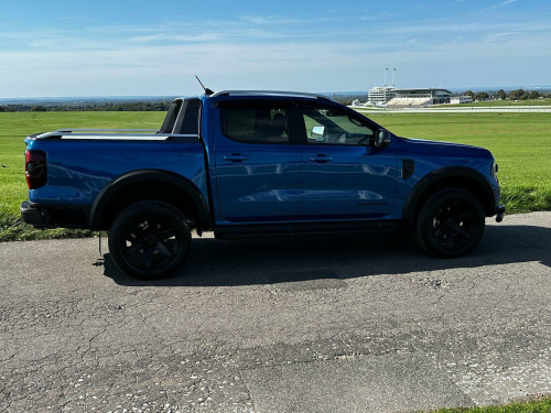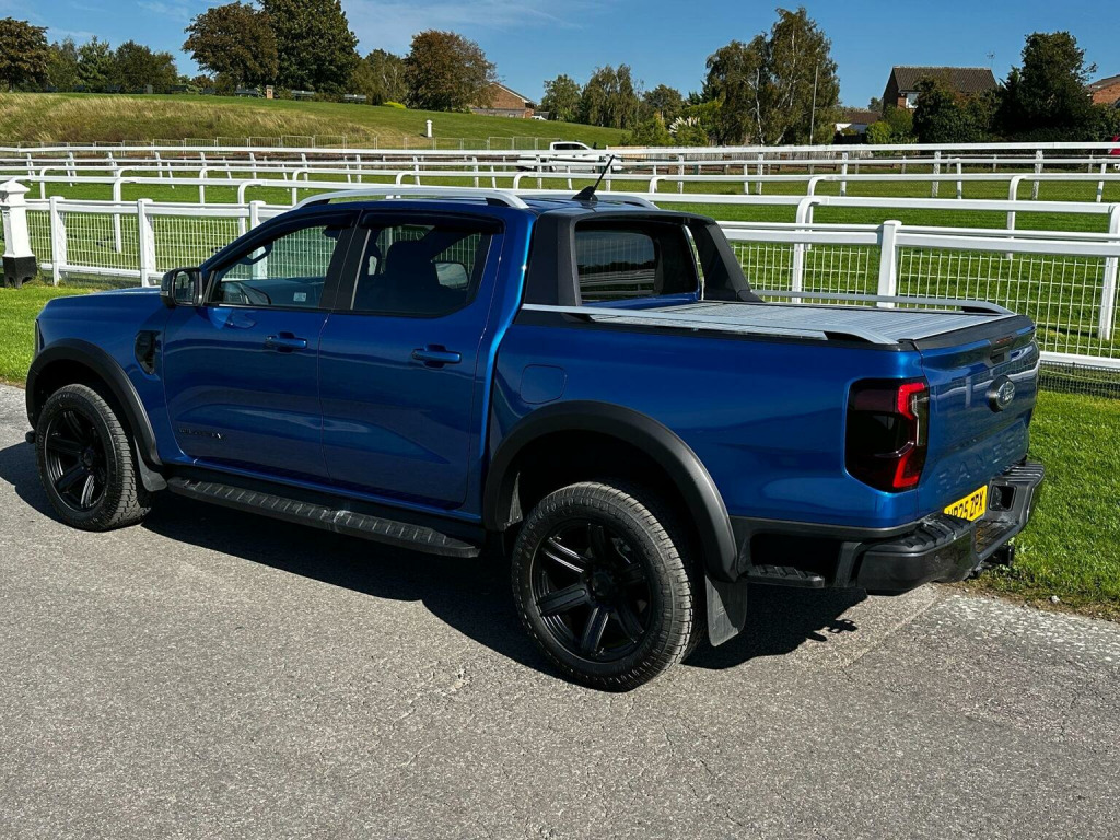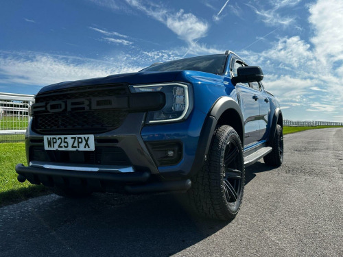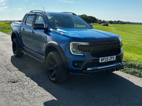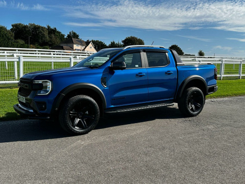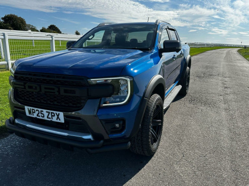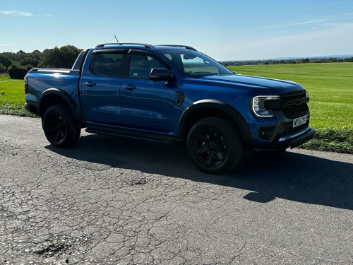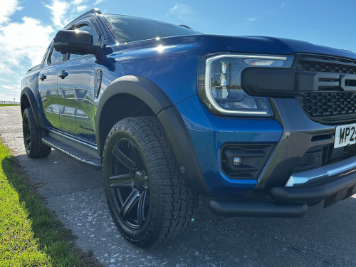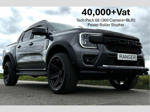 Tech Pack 68, Power Roller Shutter & Tow Bar. We specialise in bespoke Ford Rangers and this Ranger Wildtrak has a brand new raptor pack added as well as 20 alloys and brand new all terrain tyres. The factory spec incudes Tech Pack 68 (360 camera, Blind Spot Warning), power roller shutter and detachable tow bar. If we dont have exactly what you want then feel free to call and discuss your requirements, we can also put you touch with a number of finance providers. The brand new bespoke raptor upgrades include front raptor grill, 20 Alloys with brand new all terrain load rated tyres, wide wheel arch kit, lower front nudge bar & tinted wind deflectors. The Ranger Wildtrak also has a great spec as standard and this includes Wildtrak embossed interior, large touch screen Sat Nav, Rear Camera, Front & Rear Parking Sensors. Adaptive Cruise Control, Heated Seats, Heated Steering Wheel. Electric adjustment on drivers seat. Media with DAB, Apple Car Play, Android Auto, Bluetooth streaming. Safety features include Lane keeping system, pre collision assist, cross traffic alert, reverse brake assist. This vehicle is equipped with the Ford Pass Connect, this allows you to track, start and monitor your Ranger from your phone. We specialise in Ford Ranger Custom Designs, please get in touch if you want to know what is coming into stock or want to be added to our email distribution list. The Balance of the three year Ford Manufactures Warranty remains.