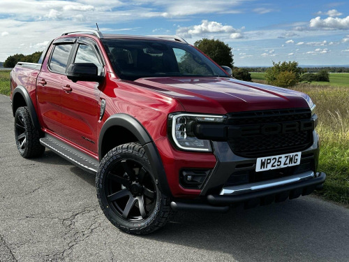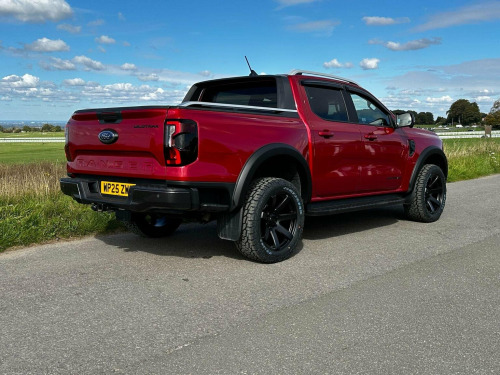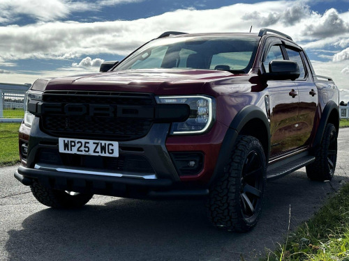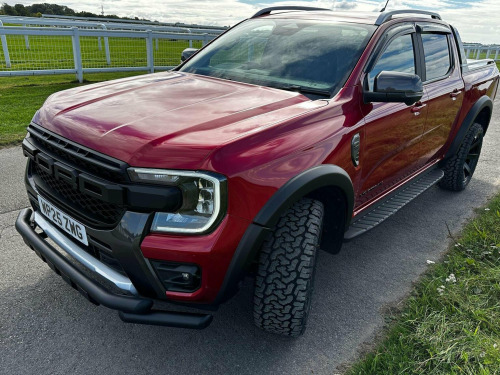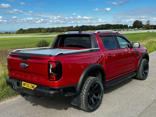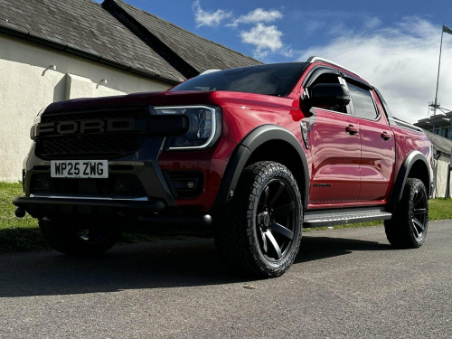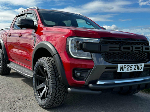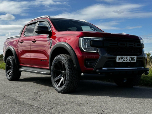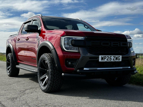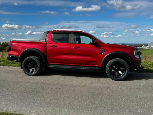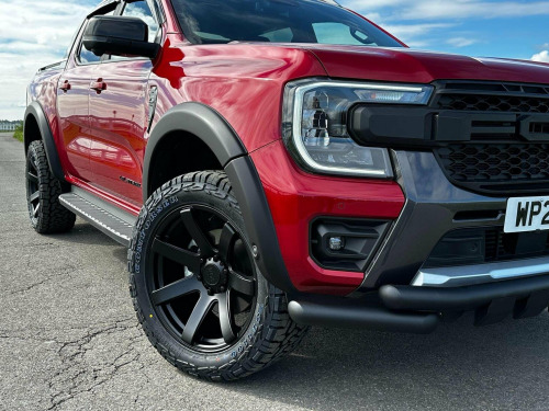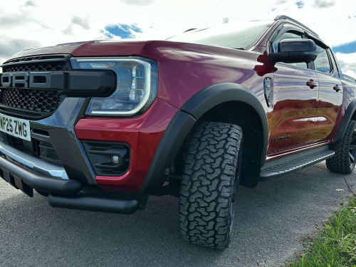 Tech Pack 68, Power Roller Shutter & Tow Bar. We specialise in bespoke Ford Rangers and this Ranger Wildtrak has a brand new raptor pack added as well as 20 alloys and brand new all terrain tyres. The factory spec incudes Tech Pack 68 (360 camera, Blind Spot Warning), power roller shutter and detachable tow bar. If we dont have exactly what you want then feel free to call and discuss your requirements, we can also put you touch with a number of finance providers. The brand new bespoke raptor upgrades include front raptor grill, 20 Alloys with brand new all terrain load rated tyres, wide wheel arch kit, lower front nudge bar & tinted wind deflectors. The Ranger Wildtrak also has a great spec as standard and this includes Wildtrak embossed interior, large touch screen Sat Nav, Rear Camera, Front & Rear Parking Sensors. Adaptive Cruise Control, Heated Seats, Heated Steering Wheel. Electric adjustment on drivers seat. Media with DAB, Apple Car Play, Android Auto, Bluetooth streaming. Safety features include Lane keeping system, pre collision assist, cross traffic alert, reverse brake assist. This vehicle is equipped with the Ford Pass Connect, this allows you to track, start and monitor your Ranger from your phone. We specialise in Ford Ranger Custom Designs, please get in touch if you want to know what is coming into stock or want to be added to our email distribution list. The Balance of the three year Ford Manufactures Warranty remains.