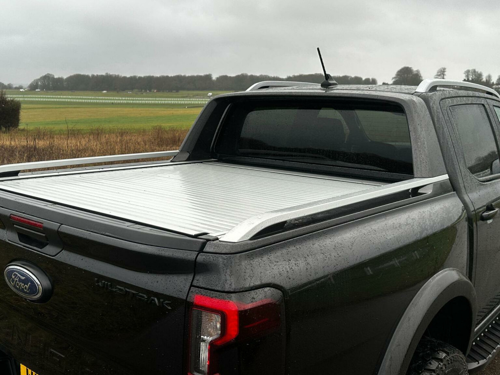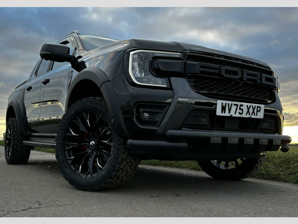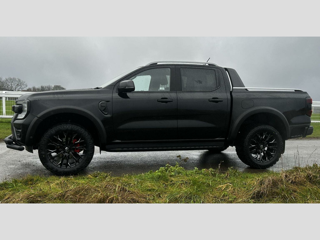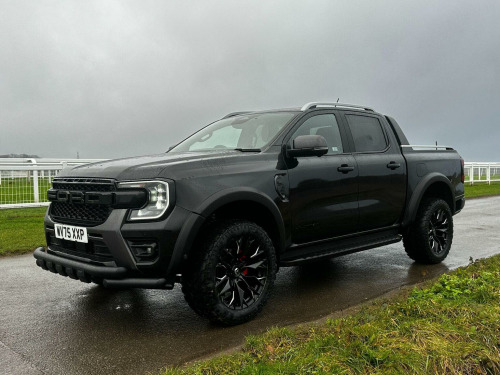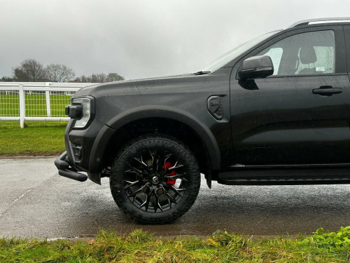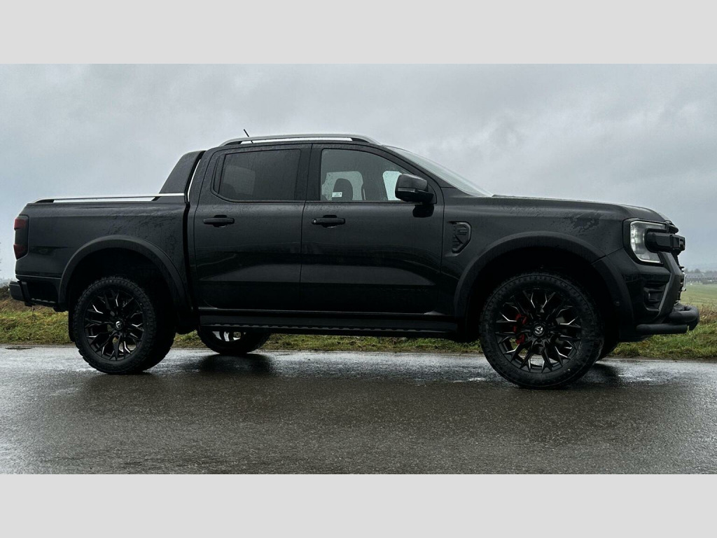 Tech Pack 68, Power Roller Shutter & Tow Bar. We specialise in bespoke Ford Rangers and this Ranger Wildtrak has a brand new raptor pack added as well as 20 alloys and brand new all terrain tyres. The factory spec incudes Tech Pack 68 (360 camera, Blind Spot Warning), power roller shutter and detachable tow bar. If we dont have exactly what you want then feel free to call and discuss your requirements, we can also put you touch with a number of finance providers. The brand new bespoke raptor upgrades include front raptor grill, 20 Alloys with brand new all terrain load rated tyres, wide wheel arch kit, black out lower front bumper, lower front nudge bar and front light styling. The Ranger Wildtrak also has a great spec as standard and this includes Wildtrak embossed interior, large touch screen Sat Nav, Rear Camera, Front & Rear Parking Sensors. Adaptive Cruise Control, Heated Seats, Heated Steering Wheel. Electric adjustment on drivers seat. Media with DAB, Apple Car Play, Android Auto, Bluetooth streaming. Safety features include Lane keeping system, pre collision assist, cross traffic alert, reverse brake assist. This vehicle is equipped with the Ford Pass Connect, this allows you to track, start and monitor your Ranger from your phone. We specialise in Ford Ranger Custom Designs, please get in touch if you want to know what is coming into stock or want to be added to our email distribution list. The Balance of the three year Ford Manufactures Warranty remains.