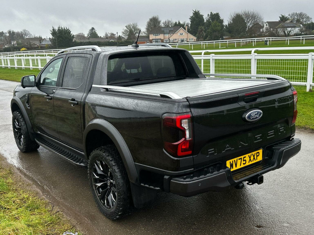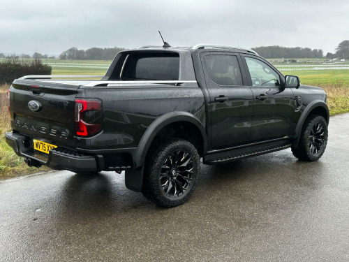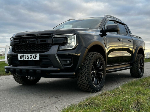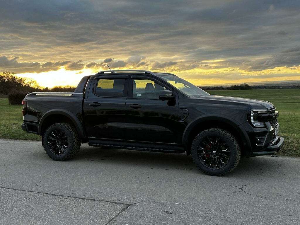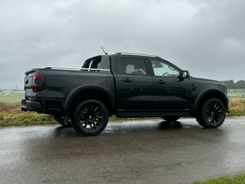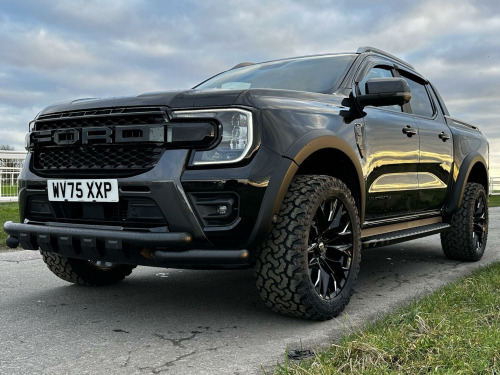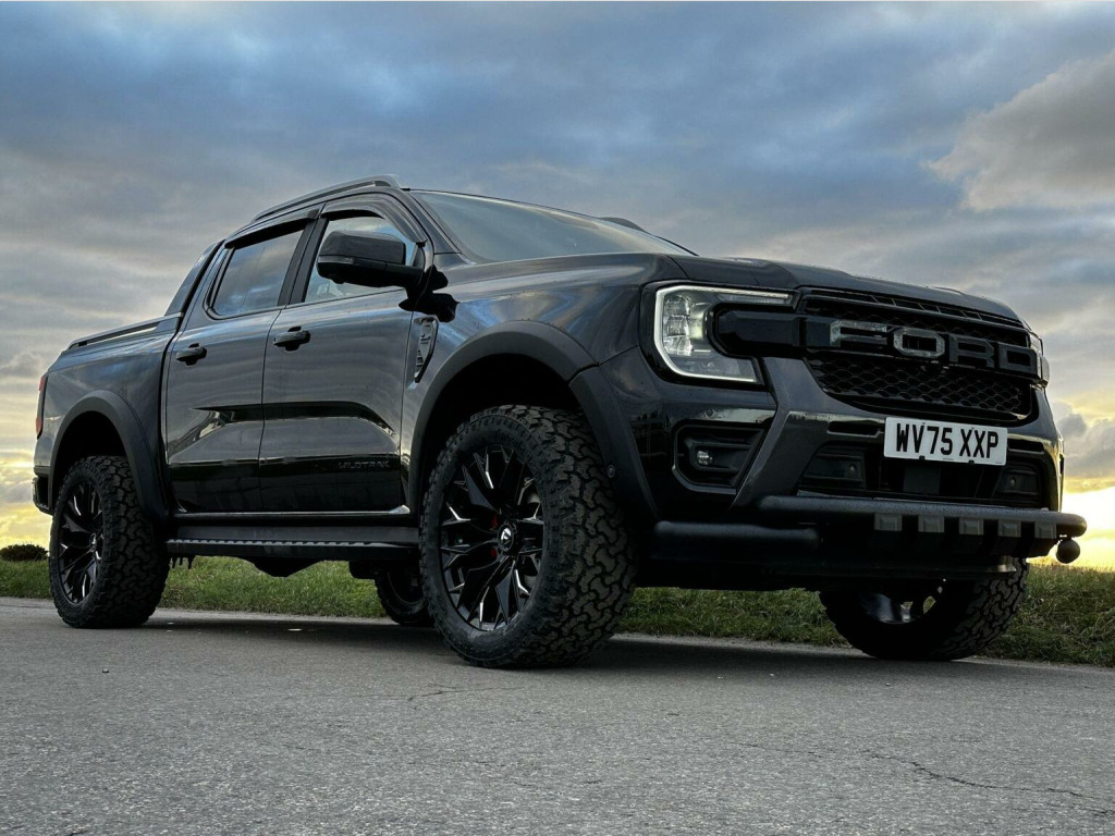 Tech Pack 68, Power Roller Shutter & Tow Bar. We specialise in bespoke Ford Rangers and this Ranger Wildtrak has a brand new raptor pack added as well as 20 alloys and brand new all terrain tyres. The factory spec incudes Tech Pack 68 (360 camera, Blind Spot Warning), power roller shutter and detachable tow bar. If we dont have exactly what you want then feel free to call and discuss your requirements, we can also put you touch with a number of finance providers. The brand new bespoke raptor upgrades include front raptor grill, 20 Alloys with brand new all terrain load rated tyres, wide wheel arch kit, black out lower front bumper, lower front nudge bar and front light styling. The Ranger Wildtrak also has a great spec as standard and this includes Wildtrak embossed interior, large touch screen Sat Nav, Rear Camera, Front & Rear Parking Sensors. Adaptive Cruise Control, Heated Seats, Heated Steering Wheel. Electric adjustment on drivers seat. Media with DAB, Apple Car Play, Android Auto, Bluetooth streaming. Safety features include Lane keeping system, pre collision assist, cross traffic alert, reverse brake assist. This vehicle is equipped with the Ford Pass Connect, this allows you to track, start and monitor your Ranger from your phone. We specialise in Ford Ranger Custom Designs, please get in touch if you want to know what is coming into stock or want to be added to our email distribution list. The Balance of the three year Ford Manufactures Warranty remains.