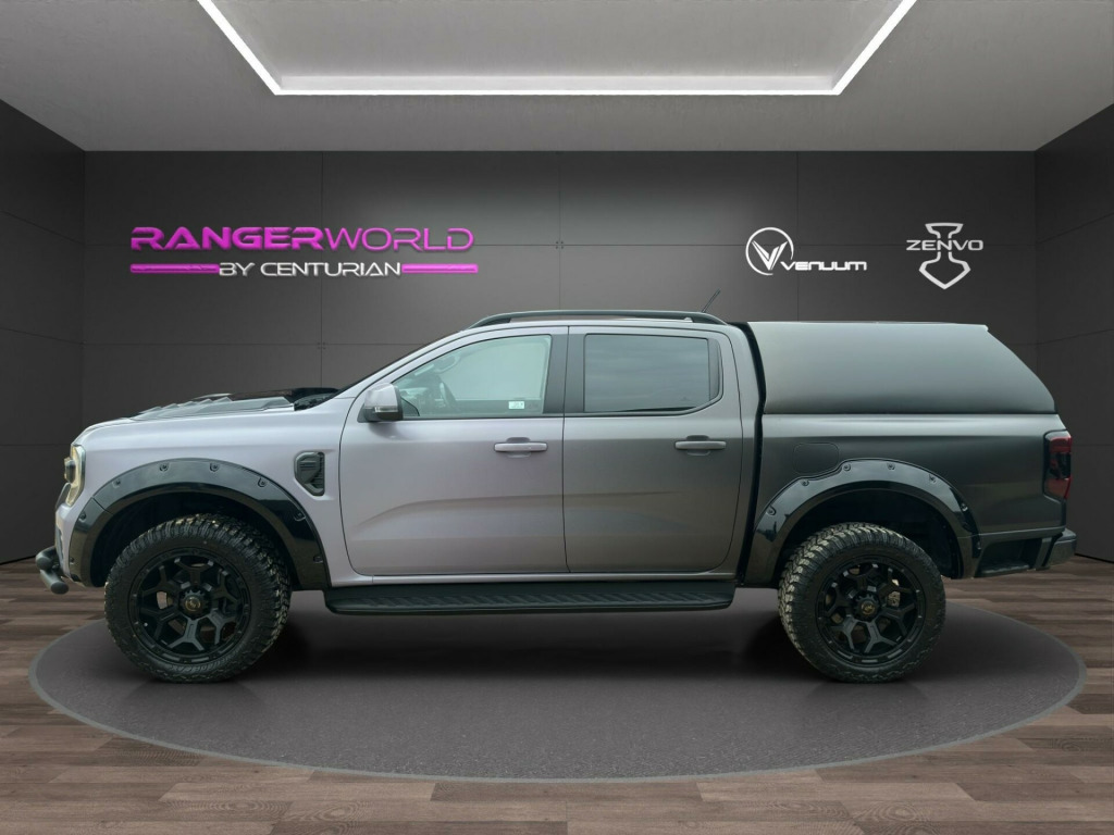 WELCOME TO RANGER WORLD, WE HAVE THE LARGEST STOCK OF BESPOKE BUILD RANGERS IN THE UK PART EXCHANGE & FINANCE AVAILABLE (REPRESENTATIVE 9.9% APR) WE ARE A CREDIT BROKER NOT A LENDERTO VIEW PLEASE CALL AS WE ARE STRICTLY BY APPOINTMENT ONLY. THIS ENABLES US TO GIVE YOU OUR UNDIVIDED ATTENTION. OUR STOCK CHANGES DAILY SO PLEASE CONFIRM WITH US THIS VEHICLE IS STILL AVAILABLE. ALL WRAPS AND SPORTBACK CANOPY IN THE PHOTOS ARE EXTRA-COST OPTIONSINCLUDED IN THE PRICE IS THE FOLLOWING SPEC.1: 20” Upgrade wheels and tyres… 4 STYLES AVAILABLE2: CENTURIAN edition Wide Bodykit.3: RW Front Grill.4: Front Bonnet Apron5: Bonnet Scoop.6: Roof light bar.7: Bonnet Scoop.8: Front City Bar.9: black brake calipers.@ EXTRA COSTROLLER SHUTTERS £2500SPORT BACK/CANOPY £3000.BODYWRAP £3000At Ranger World, we take pride in offering a unique and personalised experience for enthusiasts of the iconic Ford Ranger and Mustangs. Specialising in these Icons means we go beyond the ordinary to deliver vehicles that reflect your style and preferences. Our vehicles are hand-built by our skilled team in Northamptonshire. Here at RANGER WORLD, we are a small passionate team dedicated to making purchasing your new car the best experience you will ever have! No sales staff just enthusiasts. Our unique and stunning showroom is nestled in 150 acres of beautiful Northamptonshire countryside. 1 mile from J12 of the A14….WANTED PLATINUM DERANGED RAPTER F150 KAHN REVERE GVE URBAN CINCH OVERFINCH VVS SEEKER DIRTY UNICORN AUTOLAB GC SHELBY RAPTOR FAIR PRICES PAID FOR THE RIGHT EXAMPLES! RANGER WORLD exercises all reasonable care and skill in providing you with spec check Data. All rights reserved. RANGER WORLD does not accept responsibility for errors, omissions, liability or loss suffered due to the use of spec check Data by any user or other party. spec check is a guide and all equipment should be physically verified, RANGER WORLD does not warrant any information provided as part of the spec check.. 18in Alloy Wheels - A-S Tyres, 2 Remote Control Unit - Key Fobs, 360 Zone Lighting, Acoustic Laminated Windscreen, Assisted Conventional Tailgate, Body Protection Pack 2, Cargo Light, Conventional Gearshift, Daytime Running Lamps, Decklid Handle - Self Coloured, Door Handles - Body Colour, Driver Assistance Package, Driver Sunvisor with Mirror, Dual Power Heated Fold Back Mirrors with Puddle Lamps, E-Marked Glass, Ebony Headliner, Electrochromic Inside Mirror, Electronic Automatic Air Conditioning, Electronic Parking Brake, Feature Pack B, Fog Lamp Bezels, Fresh Air Heater, Front Bumper Accent Colour, Front Headlamp Leveling, Front Seat Pack 7, Front Towing Hooks, Fuel Tank Guard, Functional Upgrade Pack 3, Glovebox Lights, Heavy Duty Terrain Pack, ICE Feature Pack 102, Ice Warning, Inside Door Handles - MIC, Interior Ambient LED Lighting, Interior Trim Pack 13, LED Front Fog Lamps, Level 2 Headlamp - LED Reflector, Manual Liftgate, Metal Underbody Protection, Narrow Bodyside Moulding - Insert, Non Locking Capless Fuel Fill, Partial TFT-LCD Instrument Cluster, Passenger Sunvisor with Mirror, Passive Keyless Entry and Start, Pickup Side Rails, Plastic Cab Roll Over Bar, Pollen Filter, Power Tailgate Lock, Premium Air Register, Privacy Glass, Rear Bumper Accent Colour, Rear Bumper Extension, Rear Bumper Step - Integrated Rear Box Step, Rear Floor Ducts, Rear Fog Lamps, Rear Seat Pack 15, Rear Seatbelt Pre-Tensioner, Roof Rails, Silver Matte Step Bar, Soft Ride Suspension, Spare Tyre Lock, Tachograph Prep Pack, Technology Pack 20, Thatcham Alarm, Trailer Tow Class 1, Tyre Pressure Sensors, Under Hood Engine Cover, Vinyl Door Trim Panels, Load Box Bedliner, Micro Rib Embossed Leather - Black.
