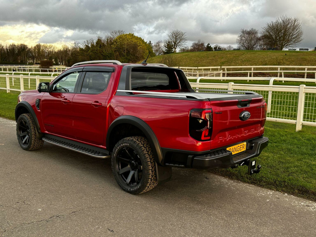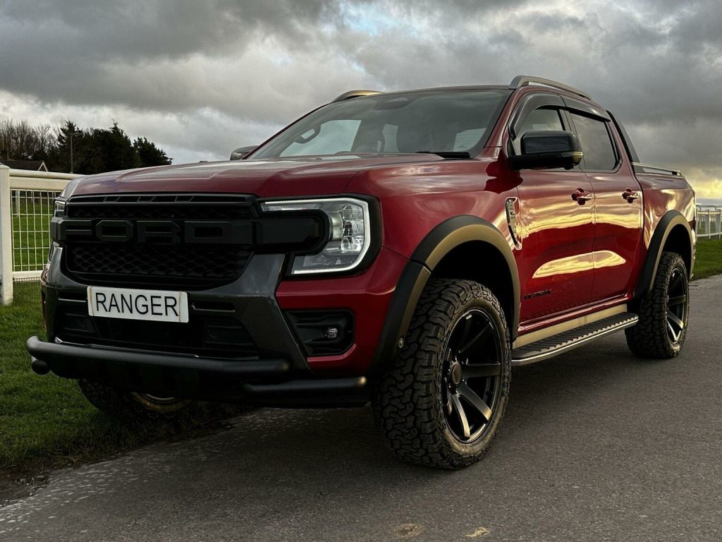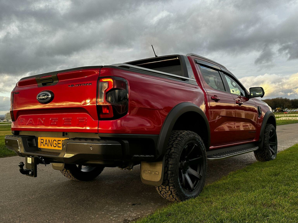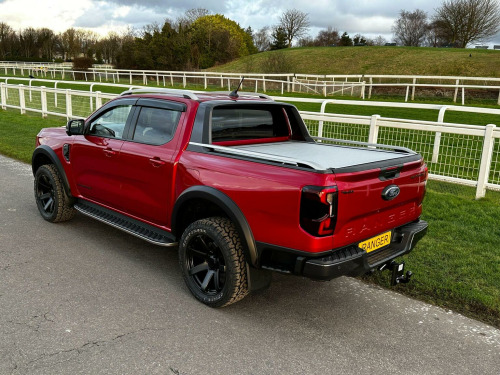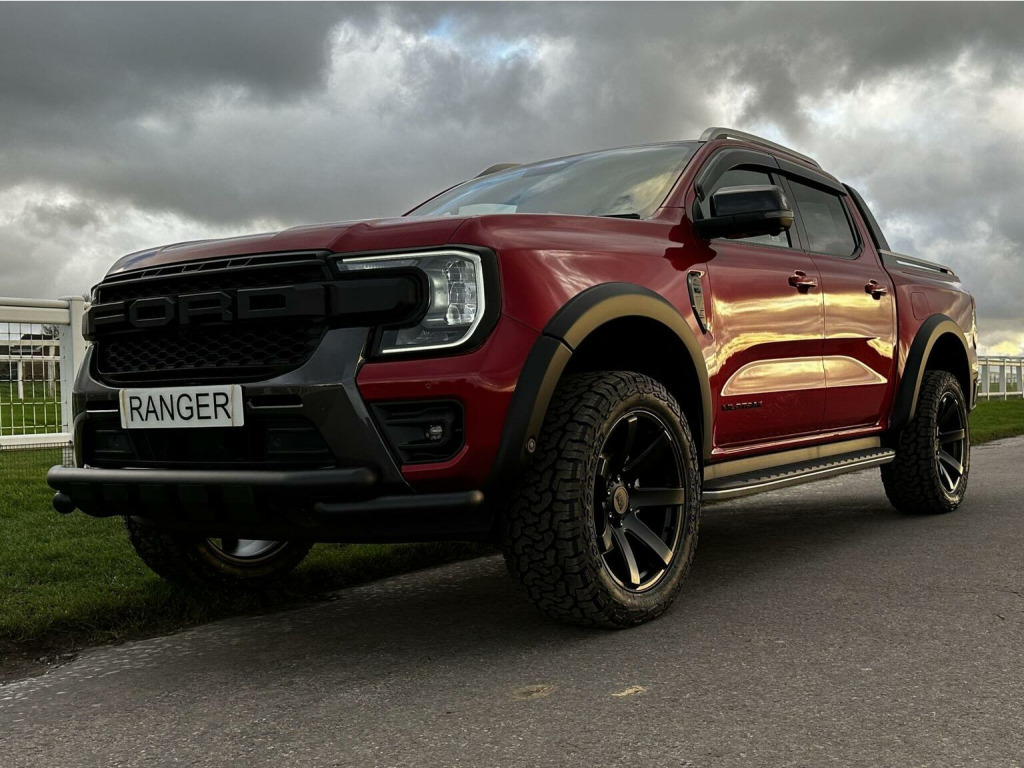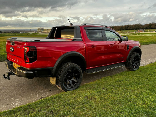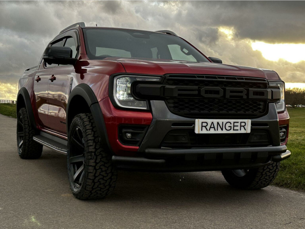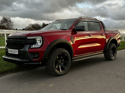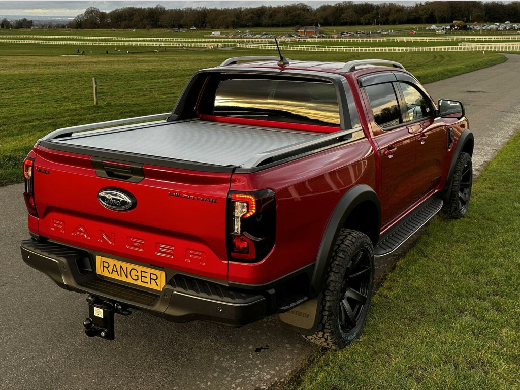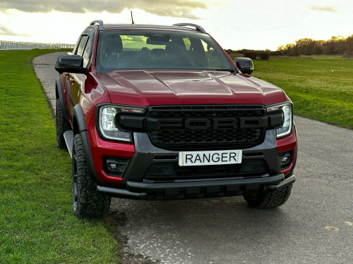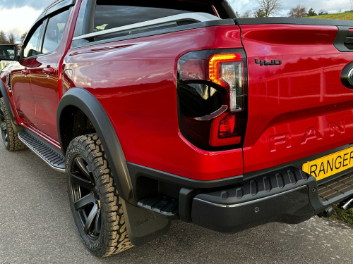 Tech Pack 68, Power Roller Shutter & Tow Bar. We specialise in bespoke Ford Rangers and this Ranger Wildtrak has a brand new raptor pack added as well as 20 alloys and brand new all terrain tyres. The factory spec incudes Tech Pack 68 (360 camera, Blind Spot Warning), power roller shutter and detachable tow bar. If we dont have exactly what you want then feel free to call and discuss your requirements, we can also put you touch with a number of finance providers. The brand new bespoke raptor upgrades include front raptor grill, 20 Alloys with brand new all terrain load rated tyres, wide wheel arch kit, lower front nudge bar & tinted wind deflectors. The Ranger Wildtrak also has a great spec as standard and this includes Wildtrak embossed interior, large touch screen Sat Nav, Rear Camera, Front & Rear Parking Sensors. Adaptive Cruise Control, Heated Seats, Heated Steering Wheel. Electric adjustment on drivers seat. Media with DAB, Apple Car Play, Android Auto, Bluetooth streaming. Safety features include Lane keeping system, pre collision assist, cross traffic alert, reverse brake assist. This vehicle is equipped with the Ford Pass Connect, this allows you to track, start and monitor your Ranger from your phone. We specialise in Ford Ranger Custom Designs, please get in touch if you want to know what is coming into stock or want to be added to our email distribution list. The Balance of the three year Ford Manufactures Warranty remains.