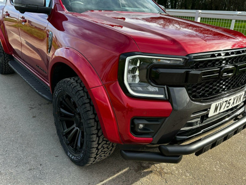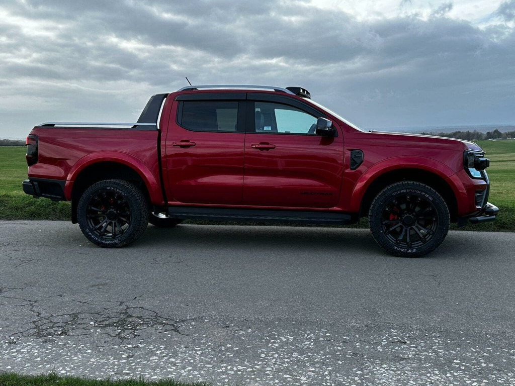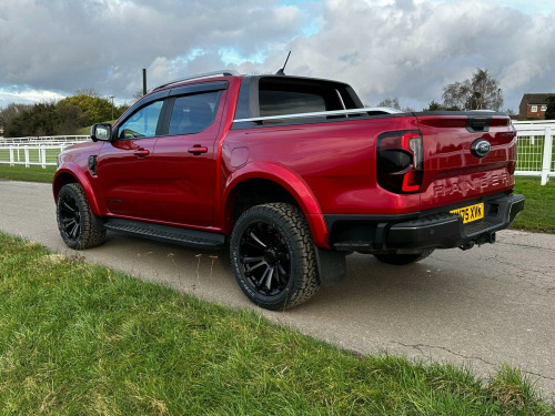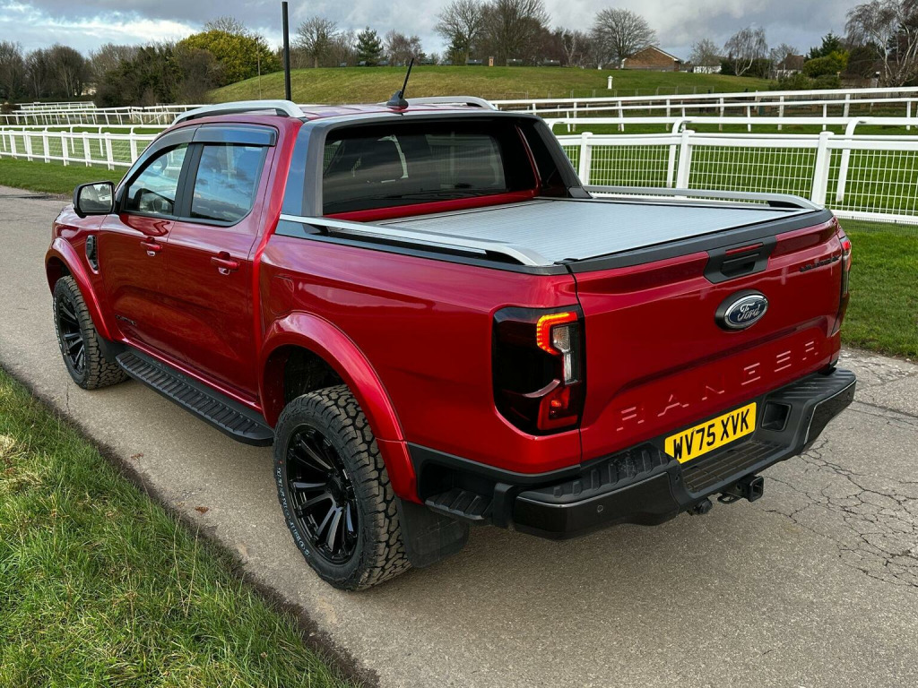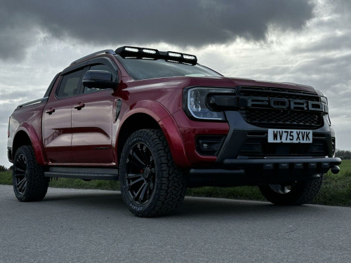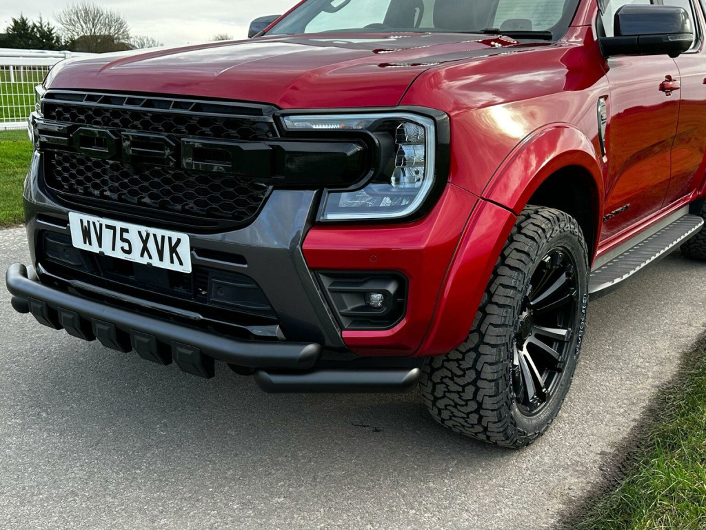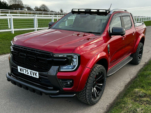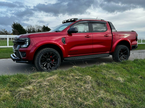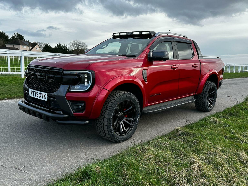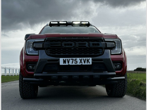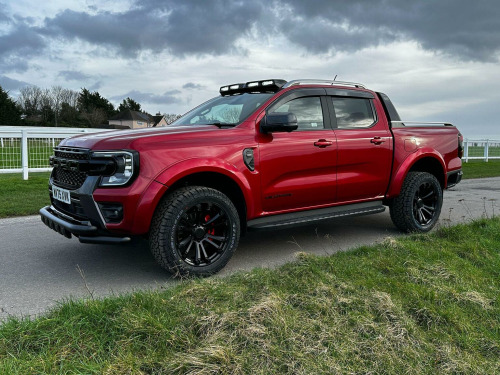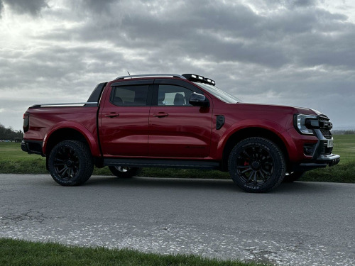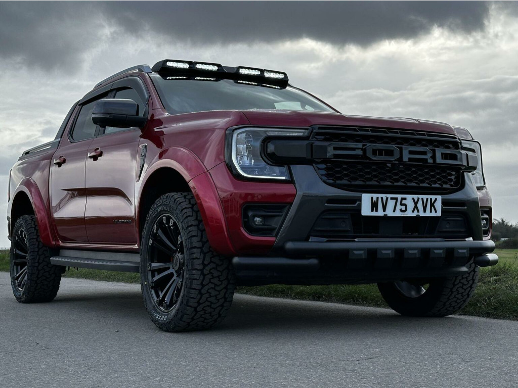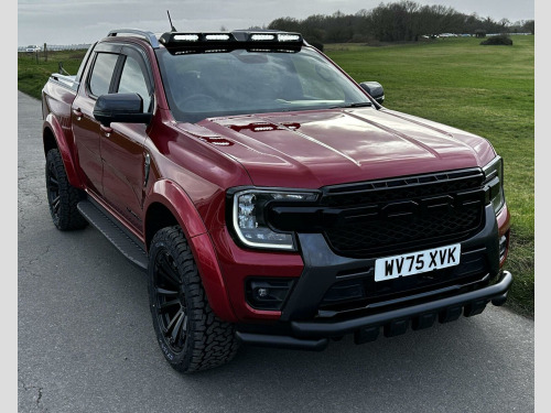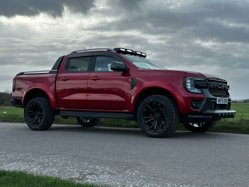 Tech Pack 68, Power Roller Shutter & Tow Bar. We specialise in bespoke Ford Rangers and this Ranger Wildtrak has a brand new raptor pack added as well as 20 alloys and brand new all terrain tyres. The factory spec incudes Tech Pack 68 (360 camera, Blind Spot Warning), power roller shutter and detachable tow bar. If we dont have exactly what you want then feel free to call and discuss your requirements, we can also put you touch with a number of finance providers. The brand new bespoke raptor upgrades include front raptor grill, roof light pod, 20 Alloys with brand new all terrain load rated tyres, colour coded wide wheel arch kit, black out lower front bumper, lower front nudge bar, front light styling, tinted wind deflectors. The Ranger Wildtrak also has a great spec as standard and this includes Wildtrak embossed interior, large touch screen Sat Nav, Rear Camera, Front & Rear Parking Sensors. Adaptive Cruise Control, Heated Seats, Heated Steering Wheel. Electric adjustment on drivers seat. Media with DAB, Apple Car Play, Android Auto, Bluetooth streaming. Safety features include Lane keeping system, pre collision assist, cross traffic alert, reverse brake assist. This vehicle is equipped with the Ford Pass Connect, this allows you to track, start and monitor your Ranger from your phone. We specialise in Ford Ranger Custom Designs, please get in touch if you want to know what is coming into stock or want to be added to our email distribution list. The Balance of the three year Ford Manufactures Warranty remains.