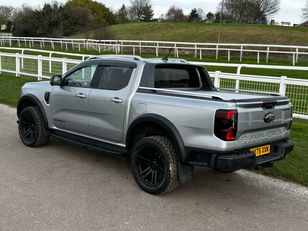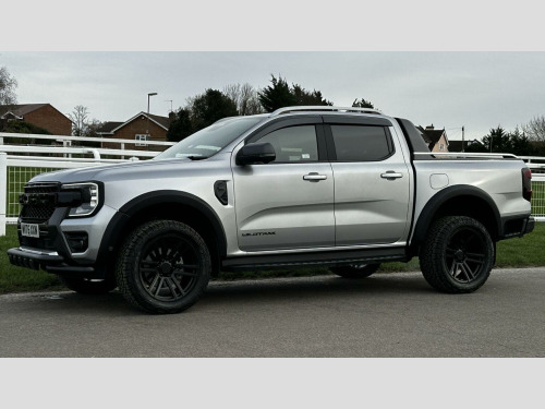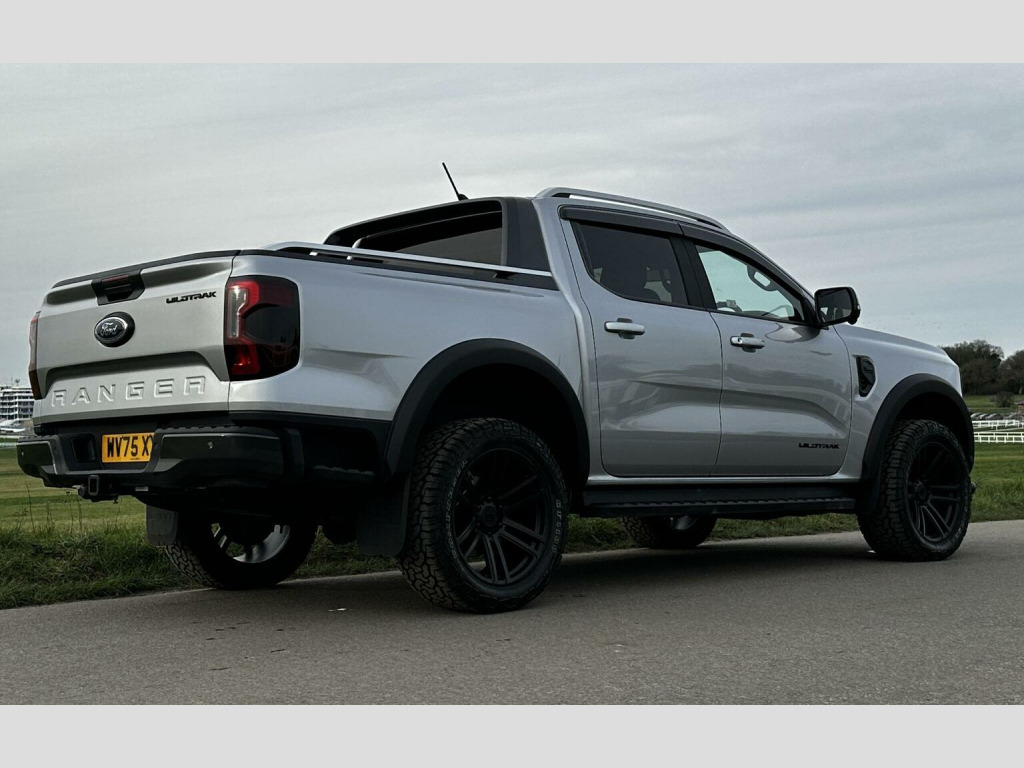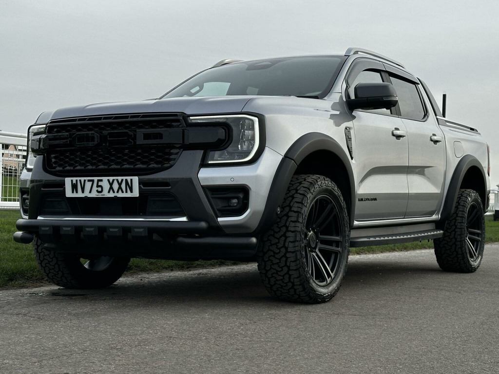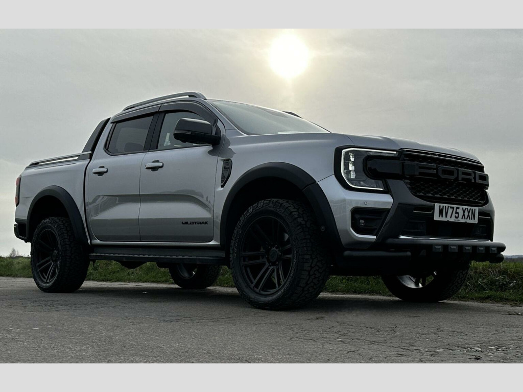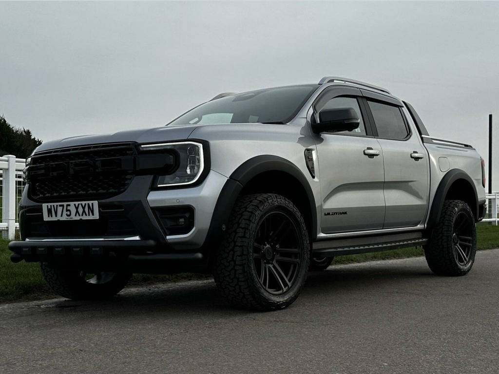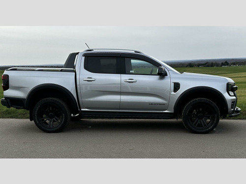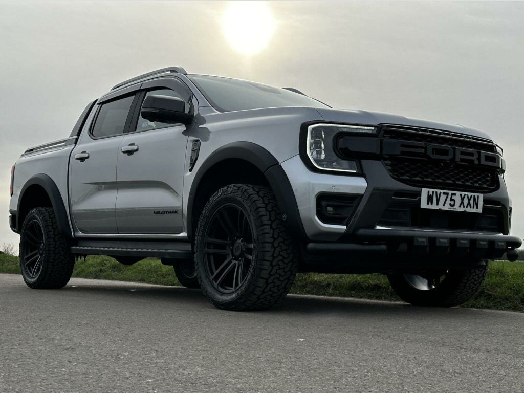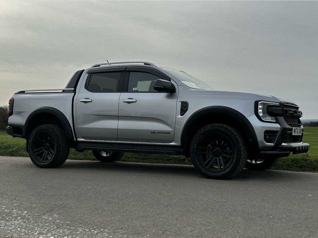 Tech Pack 68, Power Roller Shutter & Tow Bar. We specialise in bespoke Ford Rangers and this Ranger Wildtrak has a brand new raptor pack added as well as 20 alloys and brand new all terrain tyres. The factory spec incudes Tech Pack 68 (360 camera, Blind Spot Warning), power roller shutter and detachable tow bar. If we dont have exactly what you want then feel free to call and discuss your requirements, we can also put you touch with a number of finance providers. The brand new bespoke raptor upgrades include front raptor grill, 20 Alloys with brand new all terrain load rated tyres, wide wheel arch kit, lower front nudge bar, front light styling trim & tinted wind deflectors. The Ranger Wildtrak also has a great spec as standard and this includes Wildtrak embossed interior, large touch screen Sat Nav, Rear Camera, Front & Rear Parking Sensors. Adaptive Cruise Control, Heated Seats, Heated Steering Wheel. Electric adjustment on drivers seat. Media with DAB, Apple Car Play, Android Auto, Bluetooth streaming. Safety features include Lane keeping system, pre collision assist, cross traffic alert, reverse brake assist. This vehicle is equipped with the Ford Pass Connect, this allows you to track, start and monitor your Ranger from your phone. We specialise in Ford Ranger Custom Designs, please get in touch if you want to know what is coming into stock or want to be added to our email distribution list. The Balance of the three year Ford Manufactures Warranty remains.