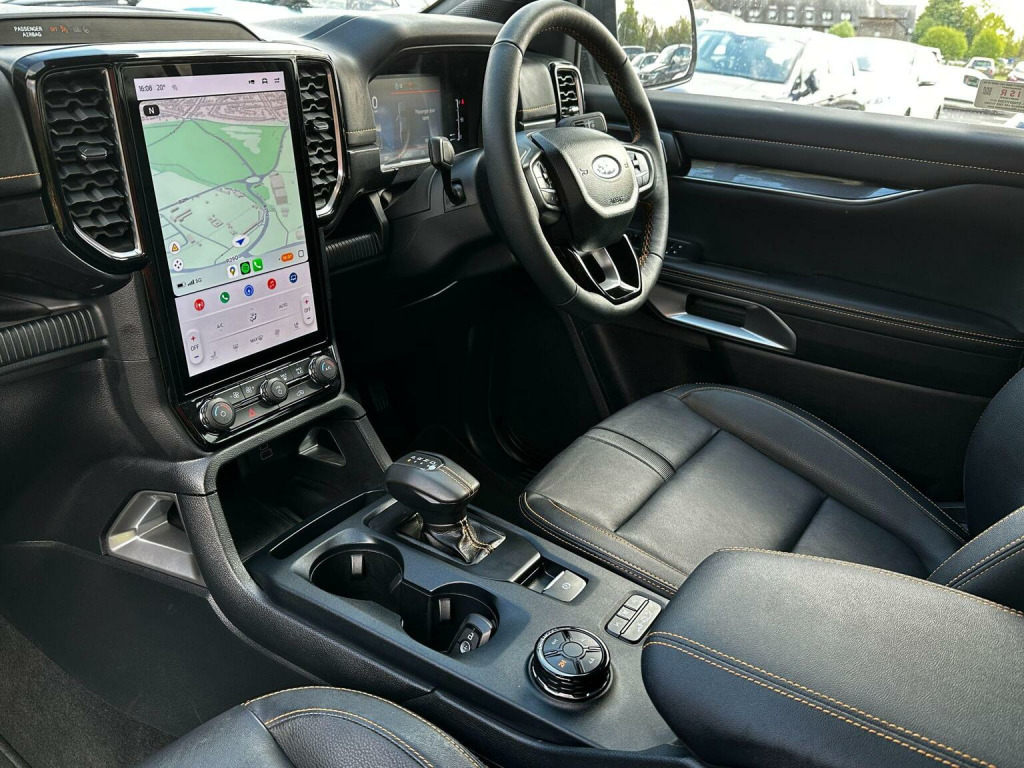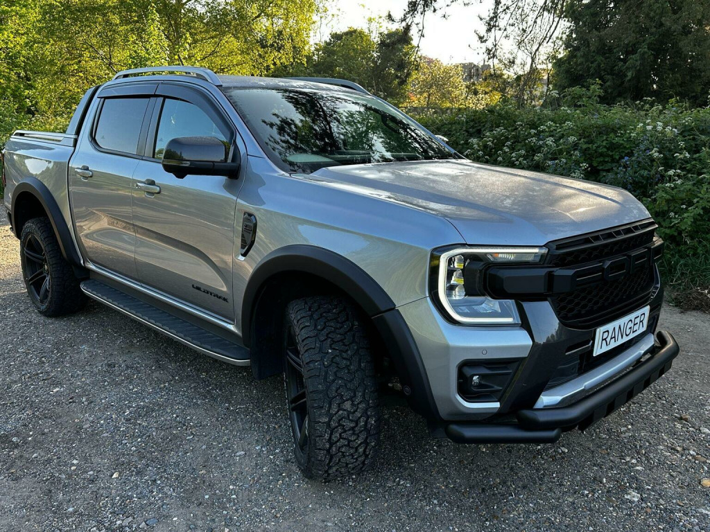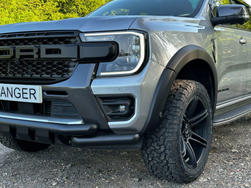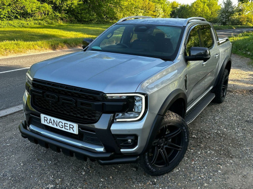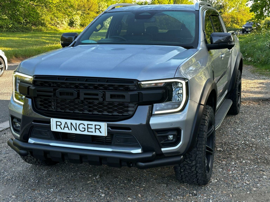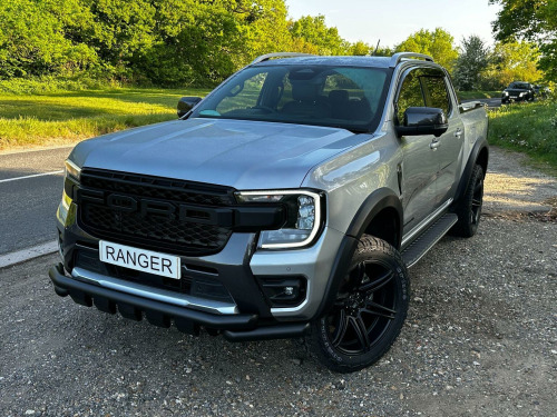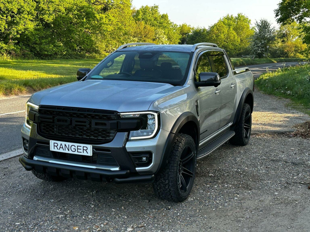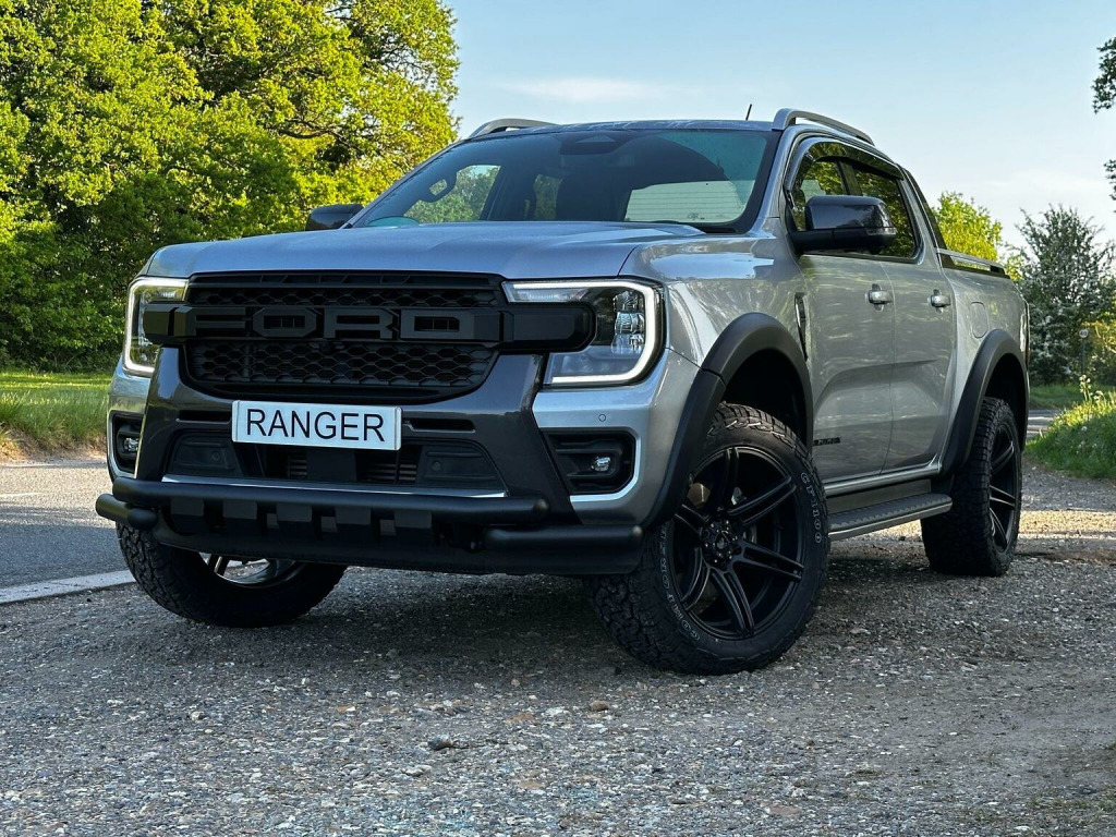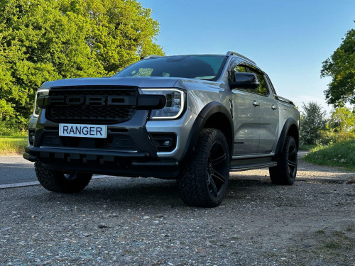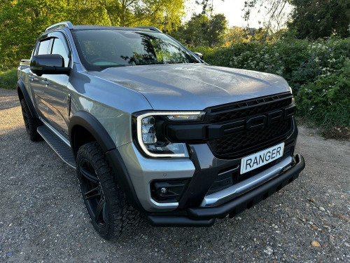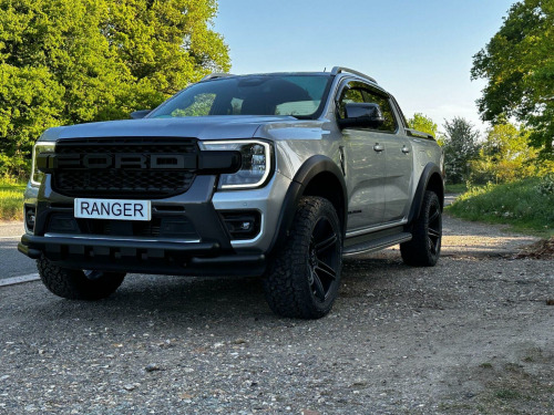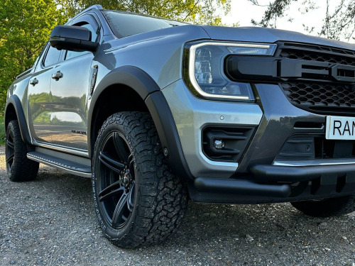 Tech Pack 68, Power Roller Shutter & Tow Bar. We specialise in bespoke Ford Rangers and this Ranger Wildtrak has a brand new raptor pack added as well as 20 alloys and brand new all terrain tyres. The factory spec incudes Tech Pack 68 (360 camera, Blind Spot Warning), power roller shutter and detachable tow bar. If we dont have exactly what you want then feel free to call and discuss your requirements, we can also put you touch with a number of finance providers. The brand new bespoke raptor upgrades include front raptor grill, 20 Alloys with brand new all terrain load rated tyres, wide wheel arch kit, lower front nudge bar, front light styling trim & tinted wind deflectors. The Ranger Wildtrak also has a great spec as standard and this includes Wildtrak embossed interior, large touch screen Sat Nav, Rear Camera, Front & Rear Parking Sensors. Adaptive Cruise Control, Heated Seats, Heated Steering Wheel. Electric adjustment on drivers seat. Media with DAB, Apple Car Play, Android Auto, Bluetooth streaming. Safety features include Lane keeping system, pre collision assist, cross traffic alert, reverse brake assist. This vehicle is equipped with the Ford Pass Connect, this allows you to track, start and monitor your Ranger from your phone. We specialise in Ford Ranger Custom Designs, please get in touch if you want to know what is coming into stock or want to be added to our email distribution list. The Balance of the three year Ford Manufactures Warranty remains.