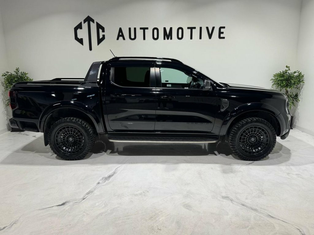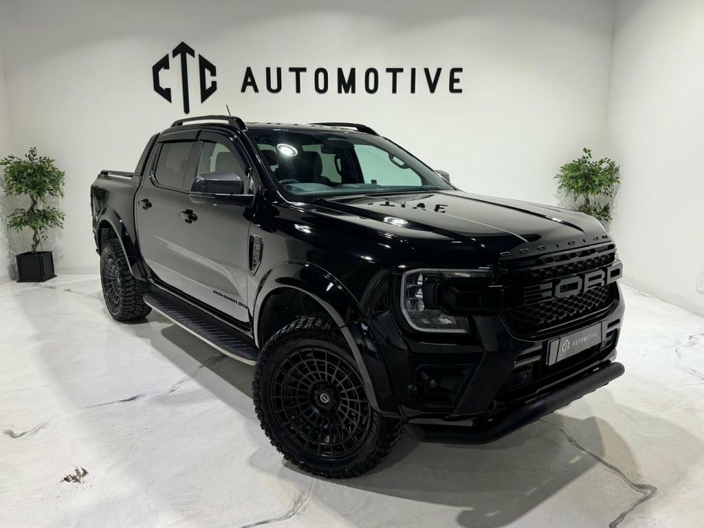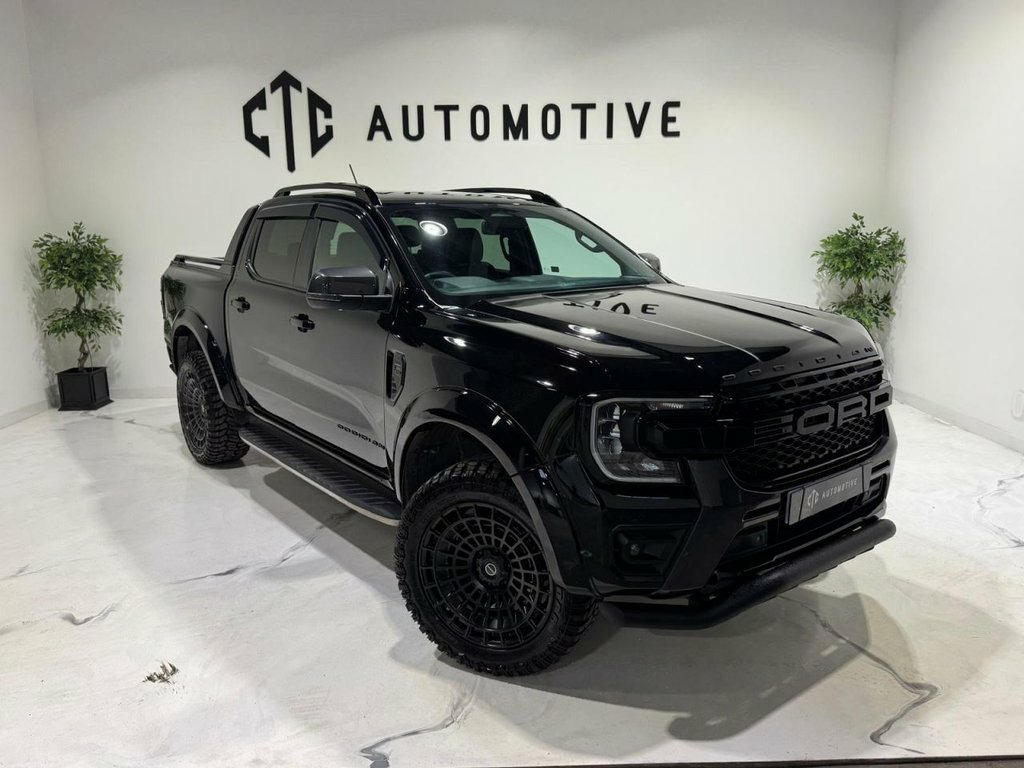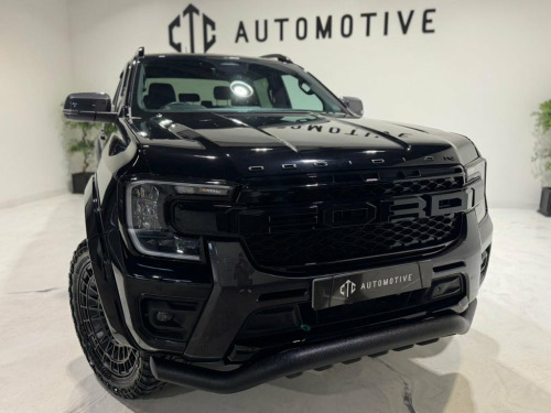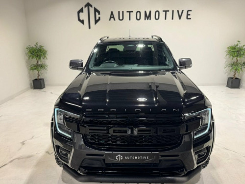 CTC Automotive are delighted to present Fresh off production for sale this extremely rare, 2025 bespoke Obsidian Autoworks Ford Ranger — a striking new-shape example, finished in Black Mettalic and enhanced with a full Obsidian Styling Package. With just one owner from new and a full, up-to-date Ford main dealer service history, this vehicle has been meticulously cared for and custom-built to turn heads while maintaining rugged practicality. Obsidian Autoworks Exterior Styling Includes: 20" Gloss Black Obsidian Alloy Wheels with All-Terrain Radar Tyres Extreme Wide Arch Kit Aggressive Front Lower Spoiler Bar Full Exterior Black Pack: Matte Black Side Steps Matte Black Roof Rails Matte Black Rear Sports Bar Rails Matte Black Front Bumper Panels Gloss Black LED Front Grille Gloss Black Headlight & Taillight Surrounds Wind Deflectors Key Features & Factory Options: Factory Tow Pack with Towbar Reversing Camera with Front & Rear Parking Sensors Bluetooth Phone Connectivity with Music Streaming DAB Digital Radio Cruise Control Automatic Headlights & Rain-Sensing Wipers Power-Folding Wing Mirrors Heated Leather-Trimmed Seats 8-Way Power Adjustable Driver's Seat Leather-Wrapped Steering Wheel Rear Centre Armrest Multiple Power Outlets, including a 3-Pin Household Plug Socket This Obsidian Autoworks Ford Ranger offers the perfect combination of bold styling, everyday comfort, and off-road capability — a rare find for any enthusiast or commercial 12v Aux Power Point Plug Rear, 18in Alloy Wheels - A-S Tyres, 2 Remote Control Unit - Key Fobs, 360 Zone Lighting, ABS - Anti-Lock Braking System and ESP -, Accent Colour Exterior Mirror, Accent Colour Grille, Acoustic Laminated Windscreen, Assisted Conventional Tailgate, Body Protection Pack 2, Cargo Light, Child Proof Rear Door Locks, Console with Double Lid, Conventional Gearshift, Daytime Running Lamps, Decklid Handle - Self Coloured, Door Handles - Body Colour, Driver Assistance Package, Driver Sunvisor with Mirror, Drivers Airbag, Dual Power Heated Fold Back Mirrors with, E-Marked Glass, EPAS - Electric Power Assisted Steering, Ebony Headliner, Electric Rear Window Defroster, Electric