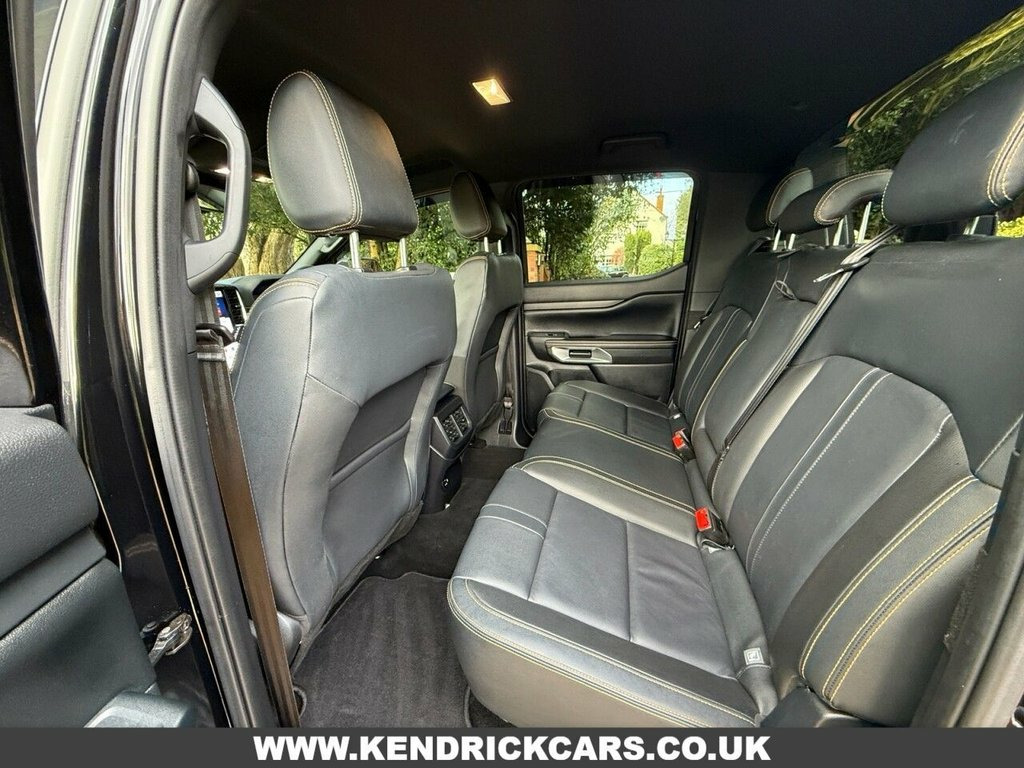 ( FULL OBSIDIAN WIDE TRACK UPGARDE ) This 2023 73 Plate Ford Ranger TD Wildtrak presents an exceptional ownership proposition with its remarkably low mileage of just 11,000 miles, a testament to its single owner. This Four Wheel Drive model, powered by a 2.0L Diesel Engine and meeting Euro 6 emissions standards, boasts a clear vehicle history check and an MOT valid until December 2026, offering peace of mind. Notable features include a Trailer Tow Prep Pack with a towbar, a Front Seat Pack 7 with heated seats for enhanced comfort, and Passive Keyless Entry and Start for effortless access. The Electronic Automatic Air Conditioning ensures a pleasant cabin environment regardless of the weather. The Wildtrak trim level signifies a higher specification, indicating this Ranger offers more than standard models. The inclusion of the Trailer Tow Class 1 with a towbar, alongside the Trailer Tow Prep Pack, makes it particularly well suited for towing needs. The convenience of keyless entry and start, combined with the comfort of heated front seats and climate control, further elevates the driving experience. This Ford Ranger is a well maintained and thoughtfully equipped vehicle, ready for its next adventure. 20in Alloy Wheels - A-S Tyres, Manual Roller Shutter, 12v Aux Power Point Plug Rear, 18in Alloy Wheels - A-S Tyres, 2 Remote Control Unit - Key Fobs, 360 Zone Lighting, ABS - Anti-Lock Braking System and ESP -, Accent Colour Exterior Mirror, Accent Colour Grille, Acoustic Laminated Windscreen, Assisted Conventional Tailgate, Body Protection Pack 2, Cargo Light, Child Proof Rear Door Locks, Console with Double Lid, Conventional Gearshift, Daytime Running Lamps, Decklid Handle - Self Coloured, Door Handles - Body Colour, Driver Assistance Package, Driver Sunvisor with Mirror, Drivers Airbag, Dual Power Heated Fold Back Mirrors with, E-Marked Glass, EPAS - Electric Power Assisted Steering, Ebon