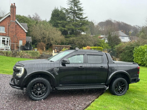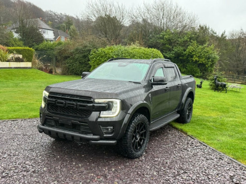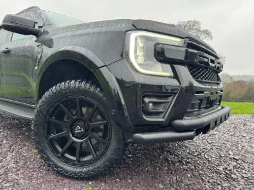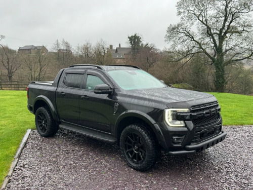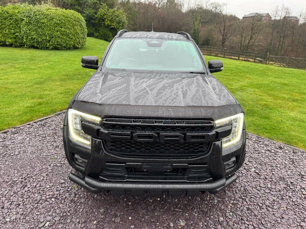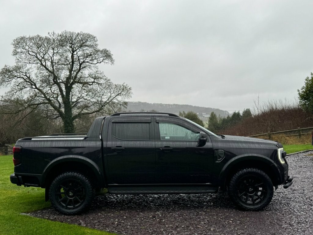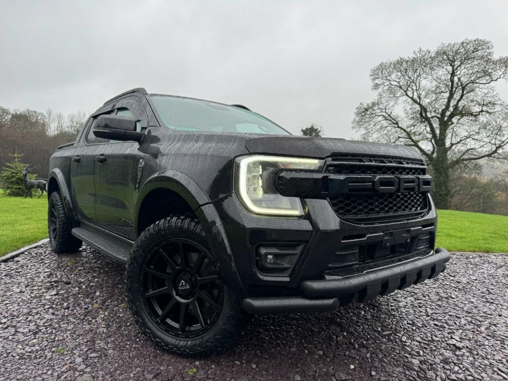 FORD RANGER WILDTRAK PICK UP FINISHED IN AGATE BLACK (£720), Black micro rib embossed leather seats with contrasting stitching, Raptor wide arch kit, Raptor style grill, Roof LED light pod, 20" Ridge alloys in Satin black with off road all terain aggressive radar renegades, Double Bull Bar, Full Blackout wrap on all silver and grey accents, Navigation system, Bluetooth phone connectivity, DAB digital radio, Heated seats, Heated steering wheel, Virtual cockpit, Rear view camera, Front and rear parking sensors, Air conditioning, Load liner, Powered roller shutter (£2160), Privacy glass, Wind deflectors, Bonnet deflector, Load box bed liner, Apple car play, LED headlights and rear light, with LED daytime running lights. Agate Black, Powered Roller Shutter