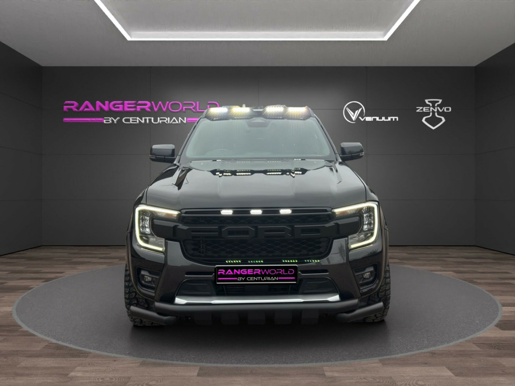 WELCOME TO RANGER WORLD, WE HAVE THE LARGEST STOCK OF BESPOKE BUILD RANGERS IN THE UK PART EXCHANGE & FINANCE AVAILABLE (REPRESENTATIVE 9.9% APR) WE ARE A CREDIT BROKER NOT A LENDERTO VIEW PLEASE CALL AS WE ARE STRICTLY BY APPOINTMENT ONLY. THIS ENABLES US TO GIVE YOU OUR UNDIVIDED ATTENTION. OUR STOCK CHANGES DAILY SO PLEASE CONFIRM WITH US THIS VEHICLE IS STILL AVAILABLE. ALL WRAPS AND SPORTBACK CANOPY IN THE PHOTOS ARE EXTRA-COST OPTIONSINCLUDED IN THE PRICE IS THE FOLLOWING SPEC.1: 20” Upgrade wheels and tyres… 4 STYLES AVAILABLE2: CENTURIAN edition Wide Bodykit.3: RW Front Grill.4: Front Bonnet Apron5: Bonnet Scoop.6: Roof light bar.7: Bonnet Scoop.8: Front City Bar.9: black brake calipers.@ EXTRA COSTROLLER SHUTTERS £2500SPORT BACK/CANOPY £3000.BODYWRAP £3000At Ranger World, we take pride in offering a unique and personalised experience for enthusiasts of the iconic Ford Ranger and Mustangs. Specialising in these Icons means we go beyond the ordinary to deliver vehicles that reflect your style and preferences. Our vehicles are hand-built by our skilled team in Northamptonshire. Here at RANGER WORLD, we are a small passionate team dedicated to making purchasing your new car the best experience you will ever have! No sales staff just enthusiasts. Our unique and stunning showroom is nestled in 150 acres of beautiful Northamptonshire countryside. 1 mile from J12 of the A14….WANTED PLATINUM DERANGED RAPTER F150 KAHN REVERE GVE URBAN CINCH OVERFINCH VVS SEEKER DIRTY UNICORN AUTOLAB GC SHELBY RAPTOR FAIR PRICES PAID FOR THE RIGHT EXAMPLES! RANGER WORLD exercises all reasonable care and skill in providing you with spec check Data. All rights reserved. RANGER WORLD does not accept responsibility for errors, omissions, liability or loss suffered due to the use of spec check Data by any user or other party. spec check is a guide and all equipment should be physically verified, RANGER WORLD does not warrant any information provided as part of the spec check.. 12v Aux Power Point Plug Rear, 18in Alloy Wheels - A-S Tyres, 2 Remote Control Unit - Key Fobs, 360 Zone Lighting, ABS - Anti-Lock Braking System and ESP - Electronic Stability Programme Plus, Accent Colour Exterior Mirror, Accent Colour Grille, Acoustic Laminated Windscreen, Assisted Conventional Tailgate, Black Wheelip Moulding, Body Protection Pack 2, Cargo Light, Child Proof Rear Door Locks, Console with Double Lid, Conventional Gearshift, Daytime Running Lamps, Decklid Handle - Self Coloured, Door Handles - Body Colour, Driver Assistance Package, Driver Sunvisor with Mirror, Drivers Airbag, Dual Power Heated Fold Back Mirrors with Puddle Lamps, E-Marked Glass, EPAS - Electric Power Assisted Steering, Ebony Headliner, Electric Rear Window Defroster, Electric Windshield Defroster, Electrochromic Inside Mirror, Electronic Automatic Air Conditioning, Electronic Parking Brake, Feature Pack B, Floor Covering - Vinyl, Fog Lamp Bezels, Fresh Air Heater, Front Bumper Accent Colour, Front Headlamp Leveling, Front Seat Pack 7, Front Splash Guard, Front Towing Hooks, Fuel Tank Guard, Functional Upgrade Pack 3, Glovebox Lights, Grab Handle - Roof Mounted Passenger Side, Heated Steering Wheel, Heavy Duty Terrain Pack, High Mounted Stop Lamp, ICE Feature Pack 102, Ice Warning, Inside Door Handles - MIC, Interior Ambient LED Lighting, Interior Trim Pack 13, LED Front Fog Lamps, Less Load Rest, Less Outside Tie Down Hooks, Level 2 Headlamp, Load Rest, Locking Glovebox Lid, Locking Wheel Lug Nut, Manual Liftgate, Metal Underbody Protection, Narrow Bodyside Moulding - Insert, Non Locking Capless Fuel Fill, Non Woven Carpet, Outside Thermometer, Overhead Console with Dome Lamps, Painted Front Fender Grill, Partial TFT-LCD Instrument Cluster, Passenger Airbag, Passenger Sunvisor with Mirror, Passive Keyless Entry and Start, Pickup Side Rails, Plastic Cab Roll Over Bar, Pollen Filter, Power Door Deadlocks - Double Locking, Power Rear Windows, Power Tailgate Lock, Power Windows Front with One-Touch Up and Down, Premium Air Register, Premium Front Floor Mats, Premium Rear Floor Mats, Privacy Glass, Pull Out Cup Holder, Rain Sensitive Windshield Wipers, Rear Bumper Accent Colour, Rear Bumper Extension, Rear Bumper Step - Integrated Rear Box Step, Rear Floor Ducts, Rear Fog Lamps, Rear Seat Pack 15, Rear Seatbelt Pre-Tensioner, Rear Splash Guards, Remote Starter, Roof Rails, Roof Storage for Driver Sunglasses, Silver Matte Step Bar, Soft Ride Suspension, Spare Tyre Lock, Standard Green Glass Windscreen, Steering Wheel - Multimedia Controls, Tachograph Prep Pack, Taillamps - Level 1, Technology Pack 20, Thatcham Alarm, Thatcham Security System, Tie Down Rail with Rope Hooks, Trailer Tow Class 1, Tyre Pressure Sensors, Under Hood Engine Cover, Washer Tank Level Warning Lamp, Load Box Bedliner, Micro Rib Embossed Leather - Black.