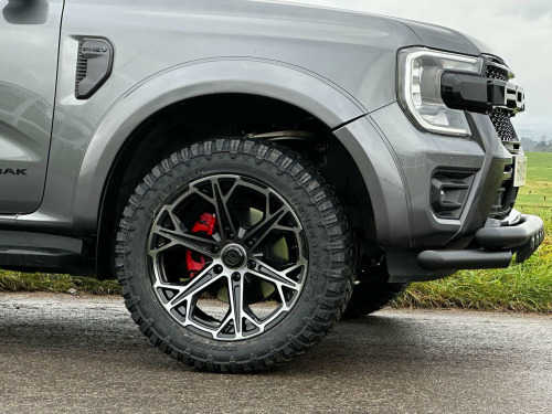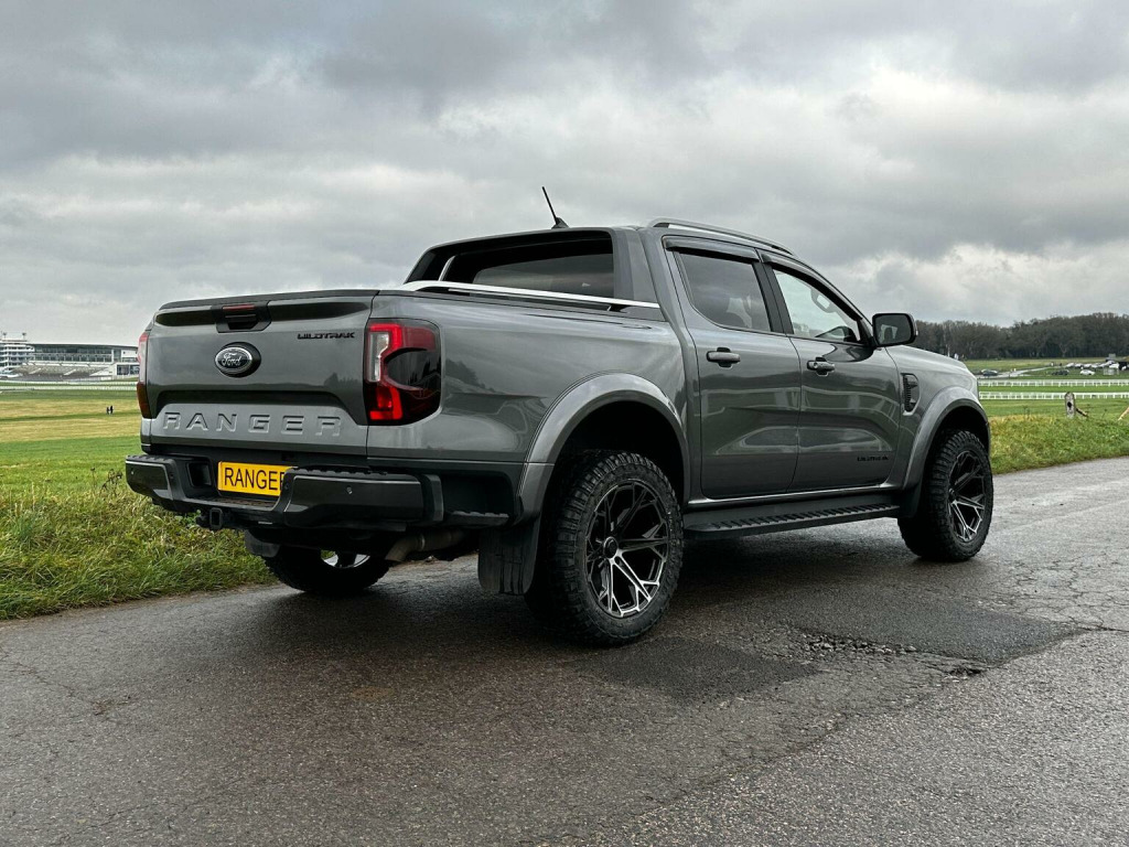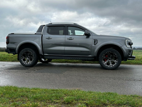 Tech Pack 52, Power Roller Shutter & Tow Bar. We specialise in bespoke Ford Rangers and this Ranger Wildtrak PHEV has a brand new raptor pack added as well as 20 alloys and brand new all terrain tyres. The factory spec incudes Tech Pack 52 (Blind Spot Warning), power roller shutter and detachable tow bar. If we dont have exactly what you want then feel free to call and discuss your requirements, we can also put you touch with a number of finance providers. The brand new bespoke raptor upgrades include front raptor grill, 20 Alloys with brand new all terrain load rated tyres, wide wheel arch kit, black out lower front bumper, lower front nudge bar & tinted wind deflectors. The Ranger Wildtrak also has a great spec as standard and this includes Wildtrak embossed interior, large touch screen Sat Nav, mobile phone charge pad, Rear Camera, Front & Rear Parking Sensors. Adaptive Cruise Control, Heated Seats, Heated Steering Wheel. Electric adjustment on drivers seat. Media with DAB, Apple Car Play, Android Auto, Bluetooth streaming. Safety features include Lane keeping system, pre collision assist, cross traffic alert, reverse brake assist. This vehicle is equipped with the Ford Pass Connect, this allows you to track, start and monitor your Ranger from your phone. We specialise in Ford Ranger Custom Designs, please get in touch if you want to know what is coming into stock or want to be added to our email distribution list. The Balance of the three year Ford Manufactures Warranty remains.