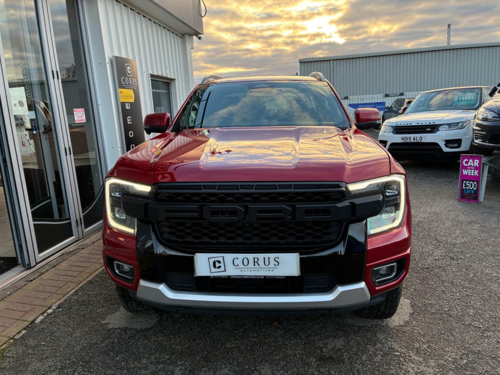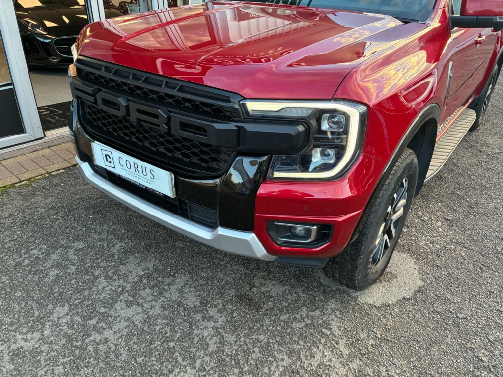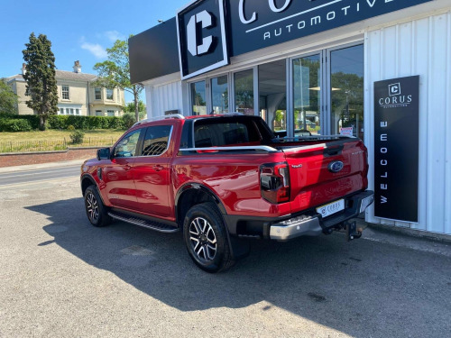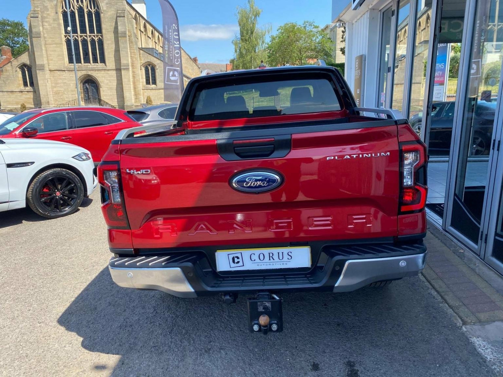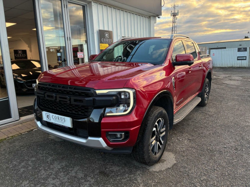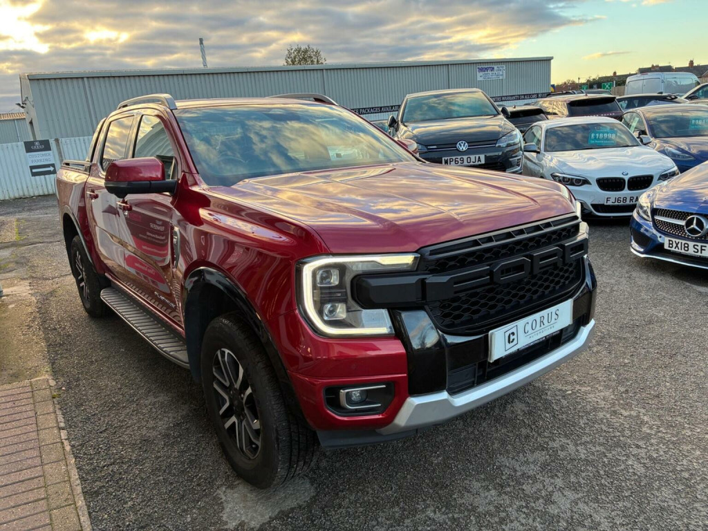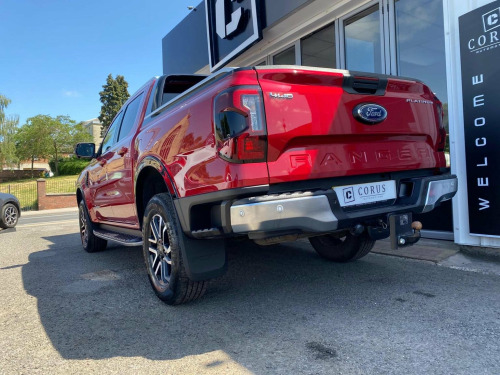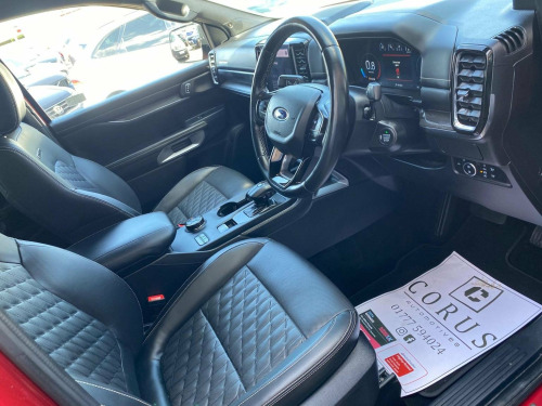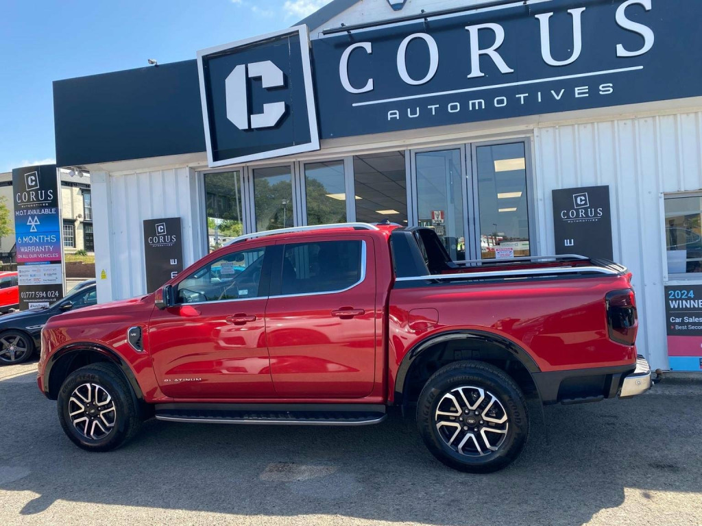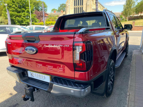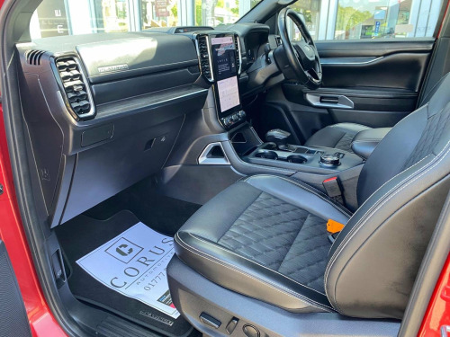 With only 16111 miles on the clock, this 2023 Ford Ranger is practically brand new. As a TD V6 Platinum derivative, this Ranger boasts a 3.0L diesel engine and four-wheel drive, making it a robust and reliable choice. It comes with a clear vehicle history check and has had only one owner. The Platinum trim includes the Technology Package 73, featuring Blind Spot Assistance, Adaptive Cruise Control, automatic headlights, and 360-degree camera with front and rear parking sensors, plus a tow bar. Enjoy the convenience of Passive Keyless Entry and Start, along with Power Pack 3, which includes wireless phone charging. The Front Seat Pack 16 offers heated seats with memory function. It also features Technology Package 72, which includes Blind Spot Assistance, Adaptive Cruise Control, automatic headlights, and 360-degree camera with front and rear parking sensors. This Euro 6 emission class vehicle is also equipped for heavy-duty tasks, with a towing weight of 3500 kg. The 237 bhp engine indicates that this vehicle offers more power than similar models, ensuring a responsive and capable driving experience. The Ford Ranger Platinum combines practicality with premium features, making it an excellent choice for those seeking a versatile and well-equipped vehicle.