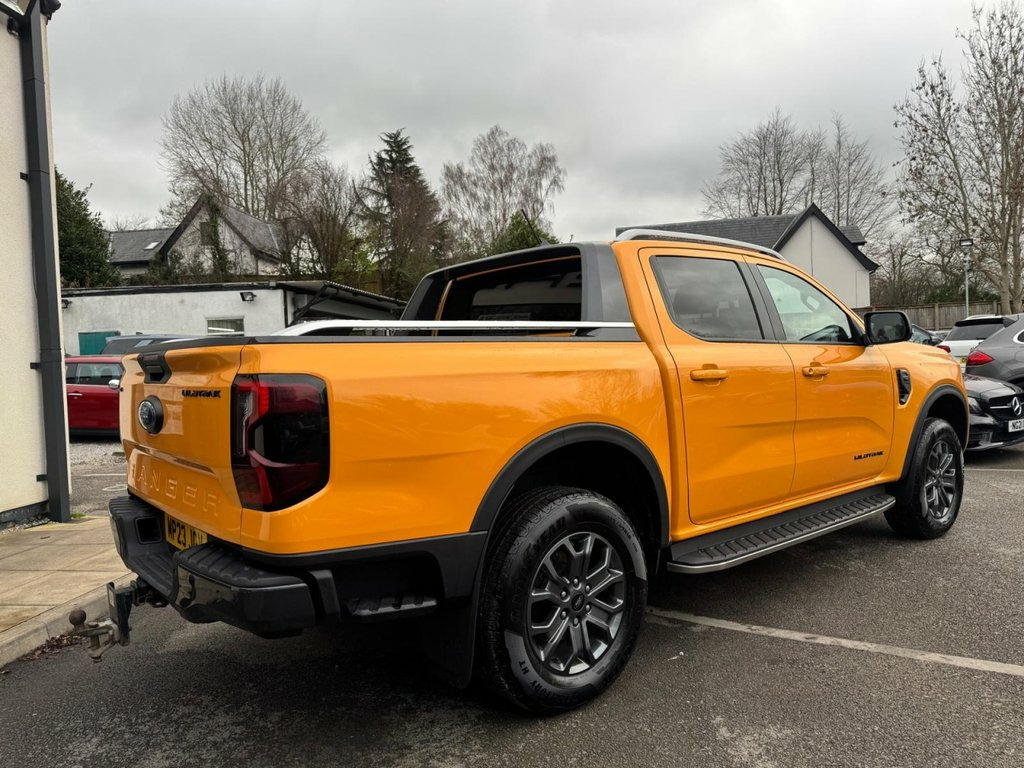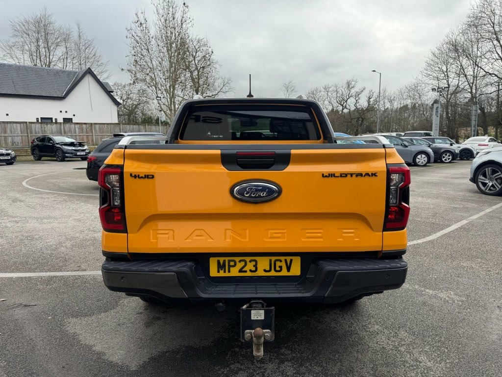 This 2023 Ford Ranger Wildtrak presents an exceptional ownership proposition with its remarkably low mileage of just 13,000 miles, having been cherished by only one owner. This Four Wheel Drive model is equipped with a robust 3.0L Diesel Engine and meets Euro 6 emission standards. It comes fitted with a Trailer Tow Prep Pack, including a towbar and Trailer Tow Class 1, making it ready for your towing needs. Comfort is enhanced with a heated steering wheel, and convenience is assured with passive keyless entry and start. The Technology Pack 50 further elevates this Ranger Wildtrak, featuring Adaptive Cruise Control for relaxed journeys, Blind Spot Assistance for added safety, and automatic headlights. Parking is made simpler with front and rear parking sensors, complemented by a rear camera. These carefully selected features, combined with its low mileage and single owner history, demonstrate that this particular Ford Ranger Wildtrak offers a superior experience compared to other vehicles of its kind. 12v Aux Power Point Plug Rear, 18in Alloy Wheels - A-S Tyres, 2 Remote Control Unit - Key Fobs, 360 Zone Lighting, ABS - Anti-Lock Braking System and Elect, Accent Colour Exterior Mirror, Accent Colour Grille, Acoustic Laminated Windscreen, Active Grille Shutter, Assisted Conventional Tailgate, Body Protection Pack 2, Cargo Light, Child Proof Rear Door Locks, Console with Double Lid, Conventional Gearshift, Cyber Orange, Daytime Running Lamps, Decklid Handle - Self Coloured, Door Handles - Body Colour, Driver Assistance Package, Driver Sunvisor with Mirror, Drivers Airbag, Dual Power Heated Fold Back Mirrors with, E-Marked Glass, Ebony Headliner, Electric Rear Window Defroster, Electric Wind