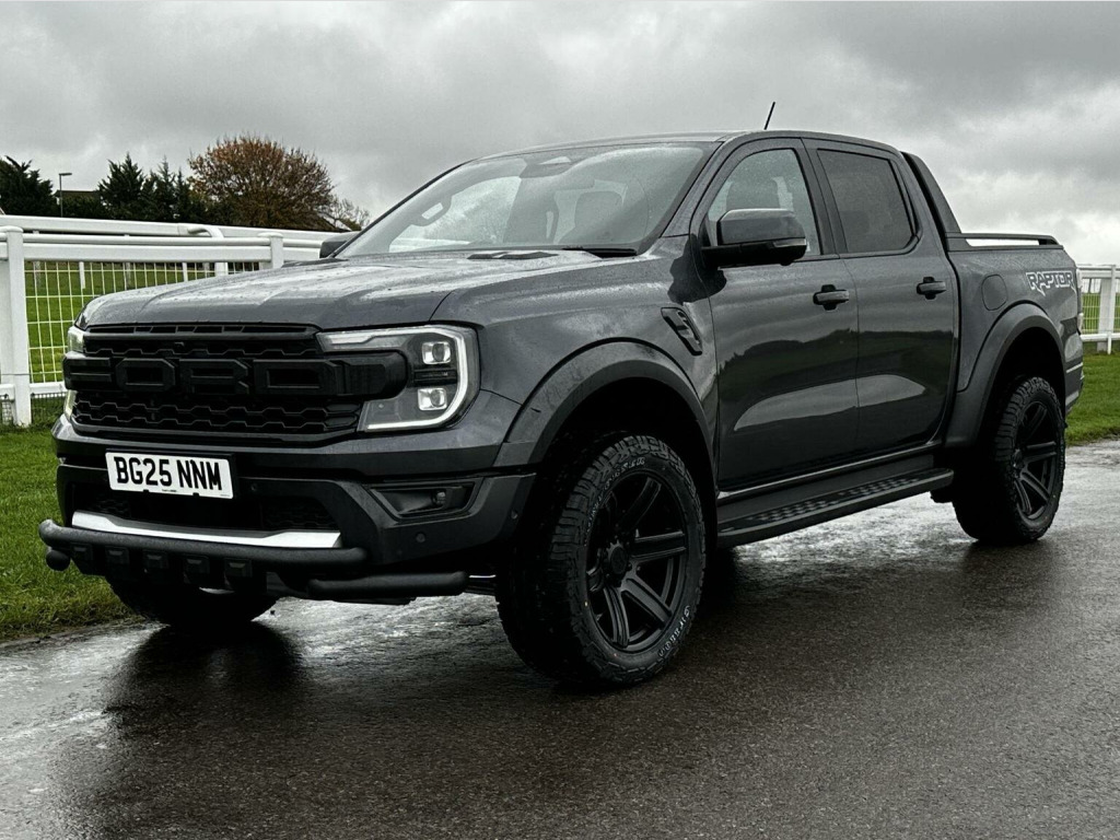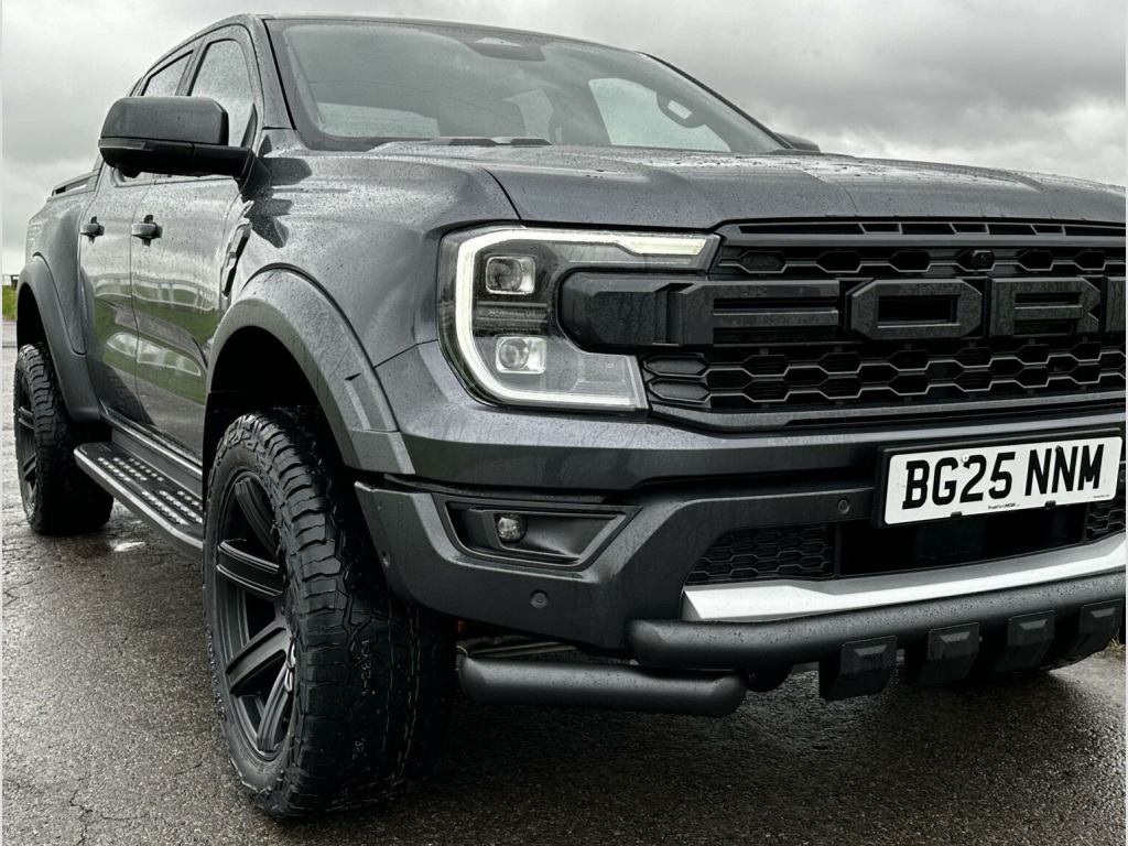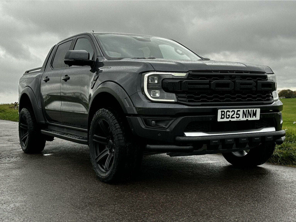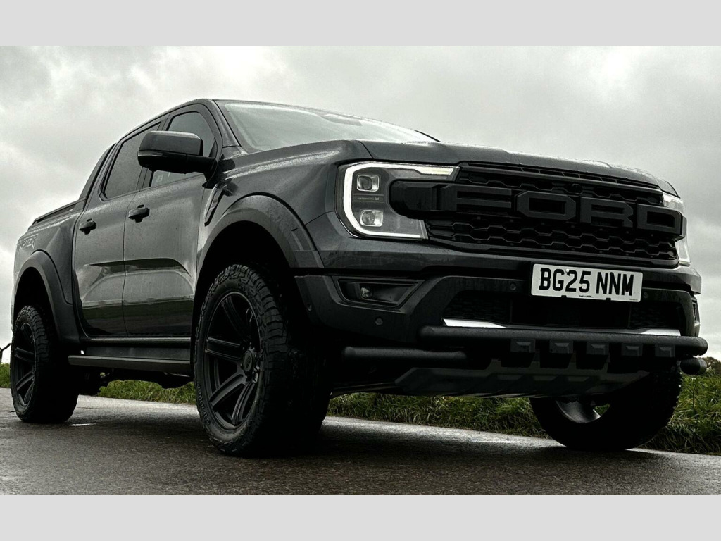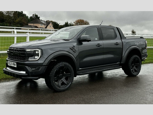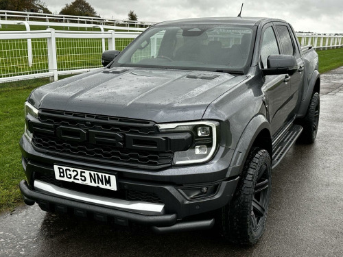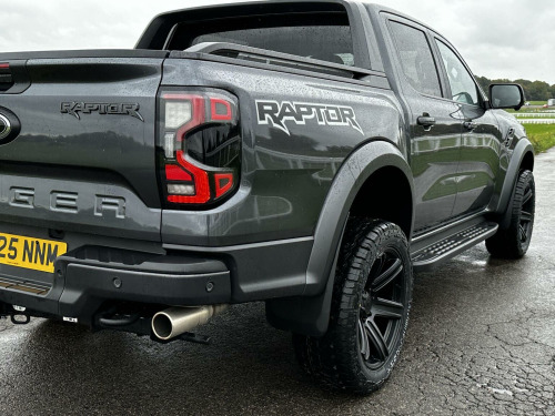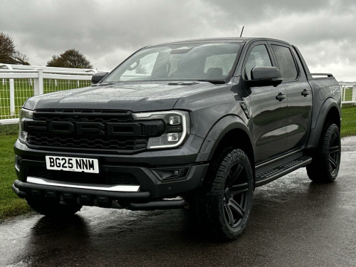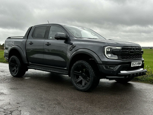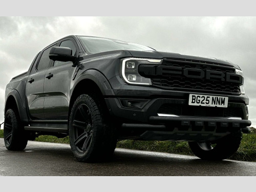 Low mileage 2025 plate with the Ford Factory Raptor Pack option which includes the power roller shutter. Enhanced with the 20 Alloys and new tyres and lower front nudge bar. This Raptor comes with a great spec list including B&O premium sound, wireless charge pad, reverse camera and 360 camera system. The power pack option gives 3 pin sockets in the centre console and load bay area and overhead auxiliary switch pack. Customisable exhaust, suspension and steering options (sport, normal and eco). Heated seats and steering wheel, electric driver and passenger seats. As a 3.0T V6 EcoBoost Raptor Auto 4WD Euro 6 (s/s) 4dr, this pickup truck is equipped with a powerful 3.0L Petrol Engine delivering an impressive 288 bhp. Its Four Wheel Drive system ensures capability in various conditions, and it meets Euro 6 emission standards. For enhanced practicality and safety, it comes fitted with a trailer tow pack and the Technology Package 73, which incorporates BLIS (Blind Spot Assistance), adaptive cruise control, automatic headlights, and 360 degree parking assistance with front and rear sensors.