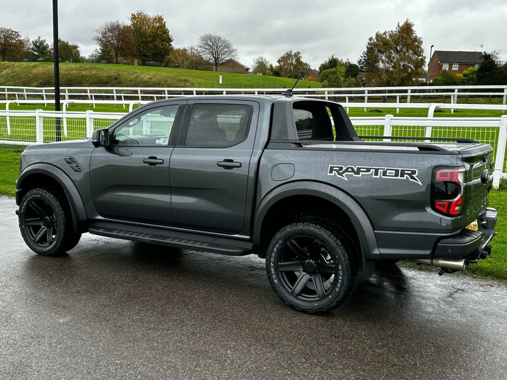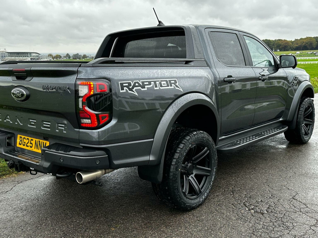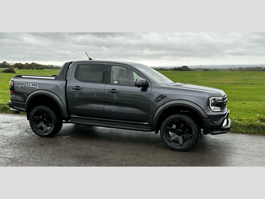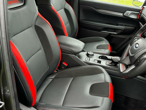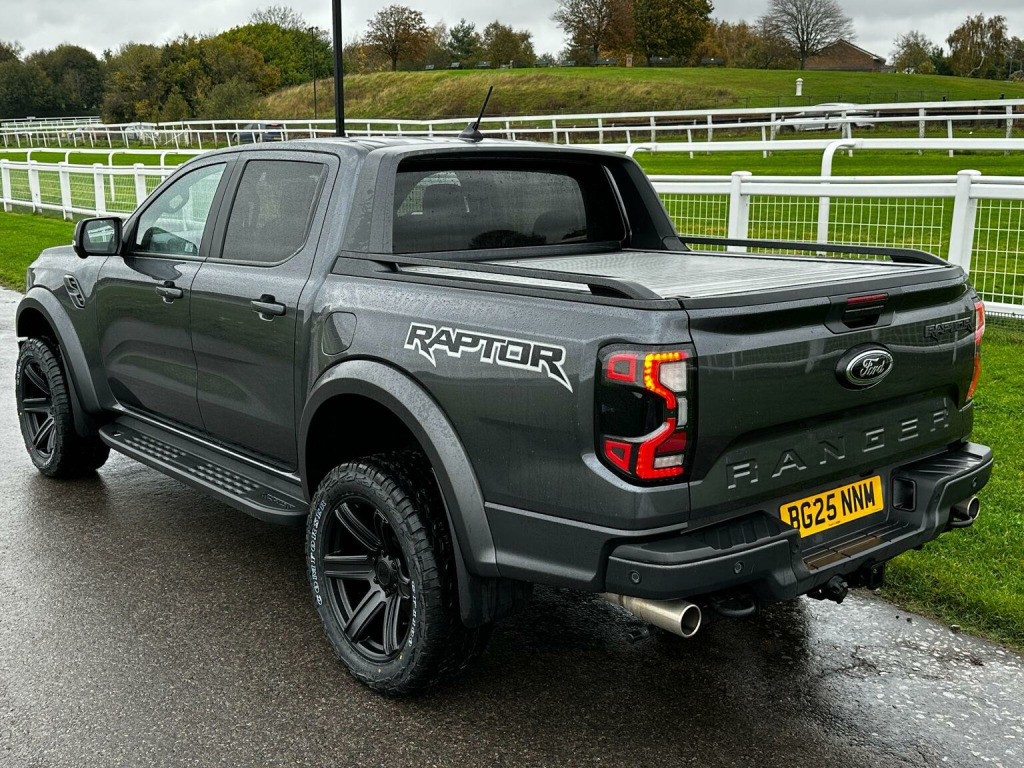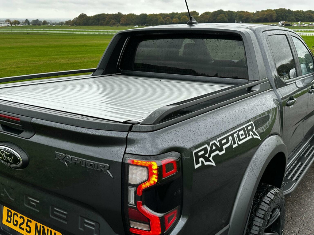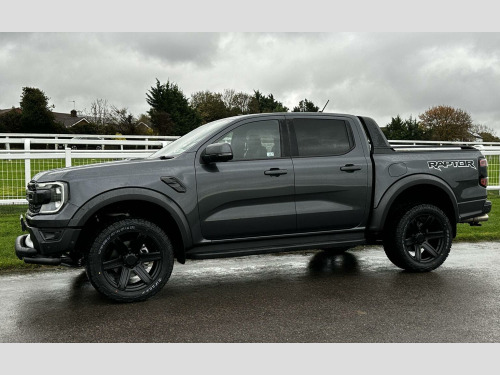 Low mileage 2025 plate with the Ford Factory Raptor Pack option which includes the power roller shutter. Enhanced with the 20 Alloys and new tyres and lower front nudge bar. This Raptor comes with a great spec list including B&O premium sound, wireless charge pad, reverse camera and 360 camera system. The power pack option gives 3 pin sockets in the centre console and load bay area and overhead auxiliary switch pack. Customisable exhaust, suspension and steering options (sport, normal and eco). Heated seats and steering wheel, electric driver and passenger seats. As a 3.0T V6 EcoBoost Raptor Auto 4WD Euro 6 (s/s) 4dr, this pickup truck is equipped with a powerful 3.0L Petrol Engine delivering an impressive 288 bhp. Its Four Wheel Drive system ensures capability in various conditions, and it meets Euro 6 emission standards. For enhanced practicality and safety, it comes fitted with a trailer tow pack and the Technology Package 73, which incorporates BLIS (Blind Spot Assistance), adaptive cruise control, automatic headlights, and 360 degree parking assistance with front and rear sensors.