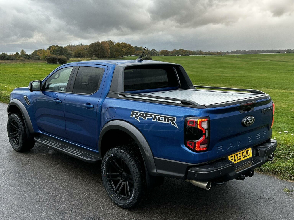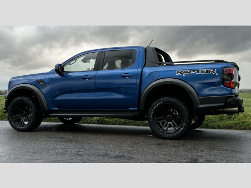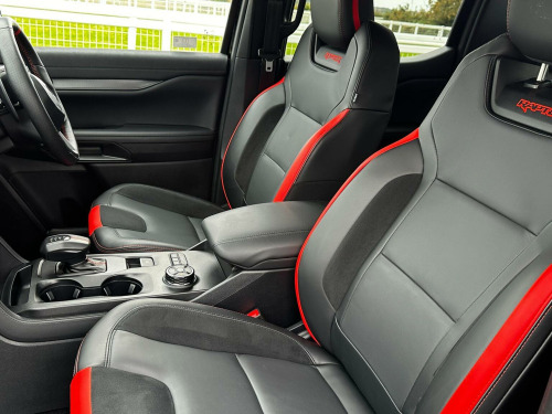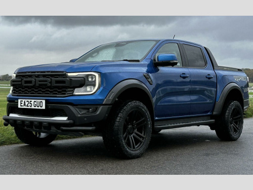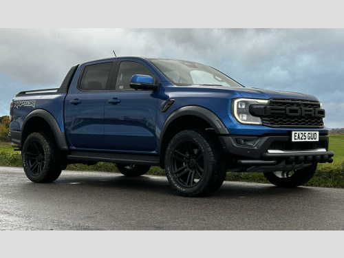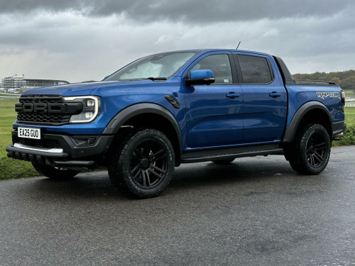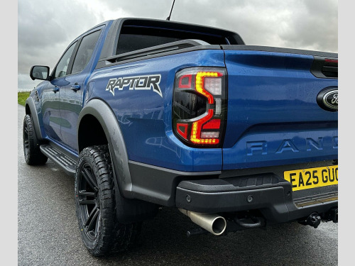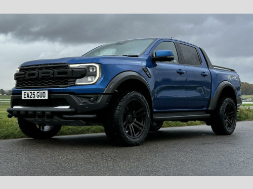 Low mileage 2025 plate with the Ford Factory Raptor Pack option which includes the power roller shutter and the roll bar. Enhanced with the 20 Alloys and new tyres and lower front nudge bar. Finance options available. This Raptor comes with a great spec list including B&O premium sound, wireless charge pad, reverse camera and 360 camera system. The power pack option gives 3 pin sockets in the centre console and load bay area and overhead auxiliary switch pack. Customisable exhaust, suspension and steering options (sport, normal and eco). Heated seats and steering wheel, electric driver and passenger seats. As a 3.0T V6 EcoBoost Raptor Auto 4WD Euro 6 (s/s) 4dr, this pickup truck is equipped with a powerful 3.0L Petrol Engine delivering an impressive 288 bhp. Its Four Wheel Drive system ensures capability in various conditions, and it meets Euro 6 emission standards. For enhanced practicality and safety, it comes fitted with a trailer tow pack and the Technology Package 73, which incorporates BLIS (Blind Spot Assistance), adaptive cruise control, automatic headlights, and 360 degree parking assistance with front and rear sensors.