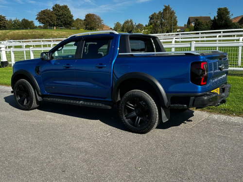 Tech Pack 68, Power Roller Shutter & Tow Bar. We specialise in bespoke Ford Rangers and this Ranger Wildtrak has a brand new raptor pack added as well as 20 alloys and brand new all terrain tyres. The factory spec incudes Tech Pack 68 (360 camera, Blind Spot Warning), power roller shutter and detachable tow bar. If we dont have exactly what you want then feel free to call and discuss your requirements, we can also put you touch with a number of finance providers. The brand new bespoke raptor upgrades include front raptor grill, 20 Alloys with brand new all terrain load rated tyres, wide wheel arch kit, lower front nudge bar & tinted wind deflectors. The Ranger Wildtrak also has a great spec as standard and this includes Wildtrak embossed interior, large touch screen Sat Nav, Rear Camera, Front & Rear Parking Sensors. Adaptive Cruise Control, Heated Seats, Heated Steering Wheel. Electric adjustment on drivers seat. Media with DAB, Apple Car Play, Android Auto, Bluetooth streaming. Safety features include Lane keeping system, pre collision assist, cross traffic alert, reverse brake assist. This vehicle is equipped with the Ford Pass Connect, this allows you to track, start and monitor your Ranger from your phone. We specialise in Ford Ranger Custom Designs, please get in touch if you want to know what is coming into stock or want to be added to our email distribution list. The Balance of the three year Ford Manufactures Warranty remains.