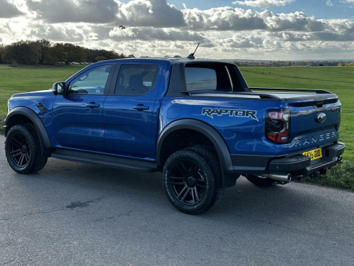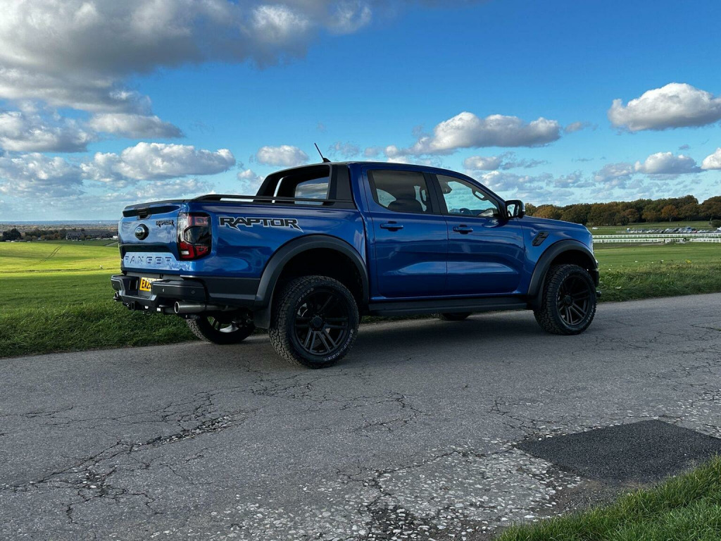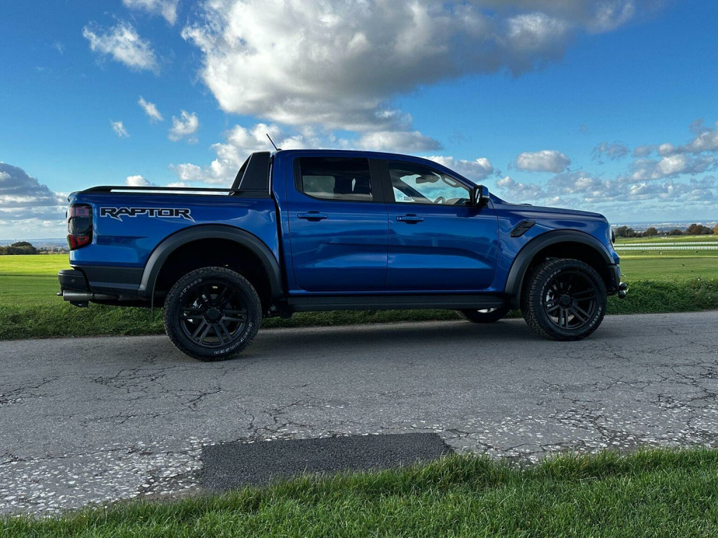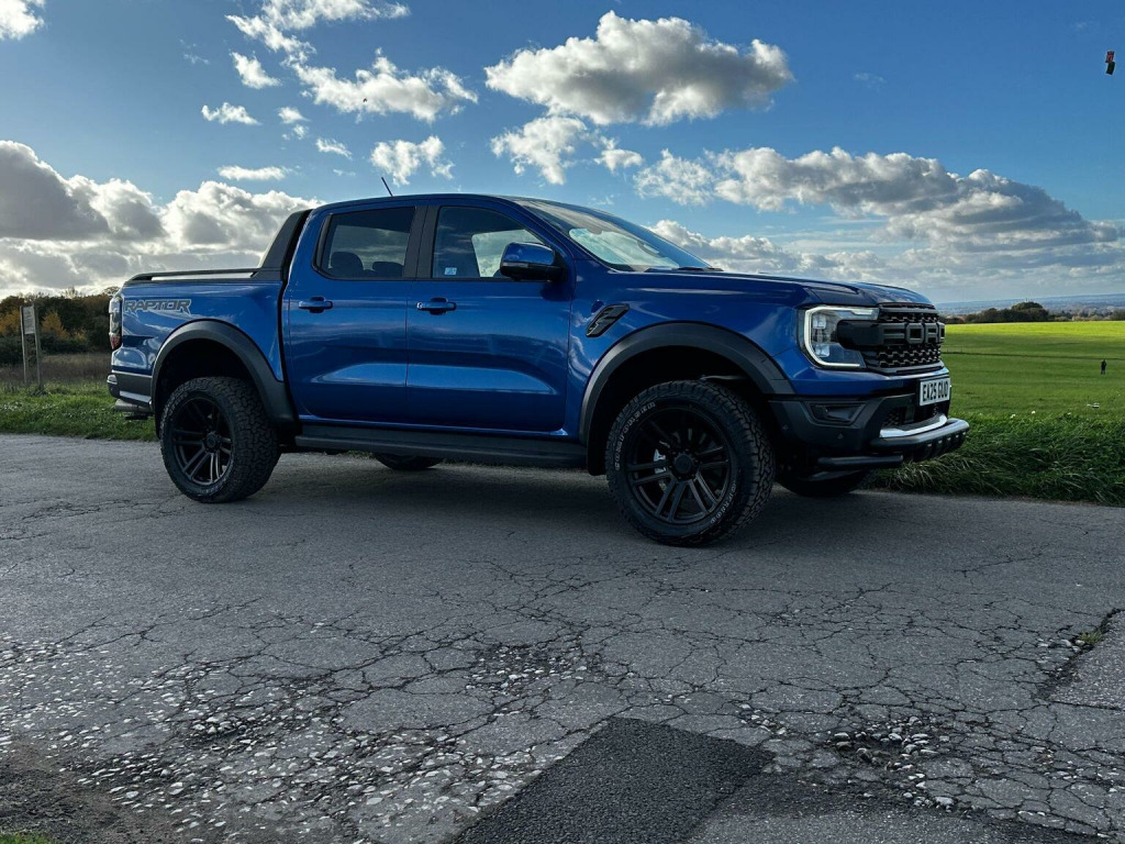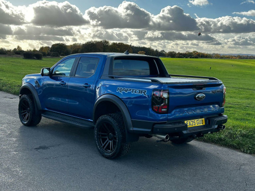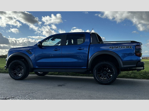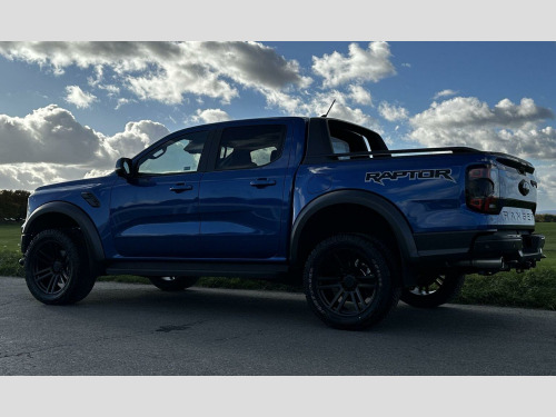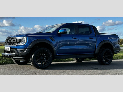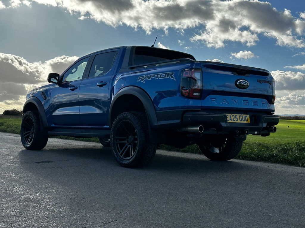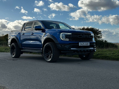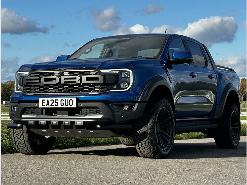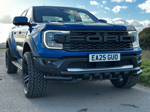 Low mileage 2025 plate with the Ford Factory Raptor Pack option which includes the power roller shutter and the roll bar. Enhanced with the 20 Alloys and new tyres and lower front nudge bar. This Raptor comes with a great spec list including B&O premium sound, wireless charge pad, reverse camera and 360 camera system. The power pack option gives 3 pin sockets in the centre console and load bay area and overhead auxiliary switch pack. Customisable exhaust, suspension and steering options (sport, normal and eco). Heated seats and steering wheel, electric driver and passenger seats. As a 3.0T V6 EcoBoost Raptor Auto 4WD Euro 6 (s/s) 4dr, this pickup truck is equipped with a powerful 3.0L Petrol Engine delivering an impressive 288 bhp. Its Four Wheel Drive system ensures capability in various conditions, and it meets Euro 6 emission standards. For enhanced practicality and safety, it comes fitted with a trailer tow pack and the Technology Package 73, which incorporates BLIS (Blind Spot Assistance), adaptive cruise control, automatic headlights, and 360 degree parking assistance with front and rear sensors.