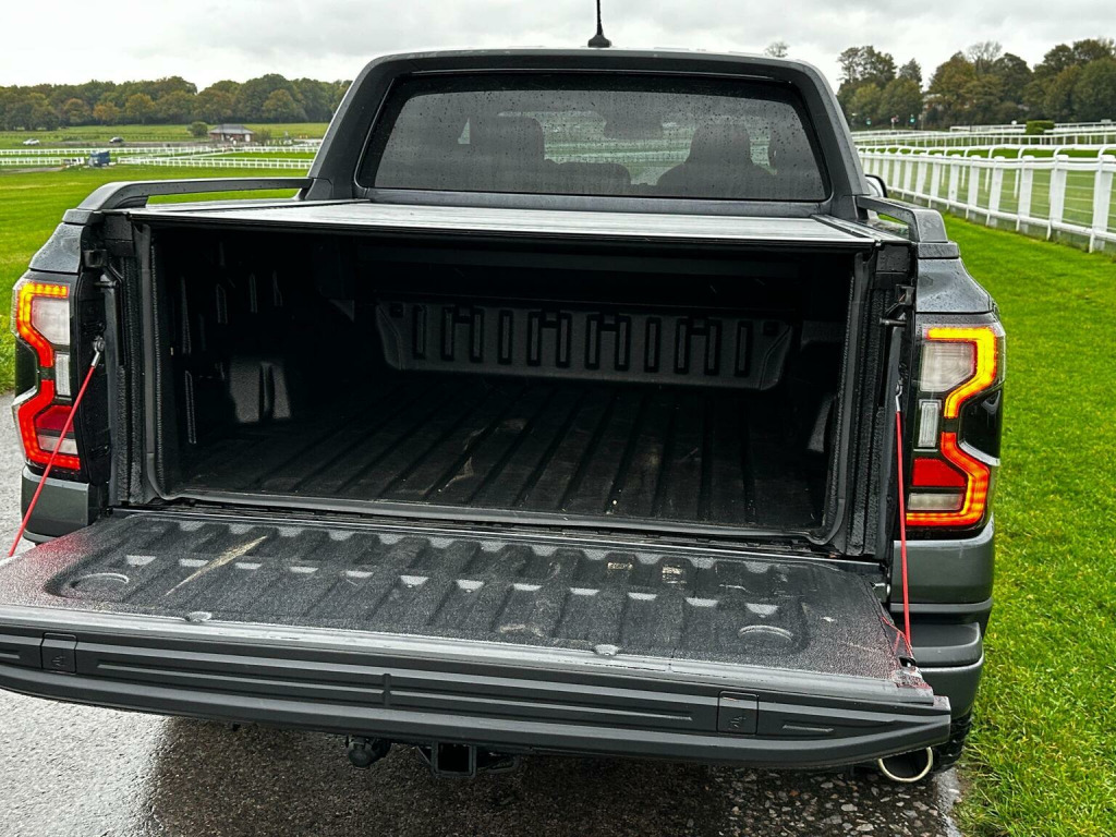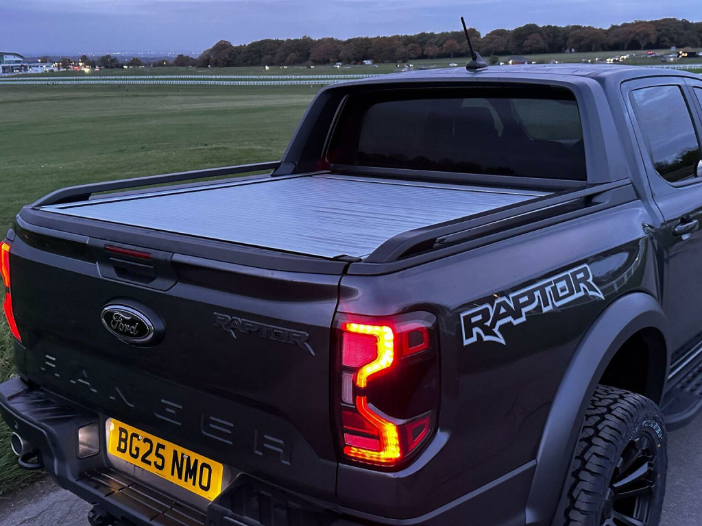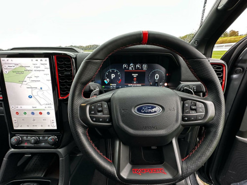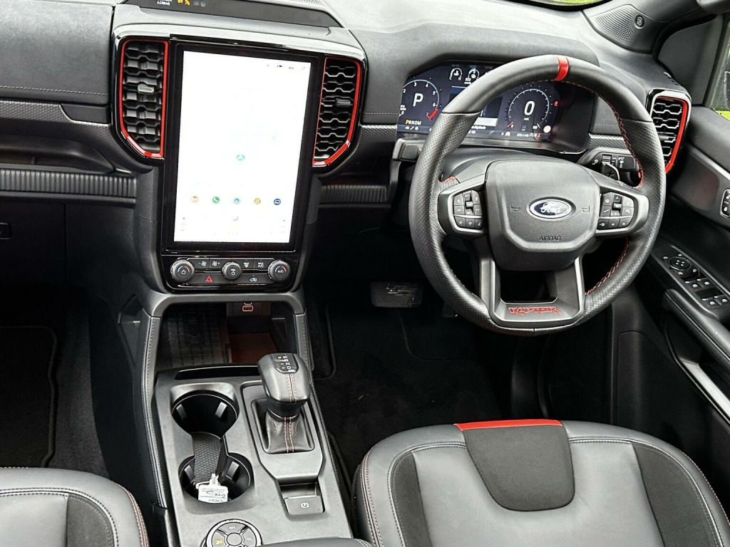 2025 plate with the Ford Factory Raptor Pack option which includes the power roller shutter. Enhanced with the 20 Alloys and new tyres and lower front nudge bar. As a 3.0T V6 EcoBoost Raptor Auto 4WD Euro 6 (s/s) 4dr, this pickup truck is equipped with a powerful 3.0L Petrol Engine delivering an impressive 288 bhp. Its Four Wheel Drive system ensures capability in various conditions, and it meets Euro 6 emission standards. Notable features include passive keyless entry and start, a heated steering wheel for comfort, and convenient wireless charging. , For enhanced practicality and safety, it comes fitted with a trailer tow pack and the Technology Package 73, which incorporates BLIS (Blind Spot Assistance), adaptive cruise control, automatic headlights, and 360 degree parking assistance with front and rear sensors.
