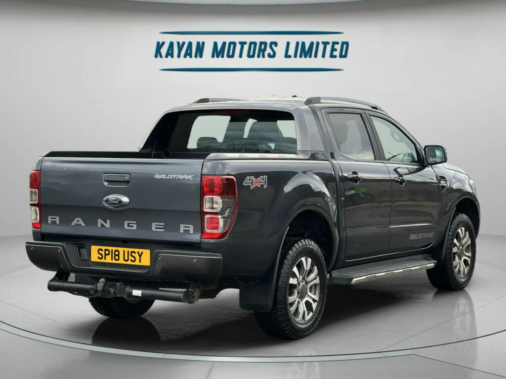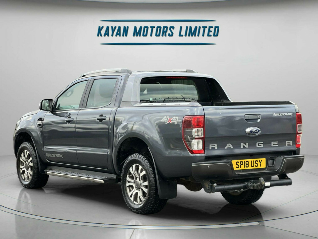 ------PART/EXCHANGE WELCOME. NATIONWIDE WIDE DELIVERY. -----,HPI CLEAR, ULEZ COMPLIANCE, FULL-SERVICE HISTORY, AND 1 YEAR FREE WARRANTY FOR YOUR PEACE OF MIND.=================This 2018 Ford Ranger Wildtrak boasts an impressive MOT valid until November 2026, giving you long-term peace of mind. This 3.2 TDCi Wildtrak 4WD, registered in 2018, features a robust 3.2-litre diesel engine and a capable Four-Wheel Drive system, ready for any challenge. With a substantial 3500 kg towing capacity, it is well equipped for heavy loads. The vehicle has a clear HPI report, and its most recent service was completed on 17 November 2025 at 45,710 miles. A 12-month warranty is also included for your assurance.To enhance your driving experience, this Ranger Wildtrak comes with a wide range of premium features, including Apple CarPlay, Heated Seats, Satellite Navigation, Reverse Camera, and many more. Automatic headlights and a gearshift indicator help optimize your drive, while rear parking sensors and the rear-view camera provide excellent parking assistance. Stay connected and entertained with Bluetooth audio streaming.These features, combined with its strong provenance and impressive capability, set this Ford Ranger apart from others in its class. in alloy wheels, 8in touchscreen colour display, abs - anti-lock braking system, aux audio input 3.5 mm jack, air conditioning - dual zone electronic automatic temperature control, airbags - curtain, airbags - drivers knee, airbags - front passenger, airbags - passenger deactivation, airbags - side thorax, automatic dimming rear view mirror, automatic rain sensing wipers, bedliner with protective side walls, bluetooth - audio streaming, bluetooth handsfree phone system, bumper - front body colour with sports highlighting, bumper - rear stepped steel - titanium, cbc - cornering brake control, coolbox in centre console, courtesy light - ice blue ambient interior light with dimming control, courtesy light - overhead with theatre-style dimming, courtesy lights with map reading lights, cruise control with adjustable speed limiter, dab digital radio, digital tachograph sensor port, door handles - black, door mirrors - puddle lights, door mirrors - titanium, door mirrors with integrated indicators, drivers airbag, drivers seat lumbar support, eba - emergency brake assist, epas - electric power assisted steering, esp - electronic stability programme, electric windows - front and rear with one touch drivers, electronic high and low range selection, emergency brake lights, engine drag control, engine immobiliser - passive anti-theft system, floor covering - carpeted, floor mats - premium carpet with wildtrak logo, ford easy-fuel capless refuelling system, ford sync2, front fog lights, front grille - titanium effect, gearshift indicator light, hla - hill launch assist, headlights - automatic, heated windscreen, hill descent control, isofix - child seat attachments, lac - load adaptive control, load box light, locking wheel nuts, mid-light tint on rear windows, mobile wifi hotspot capable, mudflaps - front, mudflaps - rear, overhead storage shelf, parking sensor - rear, pick up box - c channel cargo area management tie down system, pollen filter, power fold door mirrors, rom - roll over mitigation, radio cd player mp3 compatible, rear view camera, remote central locking, roof rails - aluminium finish, sd card reader and mini efp, satellite navigation - navigation center, seat belt reminder system - drivers and front passengers, seats - front 8-way power adjustment, seats - front heated, side steps - stainless steel, silver steel side bars, spare wheel lock, spare wheel with cover - alloy, speakers - x6, sports bar - aerodynamic, steering wheel - leather, steering wheel - multifunction, steering wheel - wildtrak stitching, sunglasses holder, sunvisors - illumination of driver and passenger, tmc - traffic message channel, thatcham category 1 alarm, traction control - tc, trailer sway control, trip computer, two 12v power socket, tyre pressure monitoring system, usb connection x2, voice control - audio, voice control - phone