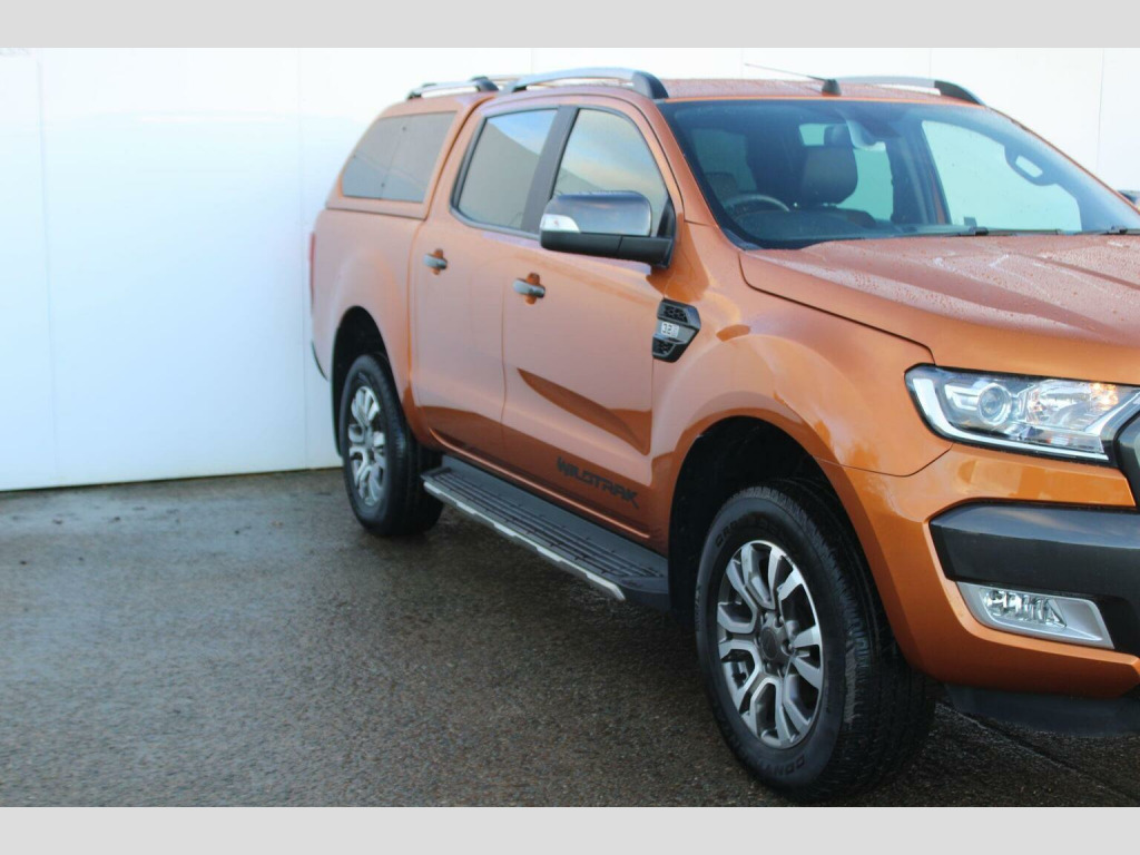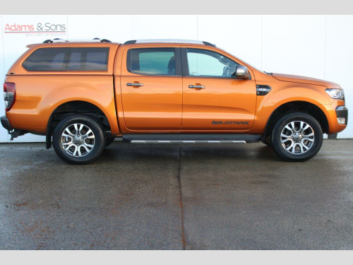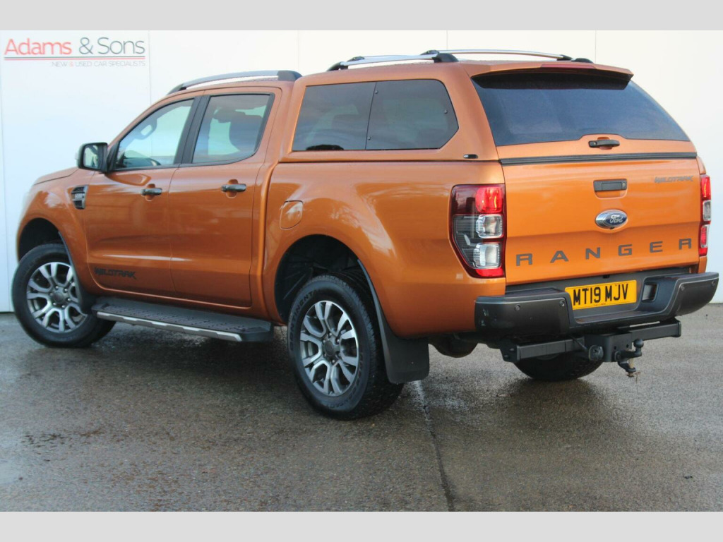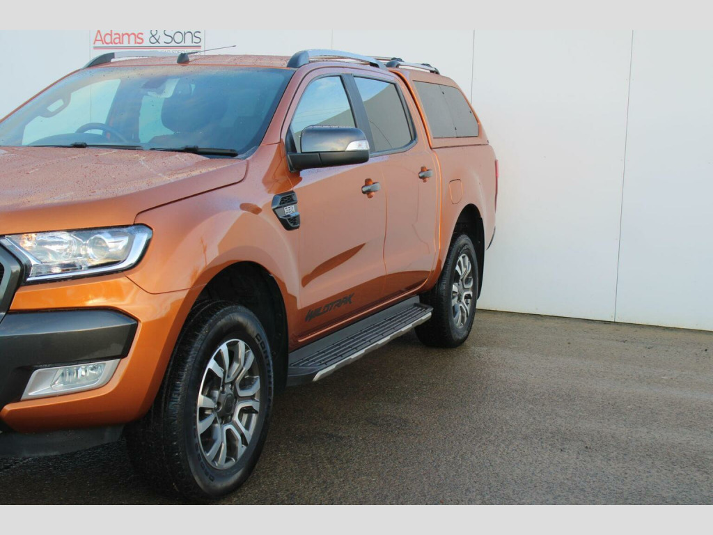 Adams & Sons are pleased to offer you this great condition throughout Ford Ranger 3.2 TD (5 cylinder) Double Cab Pickup 4WD in top spec Wildtrack Trim. This particular truck is finished in desirable Saber Orange against contrasting orange grey cloth/leather heated interior. This 2019 (19 plate) registered truck comes complete with two remote keys, book packs and a well documented service history as pictured. This Ranger has been evidently cared for that has not had a hard life like many out there. Wildtrack specification includes Satellite Navigation, DAB Radio, Media connectivity, rear parking camera with sensors, cruise control, auto lights/wipers, alloy wheels, heated front seats, electric drivers seat, front windscreen heating, and optional lockable back cover with towbar. Low rate HP funding plans available (subject to applicant). Here at Adams and sons we do not charge any dealer administration fees and pride ourselves on paramount customer service. All our cars are price checked daily to ensure you get the right car at the right price- Established business since 1932. Adams & Sons make every effort to ensure vehicle details on this listing are correct. However, the vehicle specifications can sometimes differ from that shown. Please satisfy yourself that a vehicle has a specific feature that is important to you before purchasing. Our staff will be happy to assist you.