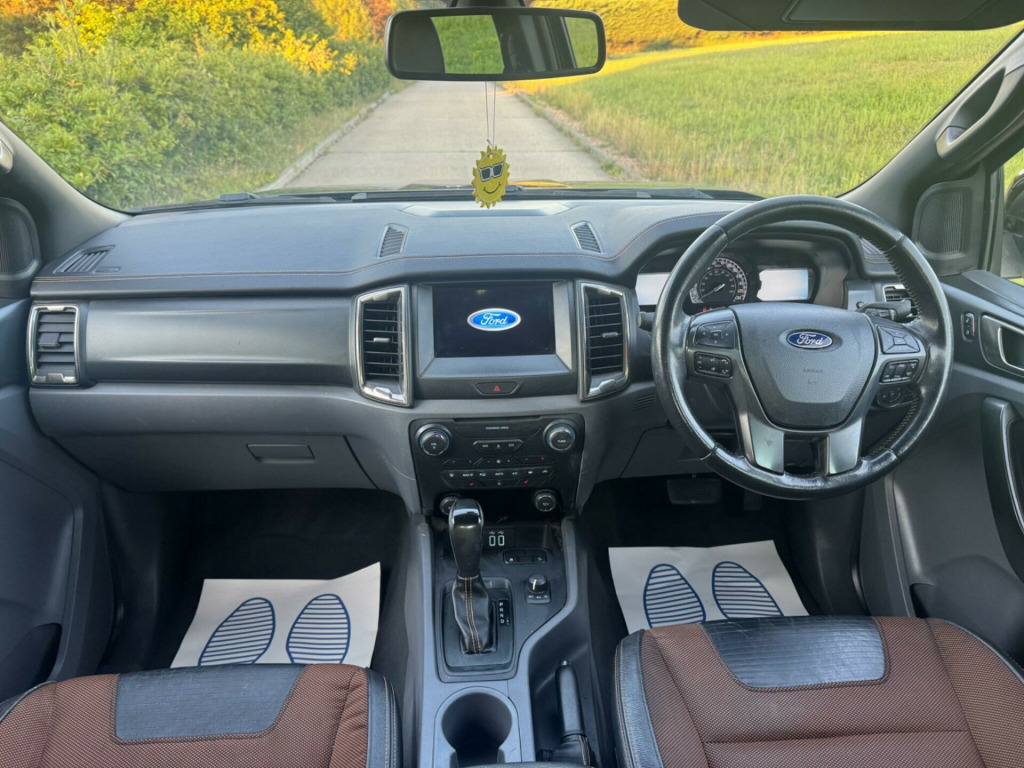NO VAT ,2 former keepers from new service history just been serviced touchscreen media player fully colour-coded privacy glass sidesteps roller shutter alloy wheels finished in gunmetal Grey metal diamond cut parking sensors plus reversing camera touchscreen satellite navigation electric heated seats multifunction steering wheel finished with Orange snitching Cobar Bluetooth phone DAB digital radio AUX USB mobile Wi-Fi hotspot capable air-conditioning DUAL zone mood lighting automatic headlights door mirror paddle lights HPI clear Finance available all debit and credit cards accepted part exchange welcome in alloy wheels, 8in touchscreen colour display, abs - anti-lock braking system, aux audio input 3.5 mm jack, air conditioning - dual zone electronic automatic temperature control, airbags - curtain, airbags - drivers knee, airbags - front passenger, airbags - passenger deactivation, airbags - side thorax, automatic dimming rear view mirror, automatic rain sensing wipers, bedliner with protective side walls, bluetooth - audio streaming, bluetooth handsfree phone system, bumper - front body colour with sports highlighting, bumper - rear stepped steel - titanium, cbc - cornering brake control, coolbox in centre console, courtesy light - ice blue ambient interior light with dimming control, courtesy light - overhead with theatre-style dimming, courtesy lights with map reading lights, cruise control with adjustable speed limiter, dab digital radio, digital tachograph sensor port, door handles - black, door mirrors - puddle lights, door mirrors - titanium, door mirrors with integrated indicators, drivers airbag, drivers seat lumbar support, eba - emergency brake assist, epas - electric power assisted steering, esp - electronic stability programme, electric windows - front and rear with one touch drivers, electronic high and low range selection, emergency brake lights, engine drag control, engine immobiliser - passive anti-theft system, floor covering - carpeted, floor mats - premium carpet with wildtrak logo, ford easy-fuel capless refuelling system, ford sync2, front fog lights, front grille - titanium effect, hla - hill launch assist, headlights - automatic, heated windscreen, hill descent control, isofix - child seat attachments, lac - load adaptive control, load box light, locking wheel nuts, mid-light tint on rear windows, mobile wifi hotspot capable, mudflaps - front, mudflaps - rear, overhead storage shelf, parking sensor - rear, pick up box - c channel cargo area management tie down system, pollen filter, power fold door mirrors, rom - roll over mitigation, radio cd player mp3 compatible, rear view camera, remote central locking, roof rails - aluminium finish, sd card reader and mini efp, satellite navigation - navigation center, seat belt reminder system - drivers and front passengers, seats - front 8-way power adjustment, seats - front heated, side steps - stainless steel, silver steel side bars, spare wheel lock, spare wheel with cover - alloy, speakers - x6, sports bar - aerodynamic, steering wheel - leather, steering wheel - multifunction, steering wheel - wildtrak stitching, sunglasses holder, sunvisors - illumination of driver and passenger, tmc - traffic message channel, thatcham category 1 alarm, traction control - tc, trailer sway control, trip computer, two 12v power socket, tyre pressure monitoring system, usb connection x2, voice control - audio, voice control - phone