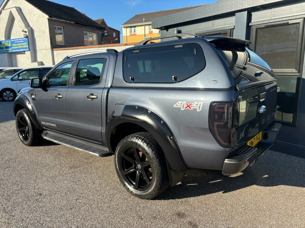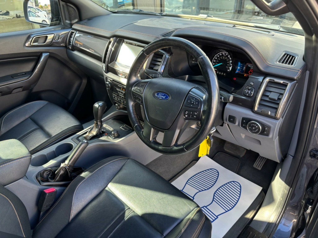STUNNING CONDITION THROUGHOUT AND DRIVES SUPERBLY. FULLY LOADED 'WILDTRAK' MODEL - THIS IS THE ULTIMATE RANGER 4X4! 56,000 Miles with Service History. Presented in Metallic Grey. Body Styling Features Include - Wide Arches, 20in Alloy Wheels (with Wheel Spacers), Front Spoiler Bar, Headlight Surrounds, Bonnet Guard and Tinted Rear Lights. Other Features Include 3 Way Opening Truckman Top, Touch Screen Satellite Navigation, Rear Camera, Air Conditioning, Full Leather Upholstery, Airbags, Child Isofix, Multifunction Leather Steering Wheel, Cruise Control, Heated Seats, Front and Rear Parking Sensors, USB and 12v Points, Electric Windows and Mirrors, ABS, Roof Bars, Side Steps, Metallic Paint, Rear Bodyliner ETC. Year's MOT Upon Purchase. MUST BE SEEN TO BE APPRECIATED!! ANY INSPECTION INVITED! Thanks for Looking. NO VAT, in alloy wheels, 8in touchscreen colour display, abs - anti-lock braking system, aux audio input 3.5 mm jack, air conditioning - dual zone electronic automatic temperature control, airbags - curtain, airbags - drivers knee, airbags - front passenger, airbags - passenger deactivation, airbags - side thorax, automatic dimming rear view mirror, automatic rain sensing wipers, bedliner with protective side walls, bluetooth - audio streaming, bluetooth handsfree phone system, bumper - front body colour with sports highlighting, bumper - rear stepped steel - titanium, cbc - cornering brake control, coolbox in centre console, courtesy light - ice blue ambient interior light with dimming control, courtesy light - overhead with theatre-style dimming, courtesy lights with map reading lights, cruise control with adjustable speed limiter, dab digital radio, digital tachograph sensor port, door handles - black, door mirrors - puddle lights, door mirrors - titanium, door mirrors with integrated indicators, drivers airbag, drivers seat lumbar support, eba - emergency brake assist, epas - electric power assisted steering, esp - electronic stability programme, electric windows - front and rear with one touch drivers, electronic high and low range selection, emergency brake lights, engine drag control, engine immobiliser - passive anti-theft system, floor covering - carpeted, floor mats - premium carpet with wildtrak logo, ford easy-fuel capless refuelling system, ford sync2, front fog lights, front grille - titanium effect, hla - hill launch assist, headlights - automatic, heated windscreen, hill descent control, isofix - child seat attachments, lac - load adaptive control, load box light, locking wheel nuts, mid-light tint on rear windows, mobile wifi hotspot capable, mudflaps - front, mudflaps - rear, overhead storage shelf, parking sensor - rear, pick up box - c channel cargo area management tie down system, pollen filter, power fold door mirrors, rom - roll over mitigation, radio cd player mp3 compatible, rear view camera, remote central locking, roof rails - aluminium finish, sd card reader and mini efp, satellite navigation - navigation center, seat belt reminder system - drivers and front passengers, seats - front 8-way power adjustment, seats - front heated, side steps - stainless steel, silver steel side bars, spare wheel lock, spare wheel with cover - alloy, speakers - x6, sports bar - aerodynamic, steering wheel - leather, steering wheel - multifunction, steering wheel - wildtrak stitching, sunglasses holder, sunvisors - illumination of driver and passenger, tmc - traffic message channel, thatcham category 1 alarm, traction control - tc, trailer sway control, trip computer, two 12v power socket, tyre pressure monitoring system, usb connection x2, voice control - audio, voice control - phone