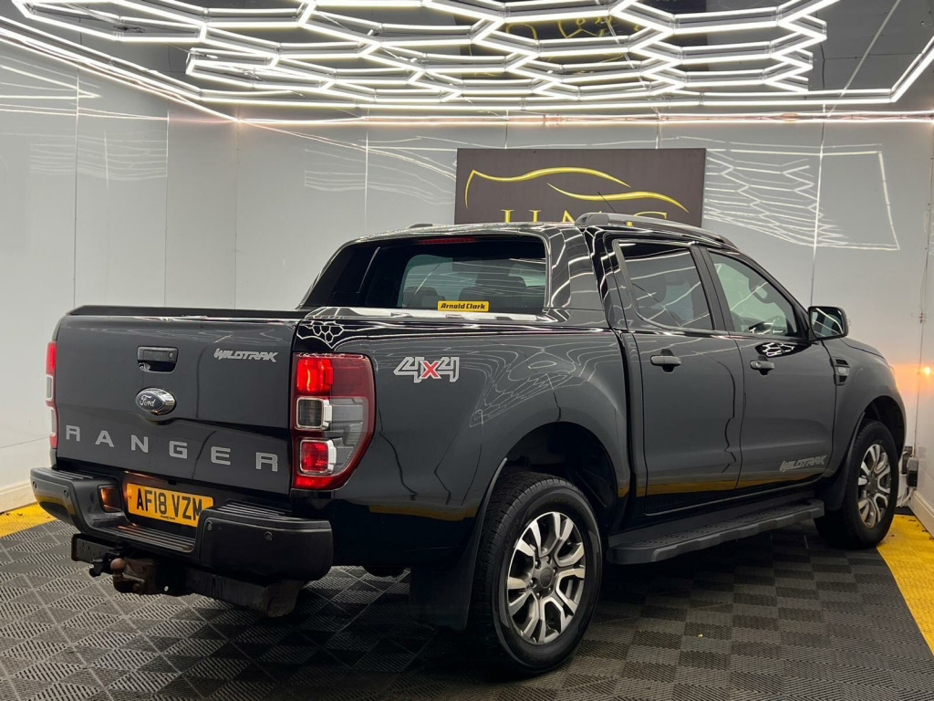 Discover this robust 2018 Ford Ranger 3.2 TDCi Wildtrak Auto 4WD, a capable vehicle ready for any challenge. This four wheel drive model boasts a powerful 3.2 litre diesel engine and a substantial towing weight of 3500 kg, making it ideal for demanding tasks. Inside, you'll find comfort and convenience with front heated seats, dual zone climate control, and a Bluetooth handsfree system for seamless connectivity. Automatic headlights and rear parking sensors add to the practicality and ease of use.The Wildtrak trim level signifies a higher standard, offering a superior experience compared to other similar vehicles. The inclusion of features like heated seats and dual zone automatic air conditioning ensures comfort in all conditions, while the advanced Bluetooth system keeps you connected on the go. The four wheel drive system and impressive towing capacity further highlight this Ranger's versatility and readiness for work or adventure.To add to your peace of mind, we offer a 3-month warranty, 12 months of AA Breakdown Cover, and a minimum 6 months of both MOT and service. Your satisfaction and the longevity of your investment are our top priorities.Explore financing options by contacting us at 07405357469. The financing package includes a 12-month AA Breakdown Cover, and while a minimum 6 months MOT is provided (though not applicable to all vehicles), please be aware that an admin charge may apply.Our commitment to customer satisfaction extends to flexible viewing hours until late, allowing you ample time to inspect and appreciate this vehicle. Additionally, we provide warranty and delivery options to cater to your preferences. If you have a vehicle for exchange, we are open to considering it.To ensure transparency and clarity, we encourage customers to verify the car's specifications, advert description, and mileage with our salesperson before finalizing the purchase. This ensures that your experience exceeds expectations, making it a truly enjoyable and worry-free journey. in alloy wheels, 8in touchscreen colour display, abs - anti-lock braking system, aux audio input 3.5 mm jack, air conditioning - dual zone electronic automatic temperature control, airbags - curtain, airbags - drivers knee, airbags - front passenger, airbags - passenger deactivation, airbags - side thorax, automatic dimming rear view mirror, automatic rain sensing wipers, bedliner with protective side walls, bluetooth - audio streaming, bluetooth handsfree phone system, bumper - front body colour with sports highlighting, bumper - rear stepped steel - titanium, cbc - cornering brake control, coolbox in centre console, courtesy light - ice blue ambient interior light with dimming control, courtesy light - overhead with theatre-style dimming, courtesy lights with map reading lights, cruise control with adjustable speed limiter, dab digital radio, digital tachograph sensor port, door handles - black, door mirrors - puddle lights, door mirrors - titanium, door mirrors with integrated indicators, drivers airbag, drivers seat lumbar support, eba - emergency brake assist, epas - electric power assisted steering, esp - electronic stability programme, electric windows - front and rear with one touch drivers, electronic high and low range selection, emergency brake lights, engine drag control, engine immobiliser - passive anti-theft system, floor covering - carpeted, floor mats - premium carpet with wildtrak logo, ford easy-fuel capless refuelling system, ford sync2, front fog lights, front grille - titanium effect, hla - hill launch assist, headlights - automatic, heated windscreen, hill descent control, isofix - child seat attachments, lac - load adaptive control, load box light, locking wheel nuts, mid-light tint on rear windows, mobile wifi hotspot capable, mudflaps - front, mudflaps - rear, overhead storage shelf, parking sensor - rear, pick up box - c channel cargo area management tie down system, pollen filter, power fold door mirrors, rom - roll over mitigation, radio cd player mp3 compatible, rear view camera, remote central locking, roof rails - aluminium finish, sd card reader and mini efp, satellite navigation - navigation center, seat belt reminder system - drivers and front passengers, seats - front 8-way power adjustment, seats - front heated, side steps - stainless steel, silver steel side bars, spare wheel lock, spare wheel with cover - alloy, speakers - x6, sports bar - aerodynamic, steering wheel - leather, steering wheel - multifunction, steering wheel - wildtrak stitching, sunglasses holder, sunvisors - illumination of driver and passenger, tmc - traffic message channel, thatcham category 1 alarm, traction control - tc, trailer sway control, trip computer, two 12v power socket, tyre pressure monitoring system, usb connection x2, voice control - audio, voice control - phone