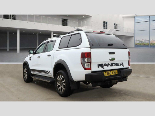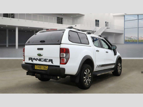 This 2018 Ford Ranger 3.2 TDCi Wildtrak Auto 4WD is presented with a clear vehicle history check, offering peace of mind for its next owner. This robust four wheel drive pickup is powered by a capable 3.2 litre diesel engine and features the desirable Wildtrak trim. For added convenience, it includes rear parking sensors, automatic headlights, and dual zone climate control. Comfort is further enhanced with heated front seats and a rear view camera to assist with parking manoeuvres.The Ranger Wildtrak is equipped to handle demanding tasks, boasting a substantial towing weight of 3500 kg. The inclusion of features such as the rear view camera and rear parking sensors demonstrates a higher level of specification compared to many similar vehicles, making parking and manoeuvring more straightforward. The dual zone automatic air conditioning ensures a comfortable cabin environment for all occupants, regardless of external conditions. ont parking sensors, cover - roll top lockable with tailgate security - roll cover, towbar - fixed, 18in alloy wheels, 8in touchscreen colour display, abs - anti-lock braking system, aux audio input 3.5 mm jack, air conditioning - dual zone electronic automatic temperature control, airbags - curtain, airbags - drivers knee, airbags - front passenger, airbags - passenger deactivation, airbags - side thorax, automatic dimming rear view mirror, automatic rain sensing wipers, bedliner with protective side walls, bluetooth - audio streaming, bluetooth handsfree phone system, bumper - front body colour with sports highlighting, bumper - rear stepped steel - titanium, cbc - cornering brake control, coolbox in centre console, courtesy light - ice blue ambient interior light with dimming control, courtesy light - overhead with theatre-style dimming, courtesy lights with map reading lights, cruise control with adjustable speed limiter, dab digital radio, digital tachograph sensor port, door handles - black, door mirrors - puddle lights, door mirrors - titanium, door mirrors with integrated indicators, drivers airbag, drivers seat lumbar support, eba - emergency brake assist, epas - electric power assisted steering, esp - electronic stability programme, electric windows - front and rear with one touch drivers, electronic high and low range selection, emergency brake lights, engine drag control, engine immobiliser - passive anti-theft system, floor covering - carpeted, floor mats - premium carpet with wildtrak logo, ford easy-fuel capless refuelling system, ford sync2, front fog lights, front grille - titanium effect, hla - hill launch assist, headlights - automatic, heated windscreen, hill descent control, isofix - child seat attachments, lac - load adaptive control, load box light, locking wheel nuts, mid-light tint on rear windows, mobile wifi hotspot capable, mudflaps - front, mudflaps - rear, overhead storage shelf, parking sensor - rear, pick up box - c channel cargo area management tie down system, pollen filter, power fold door mirrors, rom - roll over mitigation, radio cd player mp3 compatible, rear view camera, remote central locking, roof rails - aluminium finish, sd card reader and mini efp, satellite navigation - navigation center, seat belt reminder system - drivers and front passengers, seats - front 8-way power adjustment, seats - front heated, side steps - stainless steel, silver steel side bars, spare wheel lock, spare wheel with cover - alloy, speakers - x6, sports bar - aerodynamic, steering wheel - leather, steering wheel - multifunction, steering wheel - wildtrak stitching, sunglasses holder, sunvisors - illumination of driver and passenger, tmc - traffic message channel, thatcham category 1 alarm, traction control - tc, trailer sway control, trip computer, two 12v power socket, tyre pressure monitoring system, usb connection x2, voice control - audio, voice control - phone