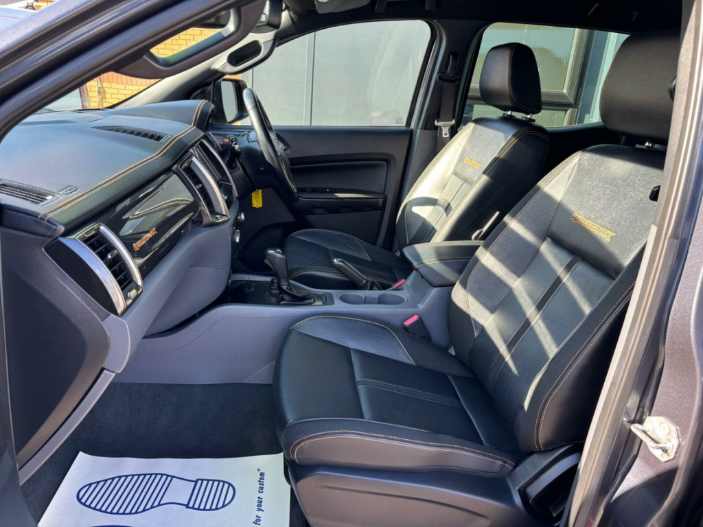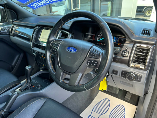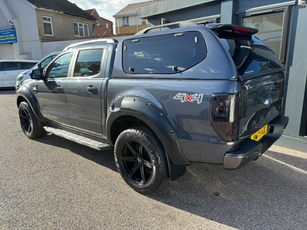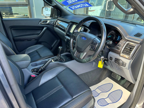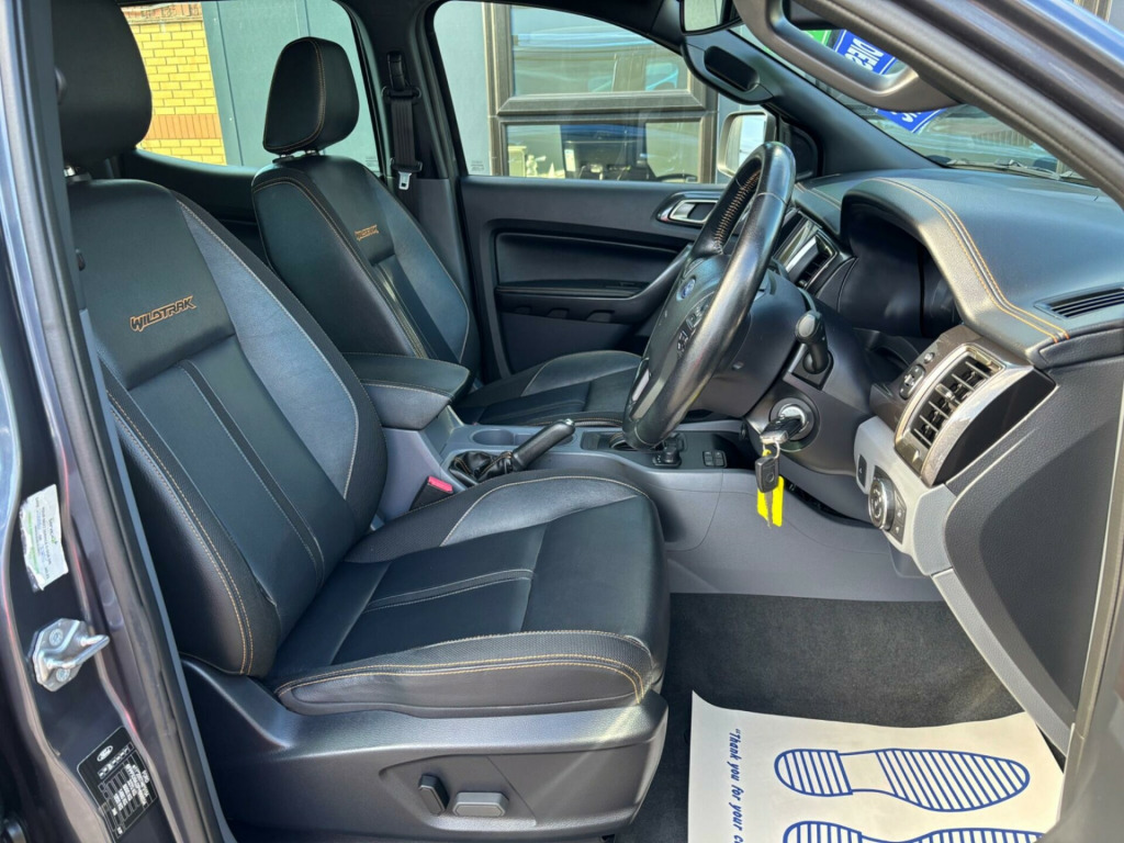 FULLY LOADED 'WILDTRAK' MODEL - THIS IS THE ULTIMATE RANGER 4X4! A REAL HEAD-TURNER!! 56,000 Miles with FULL SERVICE HISTORY. Presented in Metallic Grey. Body Styling Features Include - Wide Arches, 20in Alloy Wheels (with Wheel Spacers), Front Spoiler Bar, Headlight Surrounds, Bonnet Guard and Tinted Rear Lights. Other Features Include 3 Way Opening Truckman Top, Touch Screen Satellite Navigation, Rear Camera, Air Conditioning, Full Leather Upholstery, Airbags, Child Isofix, Multifunction Leather Steering Wheel, Cruise Control, Heated Seats, Front and Rear Parking Sensors, USB and 12v Points, Electric Windows and Mirrors, ABS, Roof Bars, Side Steps, Metallic Paint, Rear Bodyliner ETC. Year's MOT Upon Purchase. MUST BE SEEN TO BE APPRECIATED!! ANY INSPECTION INVITED! Thanks for Looking. NO VAT, in alloy wheels, 8in touchscreen colour display, abs - anti-lock braking system, aux audio input 3.5 mm jack, air conditioning - dual zone electronic automatic temperature control, airbags - curtain, airbags - drivers knee, airbags - front passenger, airbags - passenger deactivation, airbags - side thorax, automatic dimming rear view mirror, automatic rain sensing wipers, bedliner with protective side walls, bluetooth - audio streaming, bluetooth handsfree phone system, bumper - front body colour with sports highlighting, bumper - rear stepped steel - titanium, cbc - cornering brake control, coolbox in centre console, courtesy light - ice blue ambient interior light with dimming control, courtesy light - overhead with theatre-style dimming, courtesy lights with map reading lights, cruise control with adjustable speed limiter, dab digital radio, digital tachograph sensor port, door handles - black, door mirrors - puddle lights, door mirrors - titanium, door mirrors with integrated indicators, drivers airbag, drivers seat lumbar support, eba - emergency brake assist, epas - electric power assisted steering, esp - electronic stability programme, electric windows - front and rear with one touch drivers, electronic high and low range selection, emergency brake lights, engine drag control, engine immobiliser - passive anti-theft system, floor covering - carpeted, floor mats - premium carpet with wildtrak logo, ford easy-fuel capless refuelling system, ford sync2, front fog lights, front grille - titanium effect, hla - hill launch assist, headlights - automatic, heated windscreen, hill descent control, isofix - child seat attachments, lac - load adaptive control, load box light, locking wheel nuts, mid-light tint on rear windows, mobile wifi hotspot capable, mudflaps - front, mudflaps - rear, overhead storage shelf, parking sensor - rear, pick up box - c channel cargo area management tie down system, pollen filter, power fold door mirrors, rom - roll over mitigation, radio cd player mp3 compatible, rear view camera, remote central locking, roof rails - aluminium finish, sd card reader and mini efp, satellite navigation - navigation center, seat belt reminder system - drivers and front passengers, seats - front 8-way power adjustment, seats - front heated, side steps - stainless steel, silver steel side bars, spare wheel lock, spare wheel with cover - alloy, speakers - x6, sports bar - aerodynamic, steering wheel - leather, steering wheel - multifunction, steering wheel - wildtrak stitching, sunglasses holder, sunvisors - illumination of driver and passenger, tmc - traffic message channel, thatcham category 1 alarm, traction control - tc, trailer sway control, trip computer, two 12v power socket, tyre pressure monitoring system, usb connection x2, voice control - audio, voice control - phone