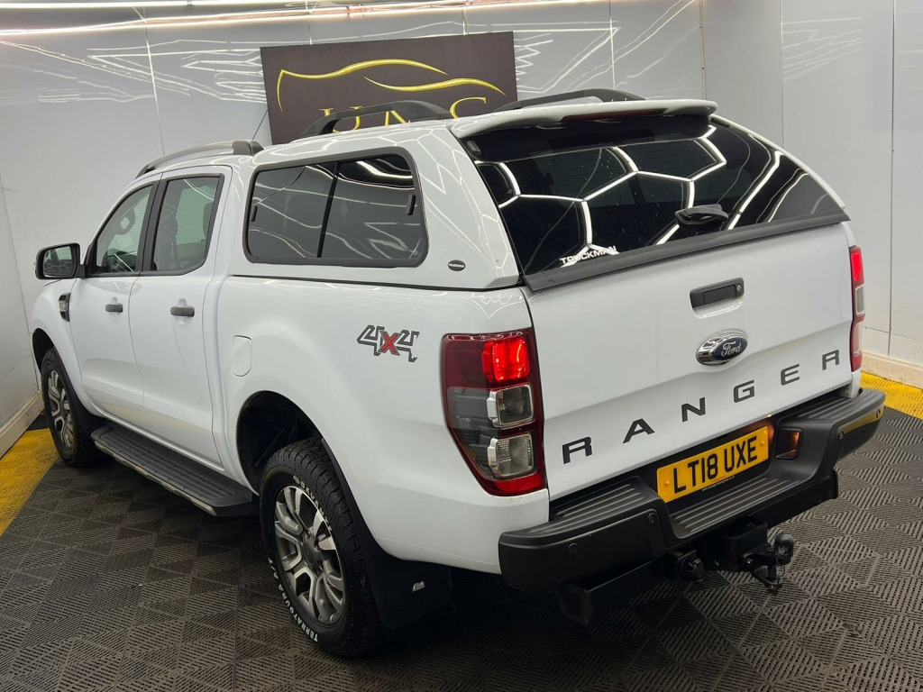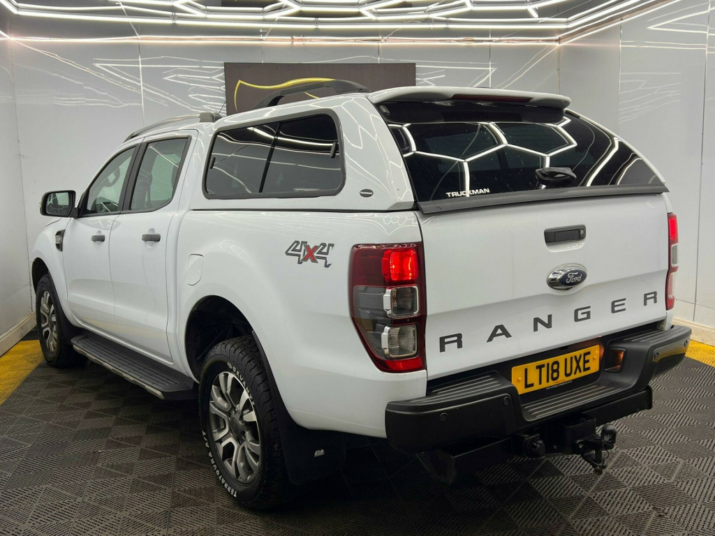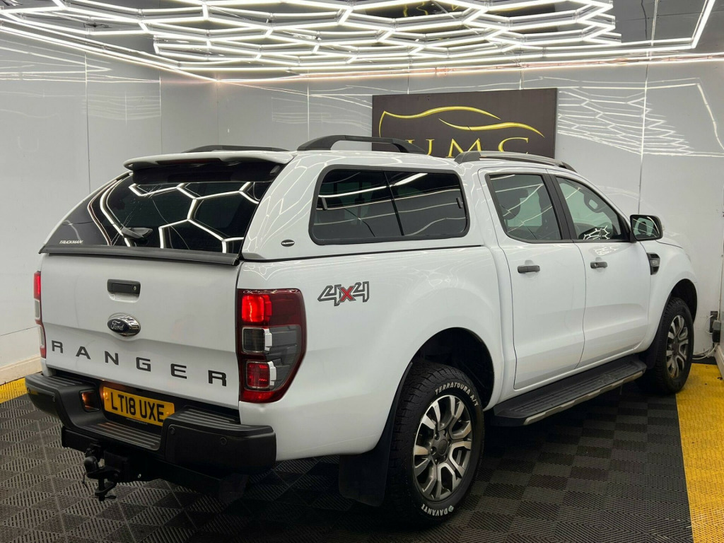 This 2018 Ford Ranger 3.2 TDCi Wildtrak Auto 4WD Euro 5 4dr offers robust capability with its powerful 3.2 litre diesel engine and four wheel drive system, making it ready for any challenge. As a Wildtrak variant, it comes equipped with desirable features such as heated front seats for comfort in colder weather, and a rear parking sensor to assist with manoeuvring. The inclusion of Bluetooth handsfree and audio streaming allows for seamless connectivity on the go, while automatic headlights ensure optimal visibility without manual adjustment. With a substantial towing weight of 3500 kg, this Ranger is exceptionally well suited for towing heavy loads.The Wildtrak trim level signifies a higher specification, indicating that this Ford Ranger offers a superior experience compared to other similar vehicles. The combination of its powerful engine, four wheel drive, and generous towing capacity makes it a highly capable and versatile pickup truck. The thoughtful inclusion of features like heated seats and advanced Bluetooth connectivity further enhances its appeal, providing both practicality and comfort for drivers and passengers alike.To add to your peace of mind, we offer a 3-month warranty, 12 months of AA Breakdown Cover, and a minimum 6 months of both MOT and service. Your satisfaction and the longevity of your investment are our top priorities.Explore financing options by contacting us at 07405357469. The financing package includes a 12-month AA Breakdown Cover, and while a minimum 6 months MOT is provided (though not applicable to all vehicles), please be aware that an admin charge may apply.Our commitment to customer satisfaction extends to flexible viewing hours until late, allowing you ample time to inspect and appreciate this vehicle. Additionally, we provide warranty and delivery options to cater to your preferences. If you have a vehicle for exchange, we are open to considering it. in alloy wheels, 8in touchscreen colour display, abs - anti-lock braking system, aux audio input 3.5 mm jack, air conditioning - dual zone electronic automatic temperature control, airbags - curtain, airbags - drivers knee, airbags - front passenger, airbags - passenger deactivation, airbags - side thorax, automatic dimming rear view mirror, automatic rain sensing wipers, bedliner with protective side walls, bluetooth - audio streaming, bluetooth handsfree phone system, bumper - front body colour with sports highlighting, bumper - rear stepped steel - titanium, cbc - cornering brake control, coolbox in centre console, courtesy light - ice blue ambient interior light with dimming control, courtesy light - overhead with theatre-style dimming, courtesy lights with map reading lights, cruise control with adjustable speed limiter, dab digital radio, digital tachograph sensor port, door handles - black, door mirrors - puddle lights, door mirrors - titanium, door mirrors with integrated indicators, drivers airbag, drivers seat lumbar support, eba - emergency brake assist, epas - electric power assisted steering, esp - electronic stability programme, electric windows - front and rear with one touch drivers, electronic high and low range selection, emergency brake lights, engine drag control, engine immobiliser - passive anti-theft system, floor covering - carpeted, floor mats - premium carpet with wildtrak logo, ford easy-fuel capless refuelling system, ford sync2, front fog lights, front grille - titanium effect, hla - hill launch assist, headlights - automatic, heated windscreen, hill descent control, isofix - child seat attachments, lac - load adaptive control, load box light, locking wheel nuts, mid-light tint on rear windows, mobile wifi hotspot capable, mudflaps - front, mudflaps - rear, overhead storage shelf, parking sensor - rear, pick up box - c channel cargo area management tie down system, pollen filter, power fold door mirrors, rom - roll over mitigation, radio cd player mp3 compatible, rear view camera, remote central locking, roof rails - aluminium finish, sd card reader and mini efp, satellite navigation - navigation center, seat belt reminder system - drivers and front passengers, seats - front 8-way power adjustment, seats - front heated, side steps - stainless steel, silver steel side bars, spare wheel lock, spare wheel with cover - alloy, speakers - x6, sports bar - aerodynamic, steering wheel - leather, steering wheel - multifunction, steering wheel - wildtrak stitching, sunglasses holder, sunvisors - illumination of driver and passenger, tmc - traffic message channel, thatcham category 1 alarm, traction control - tc, trailer sway control, trip computer, two 12v power socket, tyre pressure monitoring system, usb connection x2, voice control - audio, voice control - phone