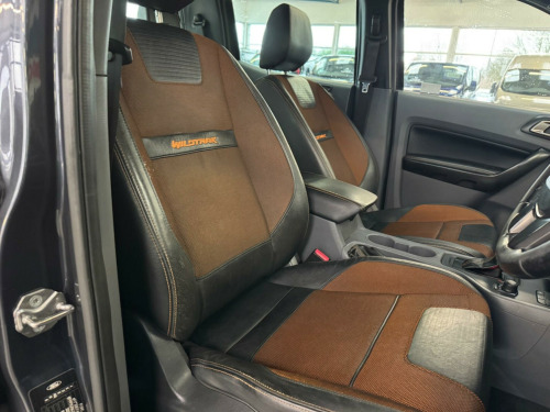 This 2017 Ford Ranger Wildtrak boasts a clear vehicle history, offering peace of mind for its next owner. This robust 4x4 pickup is equipped with a powerful 3.2 litre TDCi diesel engine and an automatic transmission, making it a capable choice for a variety of tasks. The Wildtrak trim level ensures a well appointed interior, featuring heated front seats for added comfort during colder journeys. For convenience, this Ranger includes rear parking sensors to assist with manoeuvring, and automatic headlights that adjust to changing light conditions.Further enhancing its appeal, this Ford Ranger offers seamless connectivity with Bluetooth for both handsfree phone calls and audio streaming. Its impressive towing capacity of 3500 kg means it's ready for demanding jobs. The Wildtrak derivative is also noted for its low insurance group, suggesting it could be a more economical option to own compared to similar vehicles. This combination of practical features, strong performance, and favourable running costs makes this Ranger a compelling proposition. in alloy wheels, 8in touchscreen colour display, abs - anti-lock braking system, aux audio input 3.5 mm jack, air conditioning - dual zone electronic automatic temperature control, airbags - curtain, airbags - drivers knee, airbags - front passenger, airbags - passenger deactivation, airbags - side thorax, automatic dimming rear view mirror, automatic rain sensing wipers, bedliner with protective side walls, bluetooth - audio streaming, bluetooth handsfree phone system, bumper - front body colour with sports highlighting, bumper - rear stepped steel - titanium, cbc - cornering brake control, coolbox in centre console, courtesy light - ice blue ambient interior light with dimming control, courtesy light - overhead with theatre-style dimming, courtesy lights with map reading lights, cruise control with adjustable speed limiter, dab digital radio, digital tachograph sensor port, door handles - black, door mirrors - puddle lights, door mirrors - titanium, door mirrors with integrated indicators, drivers airbag, drivers seat lumbar support, eba - emergency brake assist, epas - electric power assisted steering, esp - electronic stability programme, electric windows - front and rear with one touch drivers, electronic high and low range selection, emergency brake lights, engine drag control, engine immobiliser - passive anti-theft system, floor covering - carpeted, floor mats - premium carpet with wildtrak logo, ford easy-fuel capless refuelling system, ford sync2, front fog lights, front grille - titanium effect, hla - hill launch assist, headlights - automatic, heated windscreen, hill descent control, isofix - child seat attachments, lac - load adaptive control, load box light, locking wheel nuts, mid-light tint on rear windows, mobile wifi hotspot capable, mudflaps - front, mudflaps - rear, overhead storage shelf, parking sensor - rear, pick up box - c channel cargo area management tie down system, pollen filter, power fold door mirrors, rom - roll over mitigation, radio cd player mp3 compatible, rear view camera, remote central locking, roof rails - aluminium finish, sd card reader and mini efp, satellite navigation - navigation center, seat belt reminder system - drivers and front passengers, seats - front 8-way power adjustment, seats - front heated, side steps - stainless steel, silver steel side bars, spare wheel lock, spare wheel with cover - alloy, speakers - x6, sports bar - aerodynamic, steering wheel - leather, steering wheel - multifunction, steering wheel - wildtrak stitching, sunglasses holder, sunvisors - illumination of driver and passenger, tmc - traffic message channel, thatcham category 1 alarm, traction control - tc, trailer sway control, trip computer, two 12v power socket, tyre pressure monitoring system, usb connection x2, voice control - audio, voice control - phone