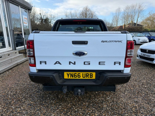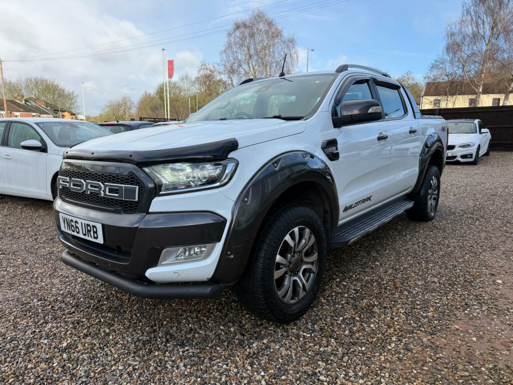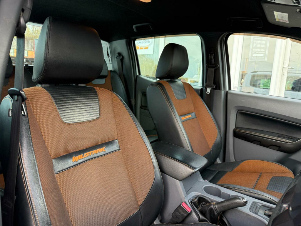 /// NO VAT ///, This 2016 Ford Ranger Wildtrak boasts a clear vehicle history and has had only two owners, offering peace of mind for its next custodian. Powered by a robust 3.2 litre TDCi diesel engine and featuring a capable four wheel drive system, this automatic Wildtrak derivative is ready for work or adventure. It comes equipped with desirable features such as Bluetooth for audio streaming, heated front seats for comfort, and a rear view camera to aid parking. Enjoy a pleasant cabin environment with dual zone electronic automatic air conditioning, and benefit from the convenience of automatic headlights. The Ford Ranger Wildtrak stands out with its impressive 3500 kg towing weight, making it a strong contender for those needing to haul significant loads. Its low insurance group rating further enhances its appeal, suggesting lower running costs compared to many similar vehicles. These aspects, combined with its well maintained provenance and useful features, indicate that this Ranger offers a compelling package for discerning buyers.