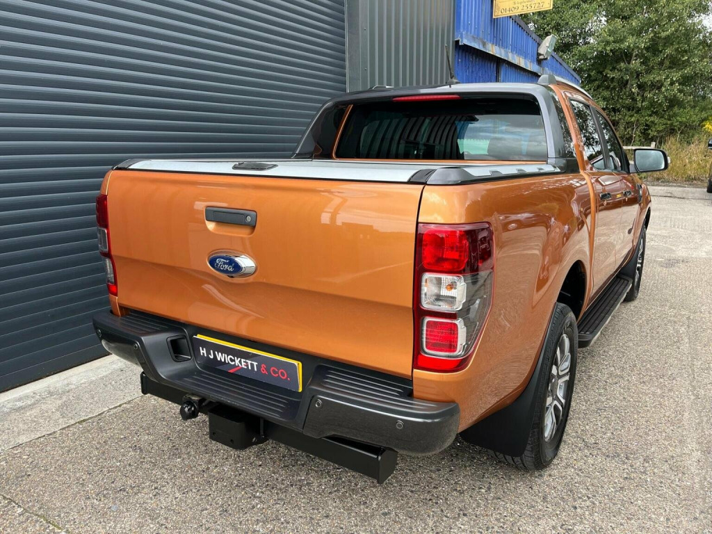 This 2019 Ford Ranger Wildtrak boasts exceptionally low mileage for its age, having covered just 44,000 miles, and comes with a full service history and a clear vehicle history check. As a 3.2 TDCi Wildtrak Auto 4WD model, it is equipped with a powerful 3.2 litre diesel engine and a four wheel drive drivetrain, meeting Euro 6 emission standards. This robust pickup is ready for work or adventure, capable of towing up to 3500 kg. For your peace of mind, it includes a 6 month warranty and a 12 month MOT provided on purchase. The Wildtrak derivative offers a host of desirable features that set it apart. Youll appreciate the convenience of Bi-Xenon headlights for superior visibility, along with heated front seats for comfort in all conditions. Parking is made easier with front and rear parking sensors, as well as a fixed rear view camera. These features demonstrate a higher level of specification and driver focused technology compared to many other vehicles in its class.