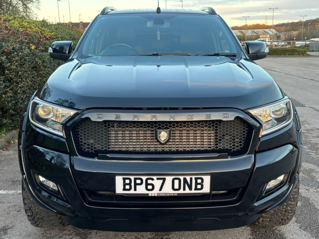 WE ARE PLEASED TO OFFER THIS HIGHLY DESIRABLE HIGH SPECIFICATION TRULY STUNNING NON VATABLE RARE AND UNIQUE LOW MILEAGE EURO SIX DERANGED FORD RANGER 3.2 TDCI WILDTRAK DOUBLE CAB PICK UP EURO SIX AUTOMATIC FOUR WHEEL DRIVE PICK UP + THIS EXCEPTIONAL EXAMPLE IS FINISHED IN THE BEST COLOUR OF PANTHER BLACK METALLIC WITH A FULL DERANGED BLACK OUT EDITION STYLING PACK WHICH CONSISTS OF MUSTANG STYLE HEADLIGHTS, BODY COLOUR WHEEL ARCH KIT, SATIN BLACK 18 DERANGED ALLOY WHEELS, GLOSS BLACK GRILL WITH METAL SHIELD, ROLL COVER WITH BLACK SPORTS BAR, SMOKED LED TAIL LIGHTS, GLOSS BLACK WING MIRROR COVERS, GLOSS BLACK FOG LAMP SURROUNDS, GLOSS BLACK REAR BUMPER END CAPS, GLOSS BLACK DOOR HANDLES PLUS MUCH MORE + ONLY A MERE 37,724 MILES HAS BEEN COVERED IN TOTAL + SAME OWNER SINCE FOUR MONTHS OLD AND IS BACKED WITH A SERVICE HISTORY + JUST BEEN SERVICED + THE MOT IS TILL THE SIXTH OF NOVEMBER 2026 + THE INTERIOR IS FINISHED WITH A BLACK HALF LEATHER AND ORANGE SUEDE UPHOLSTERY EMBOSSED WILDTRAK + EXCEPTIONAL CONDITION THROUGHOUT AND DRIVES SUPERB + 200 BHP MODEL + FULL SPECIFICATION WHICH INCLUDES SYNC 3 / SATELLITE NAVIGATION / DAB TUNER / FULL ELECTRIC PACK WITH POWER ADJUSTABLE DRIVERS SEAT / CLIMATE PACK WITH HEATED FRONT SEATS AND HEATED WINDSCREENS / CRUISE CONTROL / MULTI FUNCTION STEERING WHEEL / PRIVACY GLASS / BLUETOOTH HANDS FREE PHONE PACK / APPLE AND ANDROID CAR PLAY / AMBIENT INTERIOR LIGHTING / REAR PARKING DISTANCE WITH REVERSING CAMERA AND PARK PILOT / AUTO DIMMING REAR VIEW MIRROR PLUS MUCH MORE + HANDBOOK PACK + 2 X KEYS + ANY TRIAL OR INSPECTION IS WELCOMED + HPI CLEAR WITH CERTIFICATE + SIX MONTHS NATIONWIDE WARRANTY IS INCLUDED + THIS TRULY CHERISHED MUST BE VIEWED TO BE APPRECIATED AND VIEWING IS HIGHLY RECOMMENDED. We have been established in Baildon for over 20 years. All our vehicles are fully inspected, prepared and valeted. We are finance specialists. Part exchange is welcome. All major credit and debits accepted. Open 7 days. Our postcode is BD177EX.