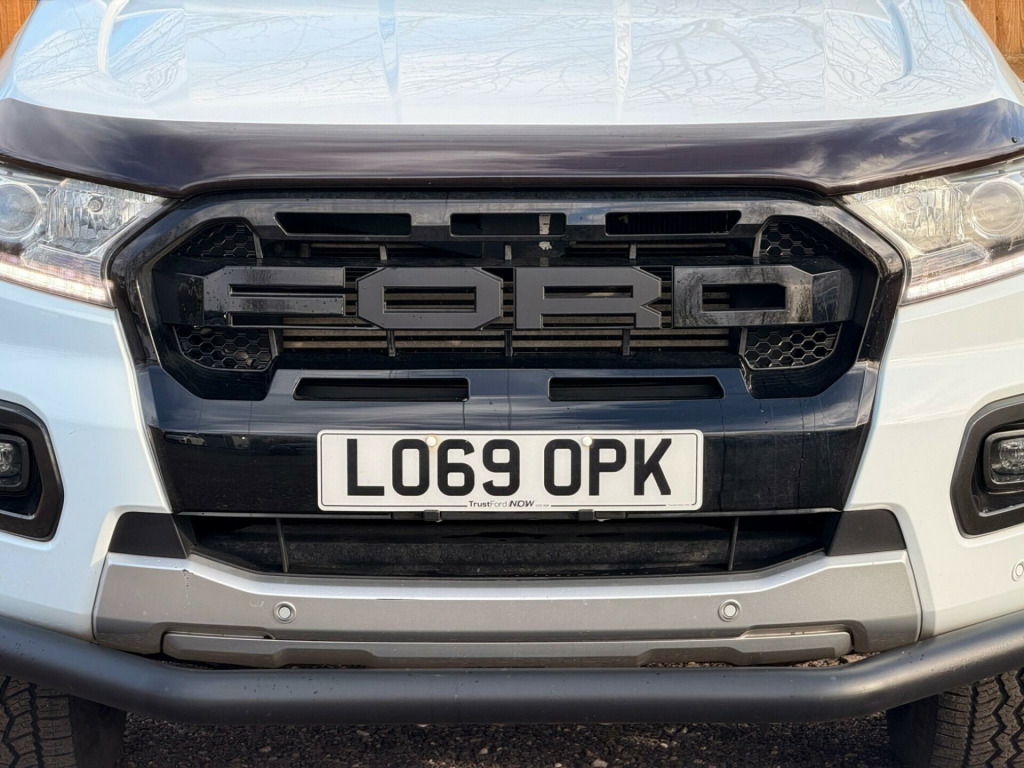 This 2019 Ford Ranger Wildtrak is a robust and capable vehicle, ready for any challenge. Powered by a strong 3.2 litre TDCi diesel engine and featuring a reliable four wheel drive system, this Euro 6 compliant model is built for performance and efficiency. The Wildtrak derivative offers a premium experience with features like Bi-Xenon headlights for excellent visibility, passive keyless entry and start for convenience, and manual air conditioning alongside a dual control EATC system to keep you comfortable.The Ranger Wildtrak stands out with its impressive 3500 kg towing weight, making it an ideal choice for those needing to haul significant loads. Rear parking sensors are included, assisting you with parking manoeuvres. These features collectively demonstrate the Ranger Wildtrak's superior capability and thoughtful design compared to other vehicles in its class, offering a blend of power, comfort, and practicality for both work and leisure. in alloy wheels - 8in boulder grey-machined, 2 key fobs, abs - esp and roll-over mitigation, air conditioning - manual, airbags - curtain, airbags - driver and front passenger, airbags - drivers knee bolster, airbags - front side, airbags - passenger deactivation, bi-xenon headlights, body coloured plastic front bumpers, boulder grey exterior door handle, boulder grey exterior mirror finish, boulder grey radiator grille, boulder grey step design rear bumper, cargo box power point plug, chrome lift -decklid handle, collision mitigation system, cool box in centre console, cruise control with asld -aeb and isa, day-night inside mirror, daytime running lamps, double locking power door lock with flip key, driver seat back mounted map pocket, dual control system - eatc, dual power heated fold back mirrors with puddle lamps and signal, dyno grey sports hoop with side rails, epas - electric power assisted steering, esc - electronic stability control, ebony headliner, electrically-operated windows with one-shot drivers window, electrochromic inside mirror, fixed rear view camera, ford sync 3 single cd-dab radio - tmc and active noise cancelling, fordpass connect, front parking aid, front seats - driver and passenger heated seats, front splash guard - mud flaps, gearshift knob - leather, heated windshield and rear window, high mounted stop lamp with cargo light, isofix child safety seat attachments, inside chrome door handles, intelligent speed assistance, interior ambient led lighting, led front fog lamps, lane keeping aid, leather seat trim, load box bedliner, load rest, loadbox inside tie down hooks, locking rear axle, locking wheel nuts, moulded in colour tailgate handle, mud flaps - rear, painted front fender grill, passive anti-theft system, passive keyless entry and start, power converter, power tailgate lock, premium front and rear floor mats, privacy glass, rain sensitive windshield wipers, rear bumper chromed steel step, rear parking sensors, rear power point plug, roof rails, roof storage for driver sunglasses, seats - drivers 8-way adjustment, side step with brushed inserts, spare wheel lock, sport leather stitched steering wheel, sports bar with high mounted brake light, sports hoop, steering wheel - leather wrapped, tsr - traffic sign recognition, tailgate with easy-lift - lower mechanism, thatcham category 1 security system, tie down rail with rope hooks, traction control - tc, tyre pressure sensors, under body protection, under hood engine cover, wildtrak door trim panel insert