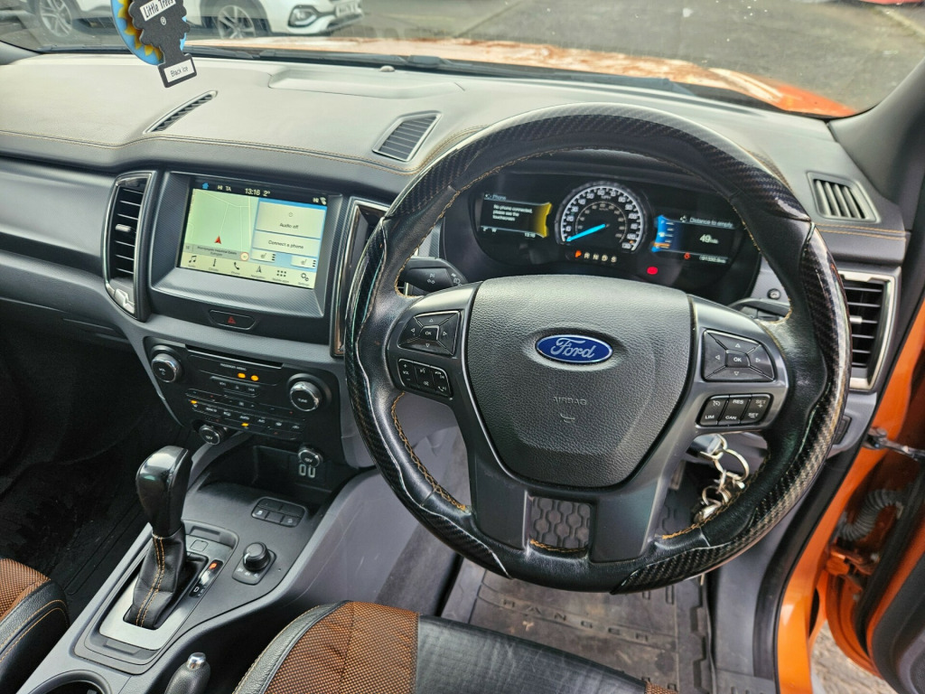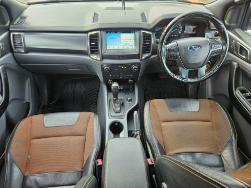 This 2018 Ford Ranger is a powerful pickup with a 3.2 TDCi Wildtrak Diesel engine and automatic 4WD, perfect for all-terrain driving. With only 92000 miles and an MOT that expires on 27/11/2026, this reliable vehicle offers plenty of life left. The 4-door, 5-seater double cab provides ample space for passengers and cargo, while the 18in Alloy Wheels and Front Body Colour with Sports Highlighting give it a sporty, rugged look. The titanium rear stepped steel bumper adds to its tough appearance. With features like Black Door Handles and Puddle Lights on the door mirrors, this Ford Ranger exudes functionality and style. With its efficient Diesel engine and robust design, this pickup is ready for any adventure on or off the road.NO VAT!! FINANCE AVAILABLE in alloy wheels, bumper - front body colour with sports highlighting, bumper - rear stepped steel - titanium, door handles - black, door mirrors - puddle lights, door mirrors - titanium, door mirrors with integrated indicators, electric windows - front and rear with one touch drivers, front grille - titanium effect, heated windscreen, locking wheel nuts, mid-light tint on rear windows, mudflaps - front, mudflaps - rear, power fold door mirrors, roof rails - aluminium finish, side steps - stainless steel, silver steel side bars, spare wheel with cover - alloy, sports bar - aerodynamic, 8in touchscreen colour display, aux audio input 3.5 mm jack, bluetooth - audio streaming, bluetooth handsfree phone system, dab digital radio, ford sync2, mobile wifi hotspot capable, radio cd player mp3 compatible, sd card reader and mini efp, satellite navigation - navigation center, speakers - x6, tmc - traffic message channel, two 12v power socket, usb connection x2, abs - anti-lock braking system, airbags - curtain, airbags - drivers knee, airbags - front passenger, airbags - passenger deactivation, airbags - side thorax, cbc - cornering brake control, drivers airbag, eba - emergency brake assist, esp - electronic stability programme, emergency brake lights, engine immobiliser - passive anti-theft system, ford easy-fuel capless refuelling system, hla - hill launch assist, hill descent control, isofix - child seat attachments, rom - roll over mitigation, remote central locking, seat belt reminder system - drivers and front passengers, spare wheel lock, thatcham category 1 alarm, traction control - tc, trailer sway control, air conditioning - dual zone electronic automatic temperature control, automatic dimming rear view mirror, automatic rain sensing wipers, bedliner with protective side walls, coolbox in centre console, courtesy light - ice blue ambient interior light with dimming control, courtesy light - overhead with theatre-style dimming, courtesy lights with map reading lights, digital tachograph sensor port, drivers seat lumbar support, electronic high and low range selection, floor covering - carpeted, floor mats - premium carpet with wildtrak logo, lac - load adaptive control, load box light, overhead storage shelf, pick up box - c channel cargo area management tie down system, pollen filter, seats - front 8-way power adjustment, seats - front heated, steering wheel - leather, steering wheel - multifunction, steering wheel - wildtrak stitching, sunglasses holder, sunvisors - illumination of driver and passenger, cruise control with adjustable speed limiter, epas - electric power assisted steering, engine drag control, parking sensor - rear, rear view camera, trip computer, tyre pressure monitoring system, voice control - audio, voice control - phone, front fog lights, headlights - automatic, tow bar