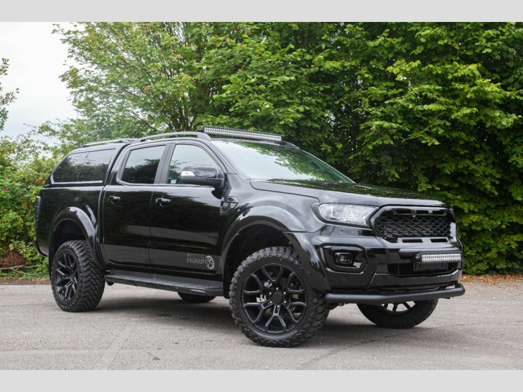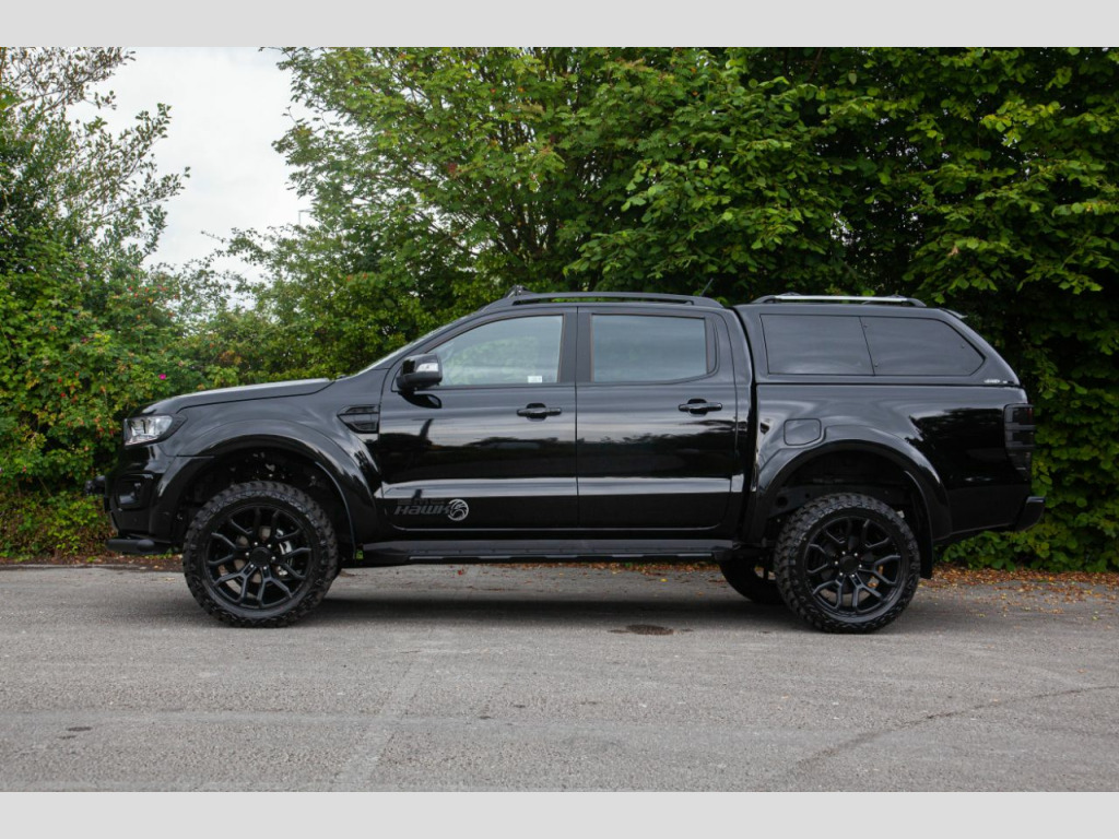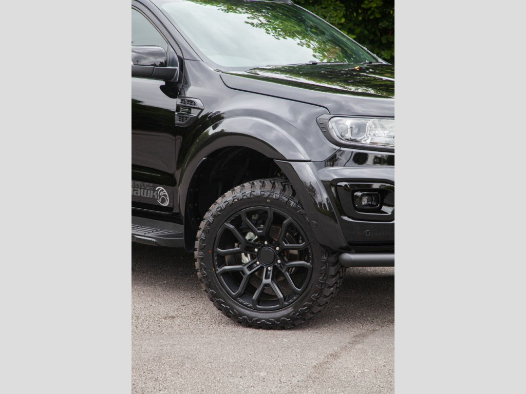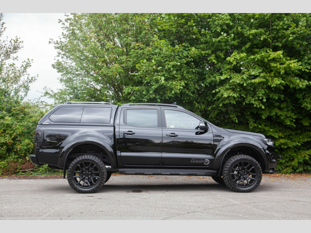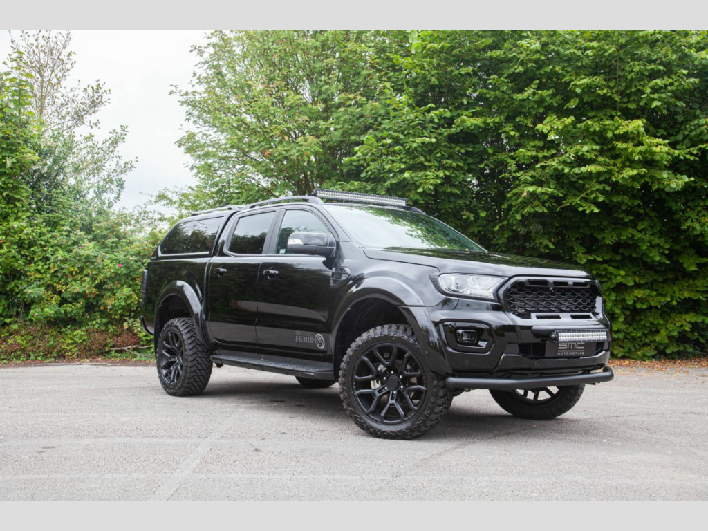 Ref:HK21GYH Brand new 2021 Ford Ranger 2.0 TDCI Wildtrack SMC Black Hawk Edition.Physical car ready for immediate delivery – beat the 16 month wait Finished in Black Metallic paint this stunning Ranger has been converted to SMC Black Hawk specification with following additions:Exclusive 20” black alloy wheels and mud terrain tyres, SMC lifted suspension upgrade, Full exterior black pack consisting of black door handles, black roof bars, black side vents, black front bumper highlights, Colour coding to running boards and rear trim highlights, Facelift Raptor Grill, 40 inch curved LED lightbar with custom mounts, Front nudge bar with LED Lightbar , Underslung protection bar, Wide arch kit, Tailgate damper, Privacy Glass, SMC Hawk graphics pack, Front light guards, Smoked rear light clusters with guards, Colour coded Alpha Canopy with central locking. Gearmate bespoke locking drawer system This is one very special pick up, huge specification, not to be confused with others. Supplied with the balance of manufacturers warranty, both keys and full book pack.£48994+vatOpen by appointment only. 01244 539760 or 07710 096345 or 07890 000145Further upgrades available please call to discuss