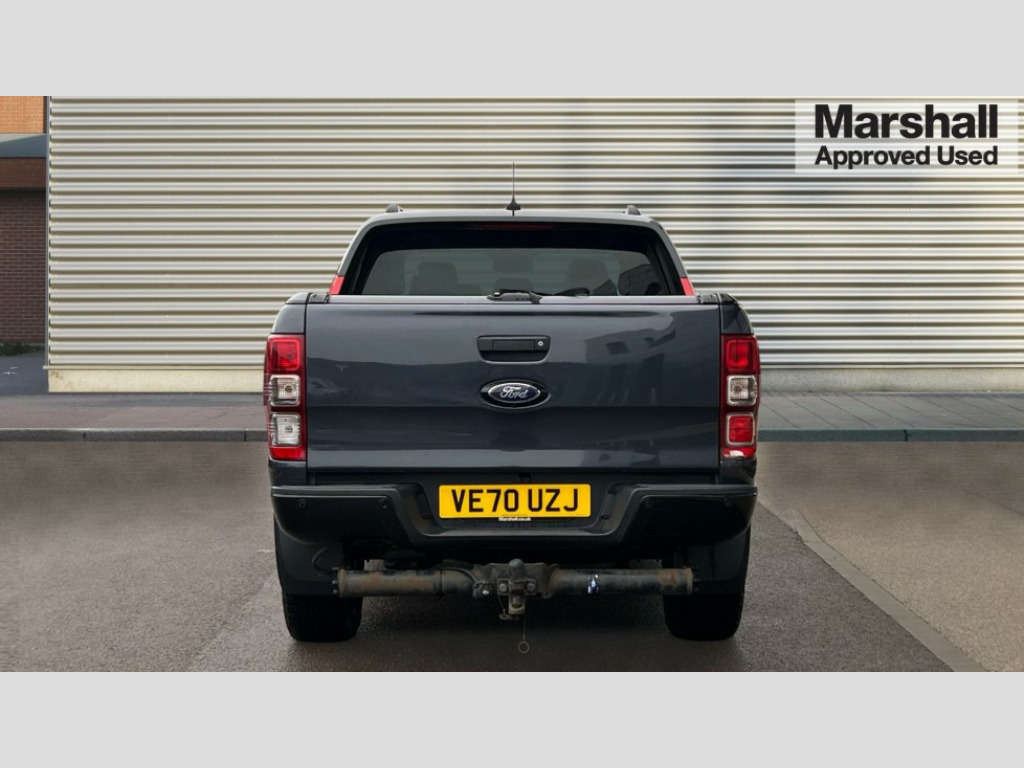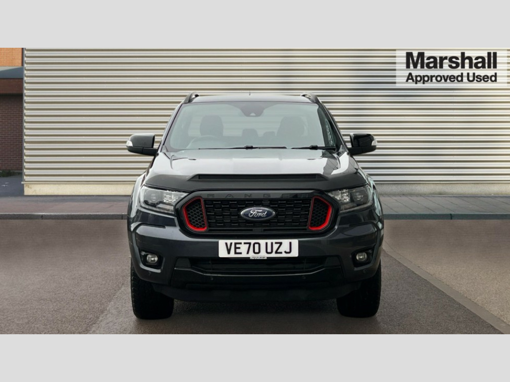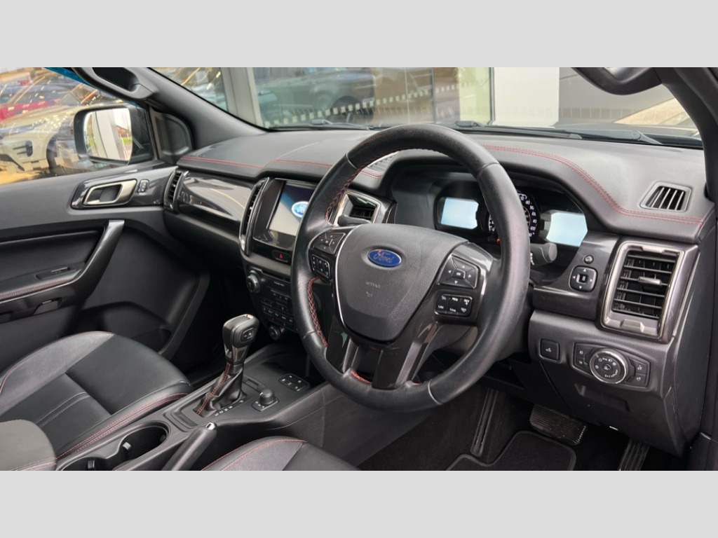 Ford Ranger Pick Up Double Cab Wildtrak 2.0 EcoBlue 213 Auto 2 key fob, Collision mitigation braking system, Electric power assisted steering, Fixed rear view camera, Intelligent speed assistant, Lane keeping aid, Traffic sign recognition, Trip computer, Body coloured plastic front bumper, Boulder grey exterior door handle, Boulder grey exterior door mirror, Boulder grey radiator grille, Daytime running lights, Dual power heated fold back door mirror with puddle lamp and signal, Dyno grey sports hoop with side rails, Electrically operated windows with one shot driver's window, Electrochromic interior mirror, Front splash guard and mud flaps, Heated windshield and rear window, High mounted stop lamp with cargo area light, LED Front fog lamp, LED headlamps, Moulded in colour tailgate handle, Painted front fender grille, Privacy glass, Rain sensitive windshield wipers, Rear bumper chrome under-bar, Rear bumper step in boulder grey, Rear mudflaps, Roof rails, Side step with brushed inserts, Tailgate - Easy-lift/lower mechanism, Under hood engine cover, Underbody protection, Centre console coolbox, Chrome interior door handle, Driver seat back mounted map pocket, Dual control system - Electronic air temperature control (EATC), Ebony headliner, Heated front seat, Journey grain partial leather upholstery with Wildtrak logo, Leather gearknob, LED ambient interior lighting, Power adjustable 8 way driver seat, Premium front and rear floor mats with Wildtrak logo, Reach and rake adjustable steering column, Roof storage for driver sunglasses, Sport leather stitched steering wheel, Tie down rails and rope hooks, Wildtrak door trim panel insert, ICE feature pack 129 - Ranger, Driver and front passenger airbag, side airbag, curtain airbag and driver knee airbag, ISOFIX child safety seat attachment, Tyre pressure sensors, Double locking power door lock with flip key, Immobiliser, Locking wheel nuts, Passive anti theft system, Passive keyless entry and start system, Power tailgate lock, Spare wheel lock, Thatcham category 1 alarm security system, ABS, ESP and roll over mitigation, Emergency brake assist, Engine start/stop system, Locking rear axle, Power converter